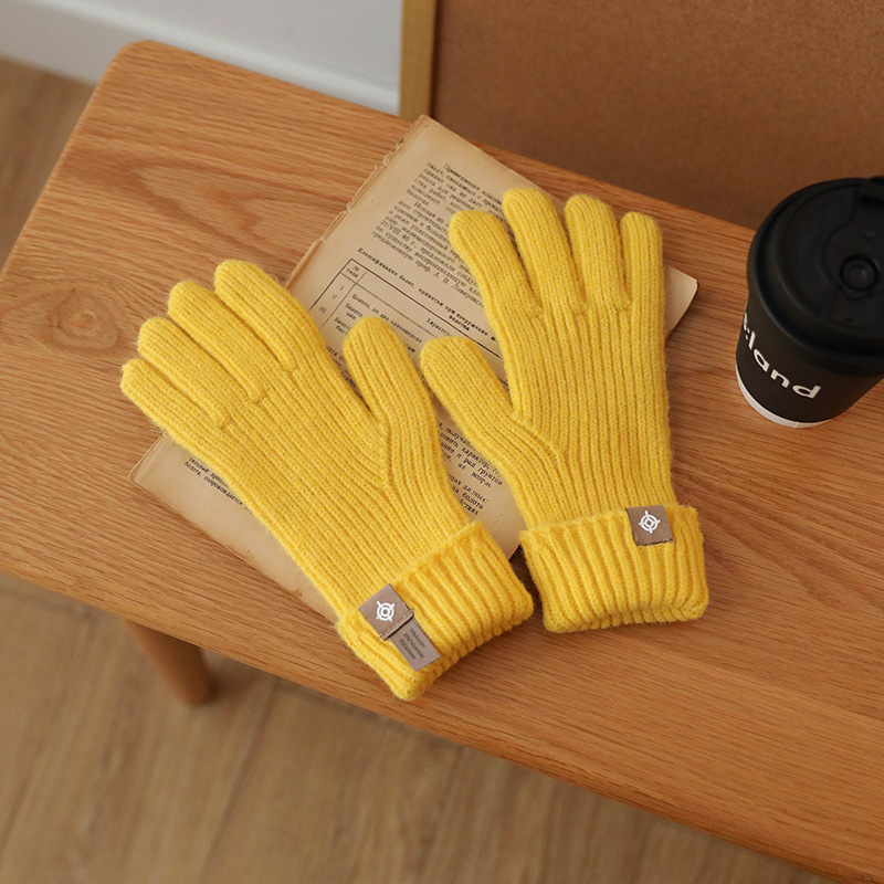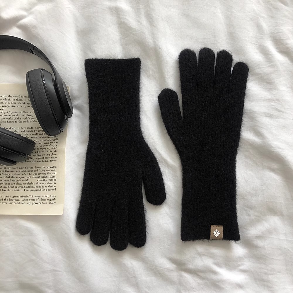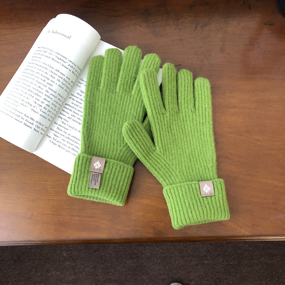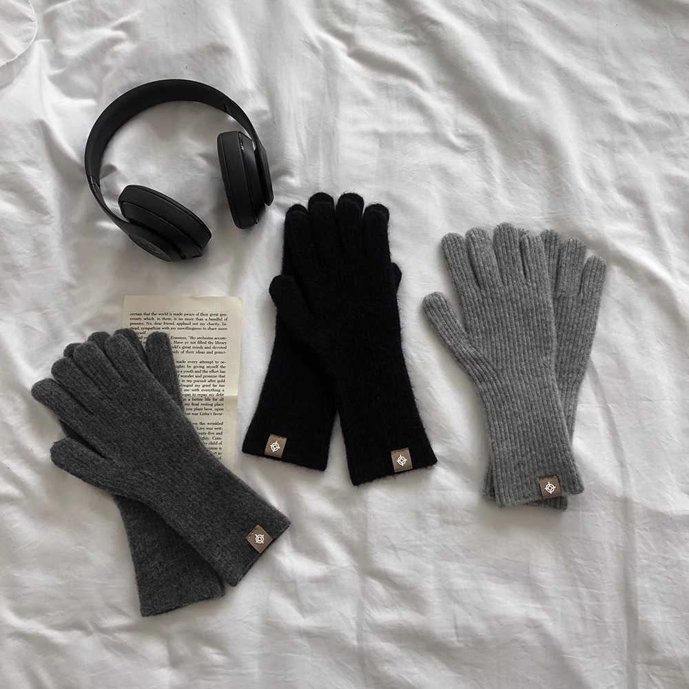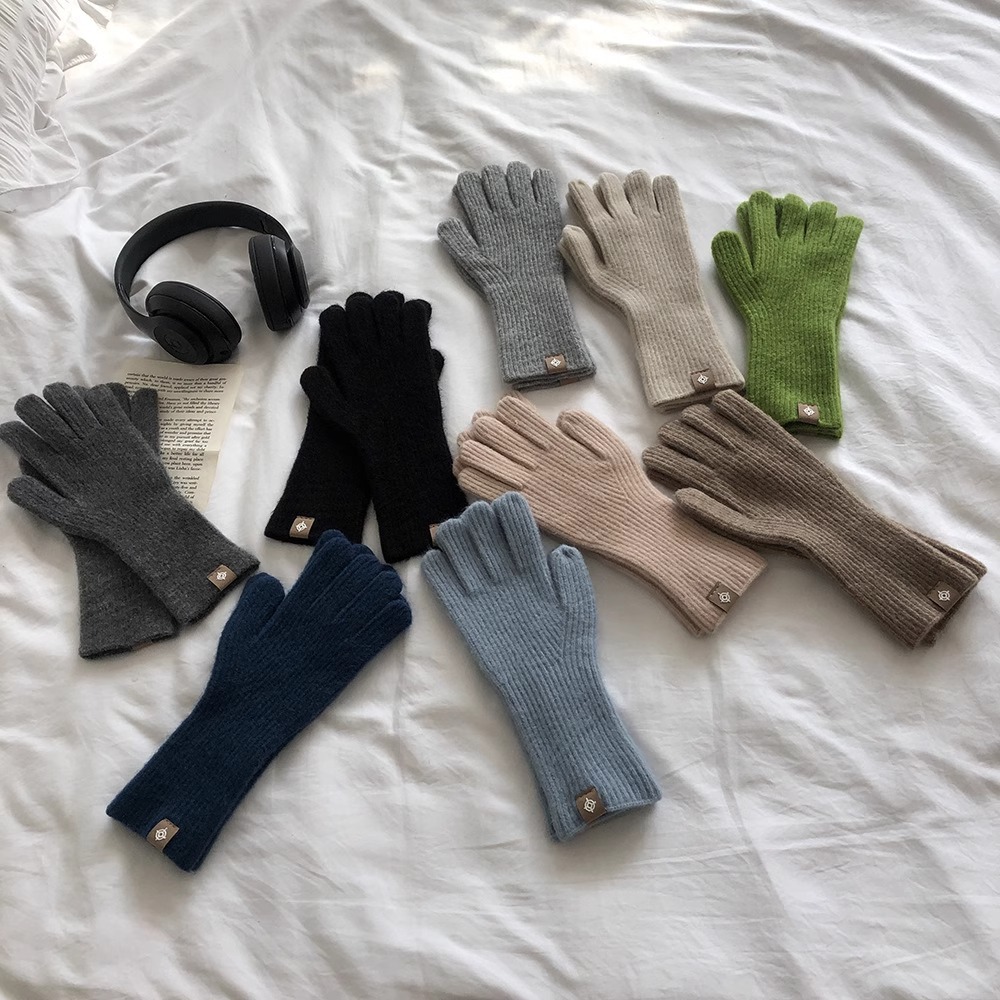 양모 5-손가락 장갑 단색 양모 니트 라벨 장갑 손가락 손가락 터치 스크린 냉간 하라주쿠 가을과 겨울스토어 가기