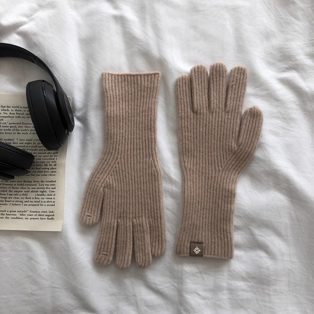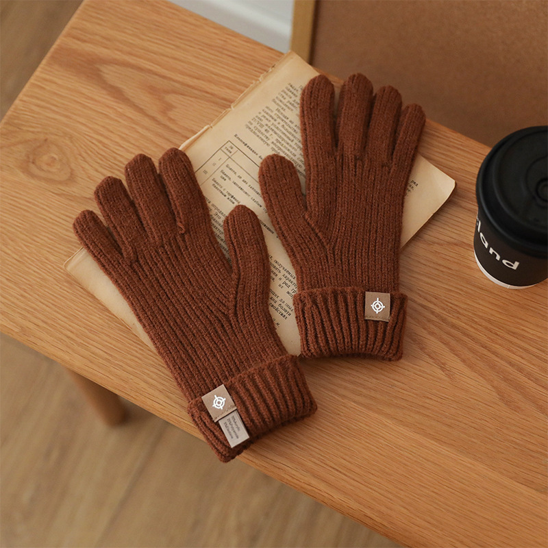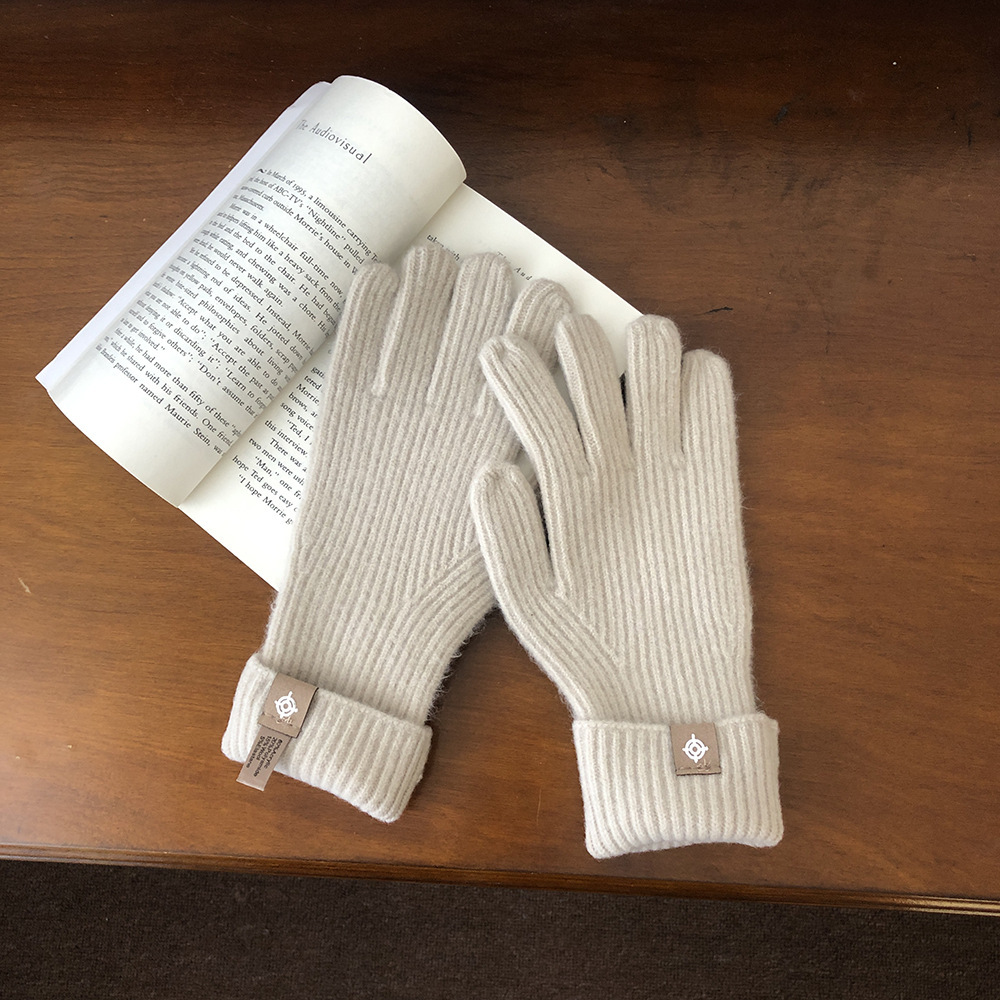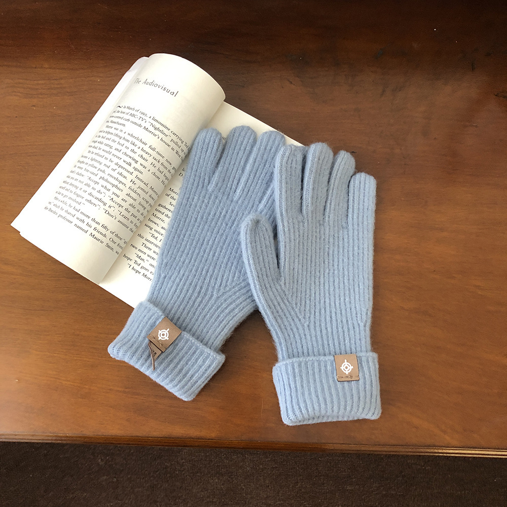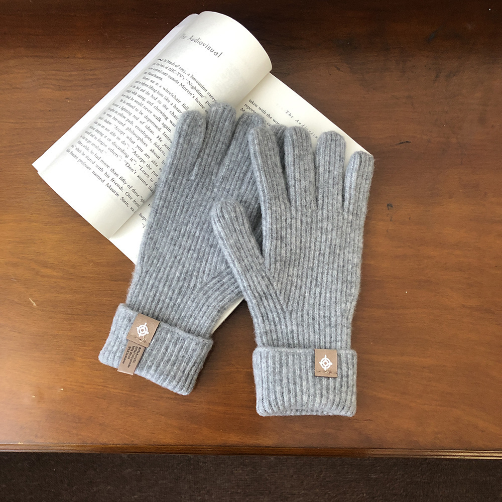 양모 5-손가락 장갑 단색 양모 니트 라벨 장갑 손가락 손가락 터치 스크린 냉간 하라주쿠 가을과 겨울스토어 가기