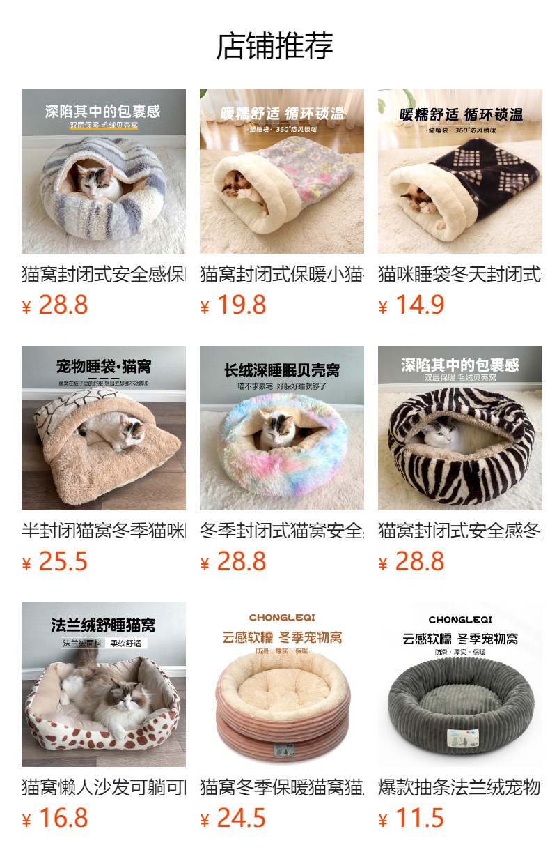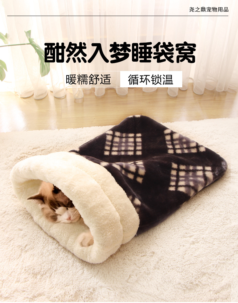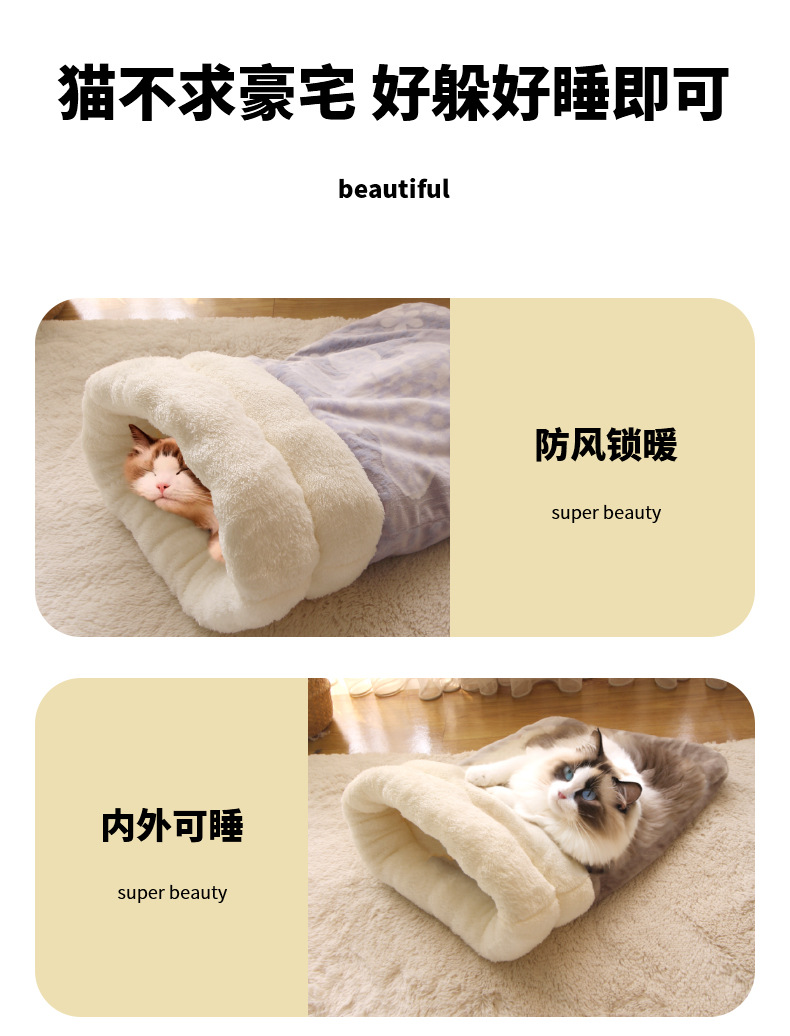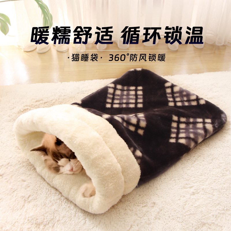 국경을 넘는 인기 상품, 두꺼운 플란넬 소재의 밀폐형 고양이 집, 안전한 고양이 은신처, 겨울철 따뜻한 고양이 침낭스토어 가기