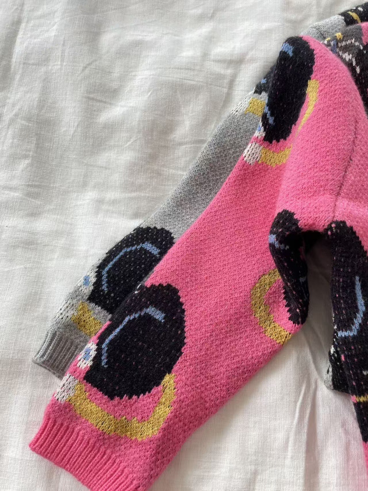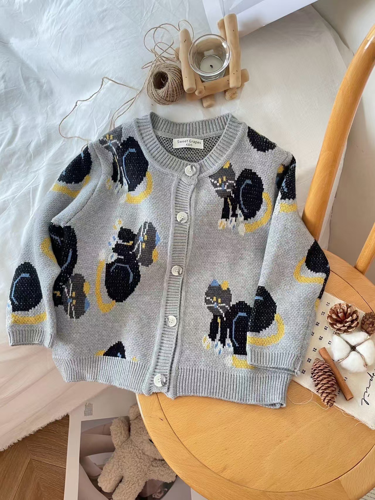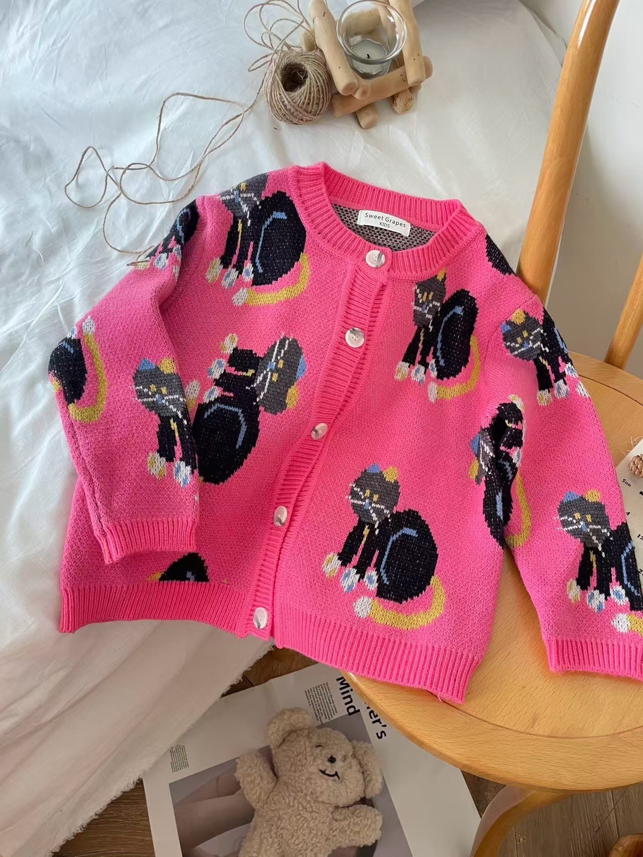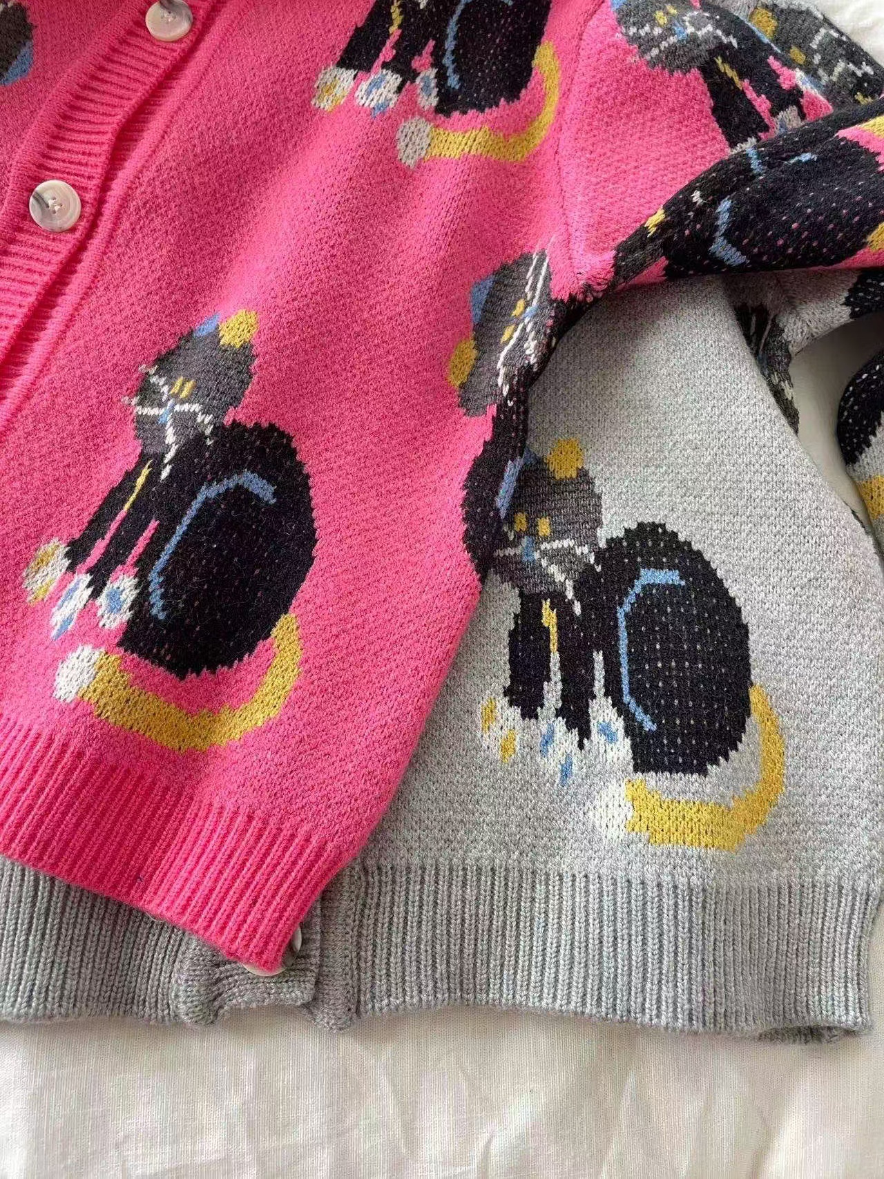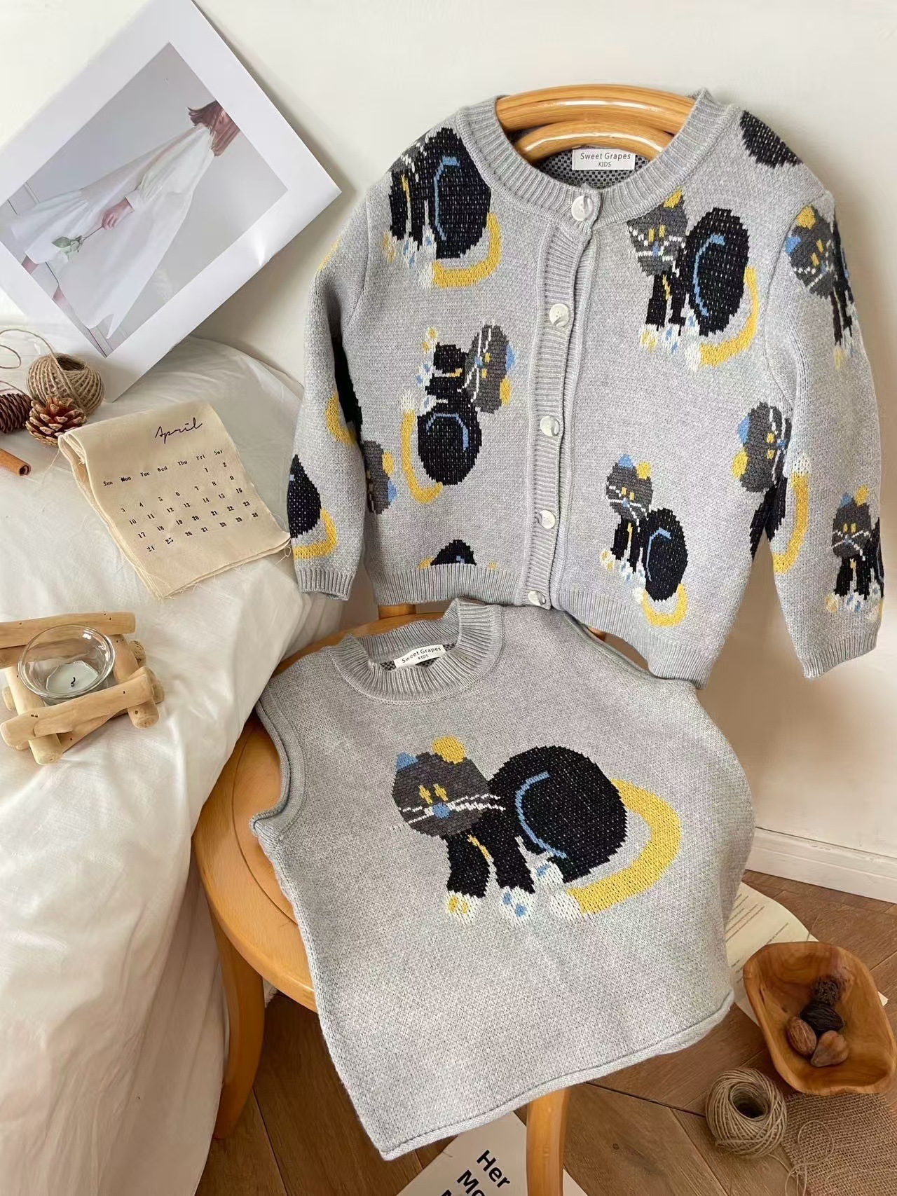 어린이 조끼 봄과 가을 2024 새로운 스타일 서양 스타일 유행 만화 자카드 허리 코트 남자와 여자를위한 니트 조끼 탑스토어 가기