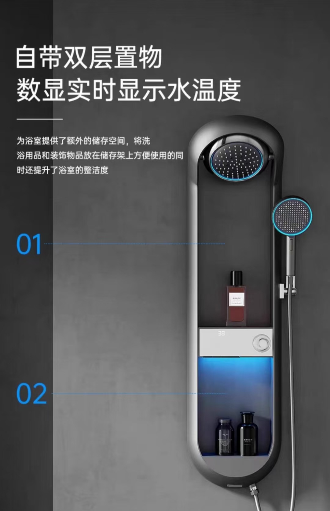 • 2세대 - 듀얼 모드 상단 스프레이 + 디지털 디스플레이 주변 조명 - 일정한 온도 우아한 흰색