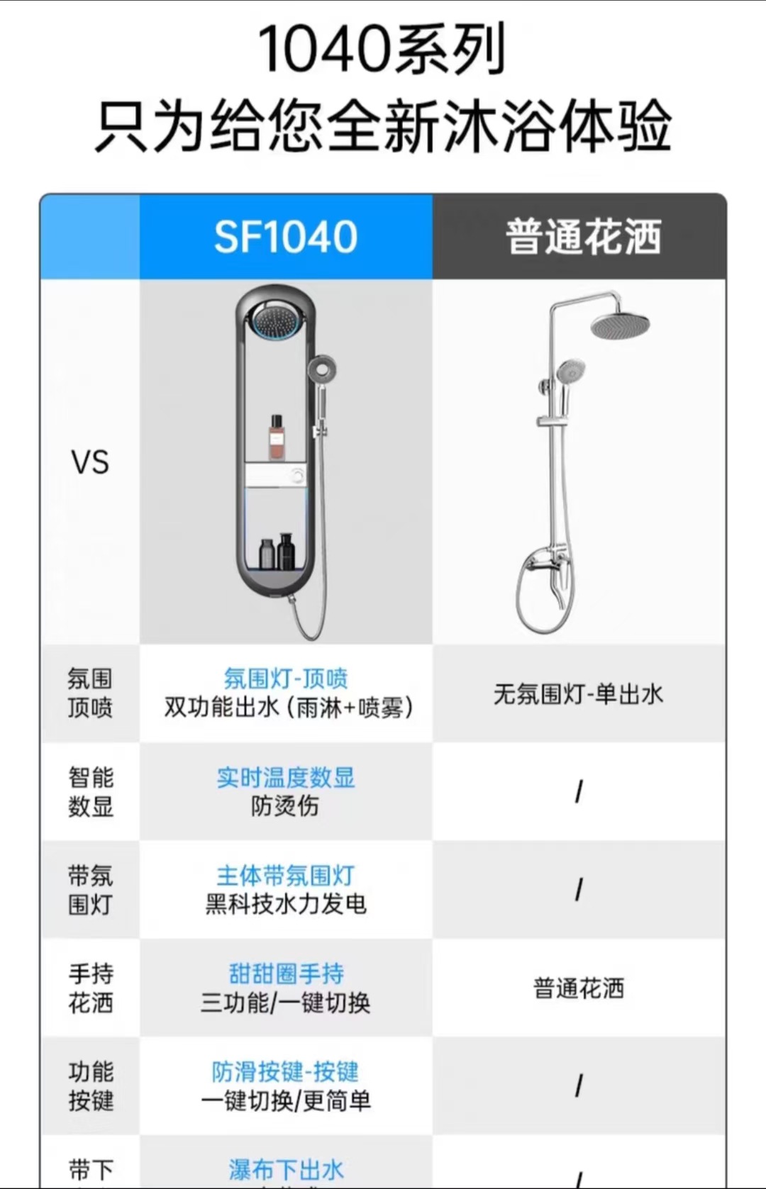 • 2세대 - 듀얼 모드 탑 스프레이 + 디지털 디스플레이 주변 조명 - 뜨겁고 차가운 우아한 흰색