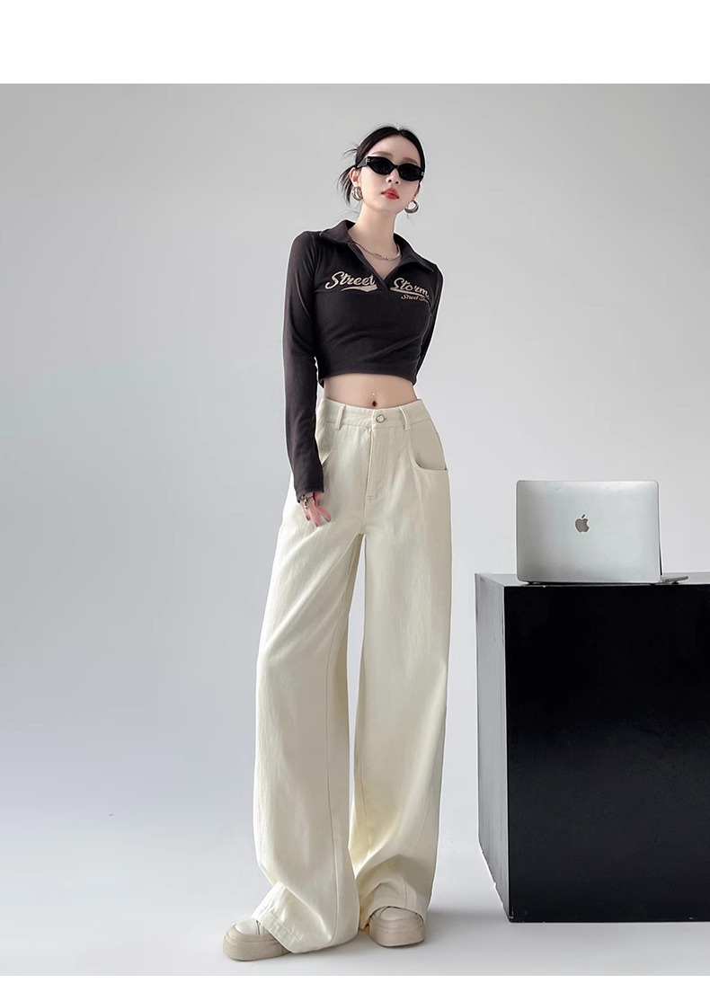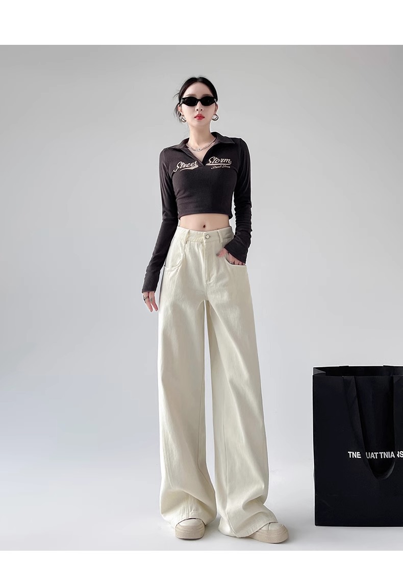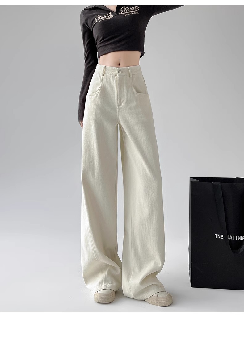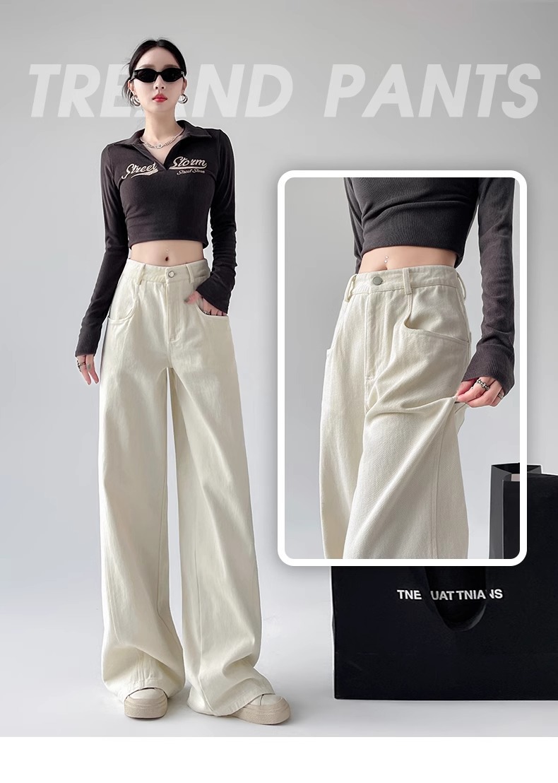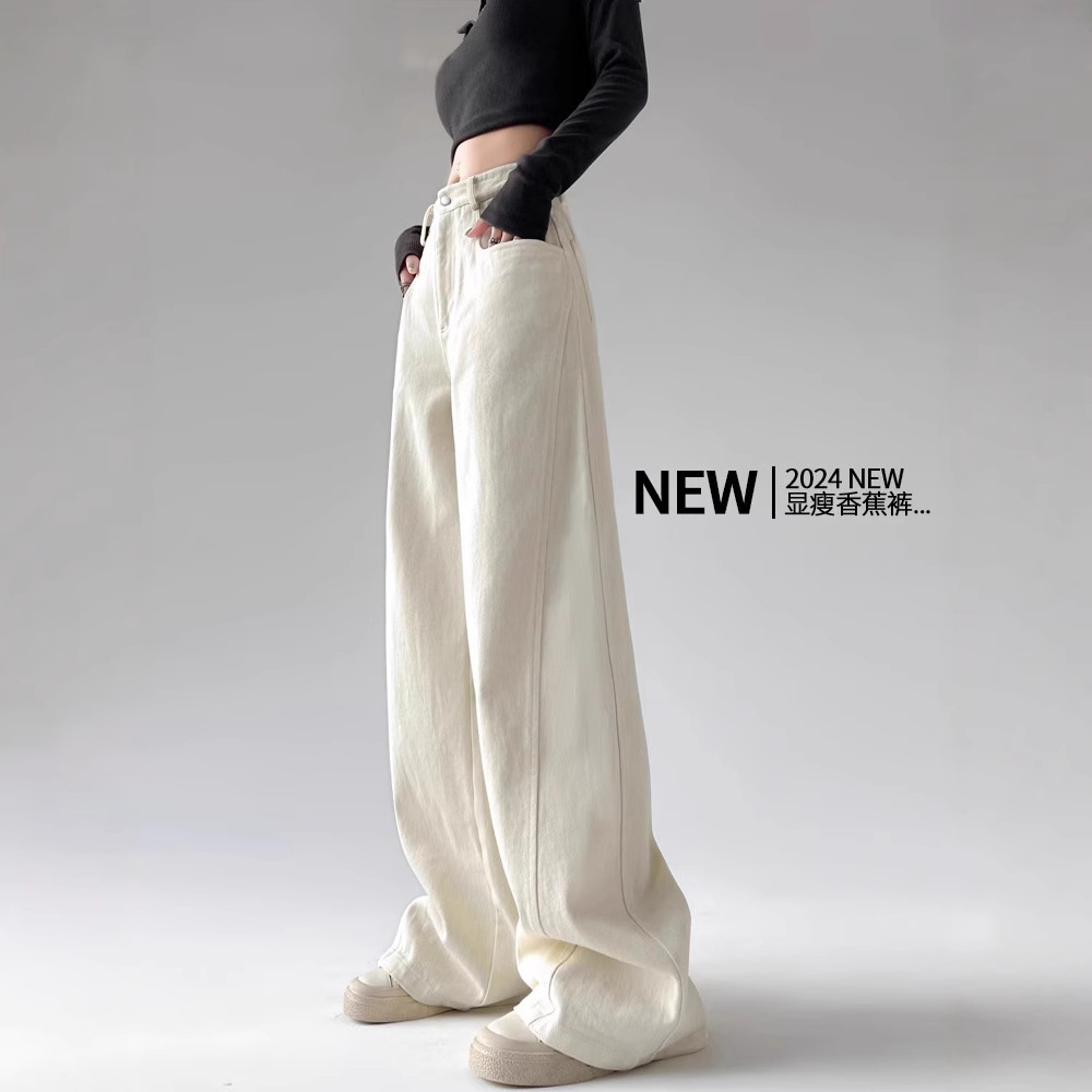 화이트 와이드 레그 청바지 여성의 가을과 겨울 하이 스트리트 바나나 바지 미국 스타일 레트로 하이 웨이스트 스트레이트 루즈 팬츠스토어 가기