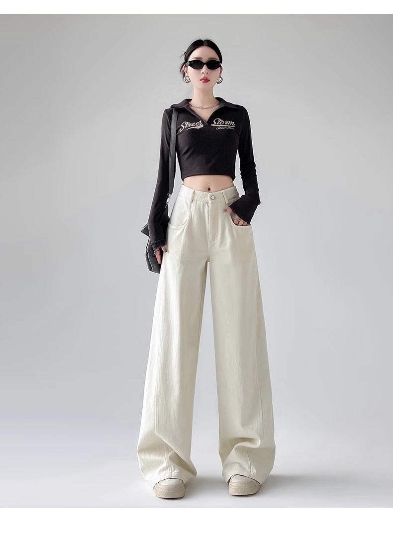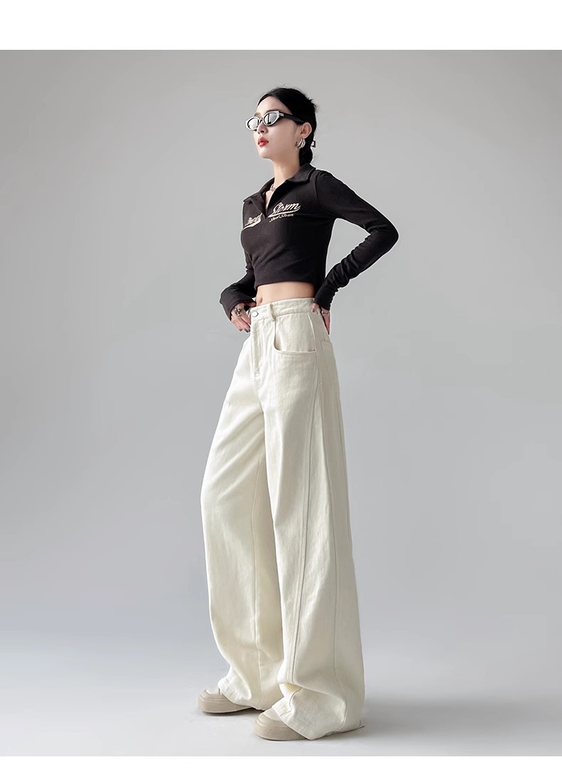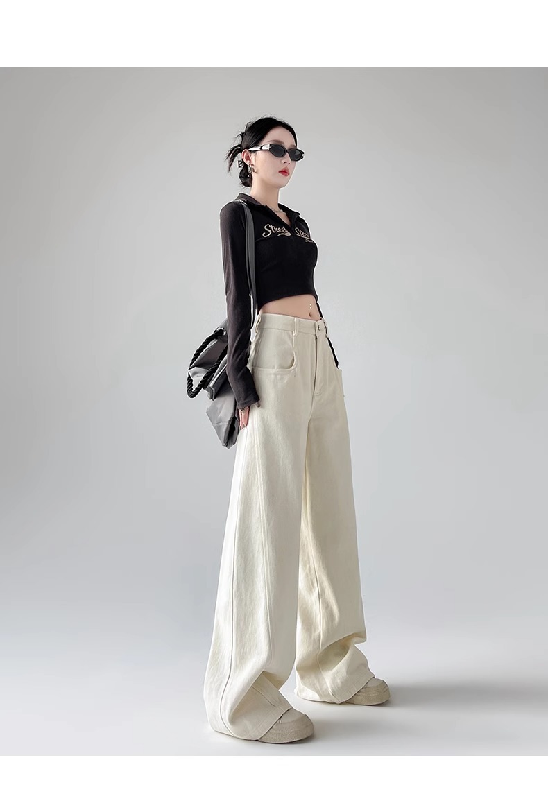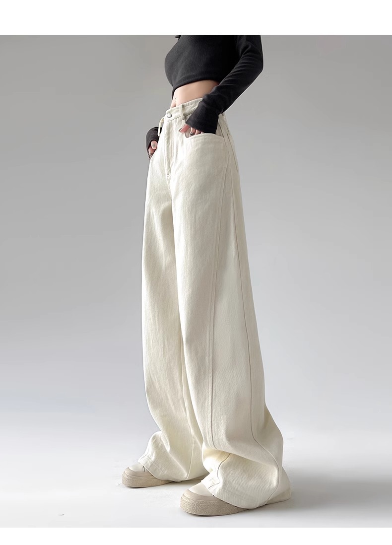 화이트 와이드 레그 청바지 여성의 가을과 겨울 하이 스트리트 바나나 바지 미국 스타일 레트로 하이 웨이스트 스트레이트 루즈 팬츠