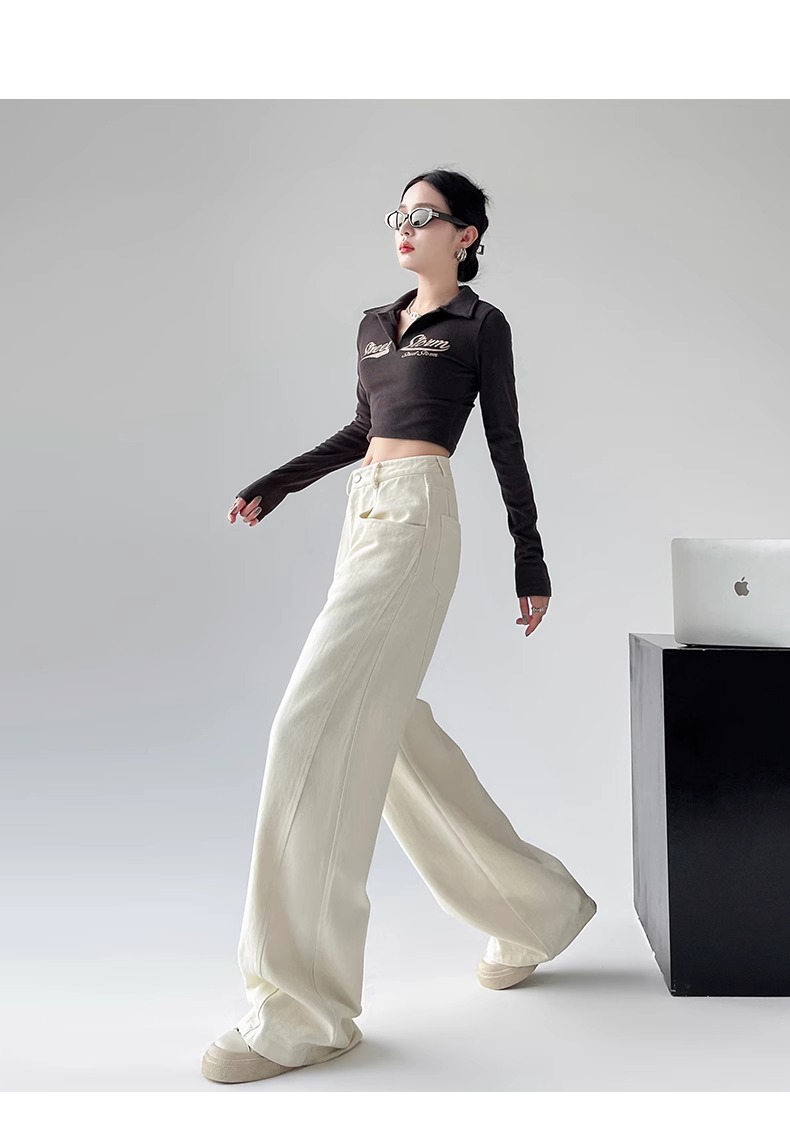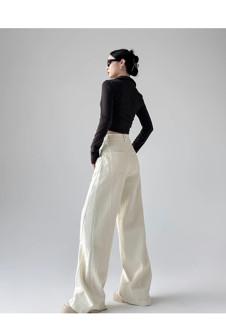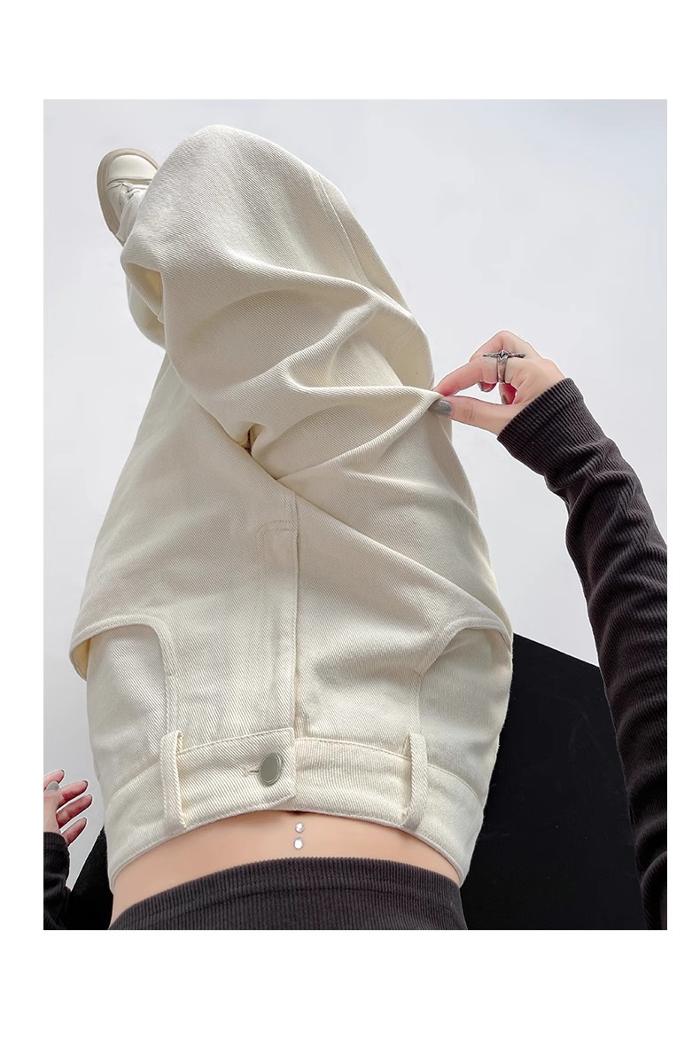 화이트 와이드 레그 청바지 여성의 가을과 겨울 하이 스트리트 바나나 바지 미국 스타일 레트로 하이 웨이스트 스트레이트 루즈 팬츠