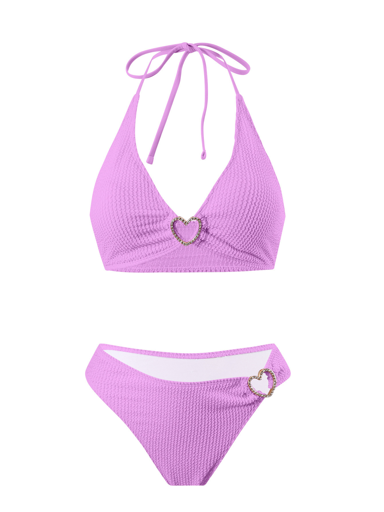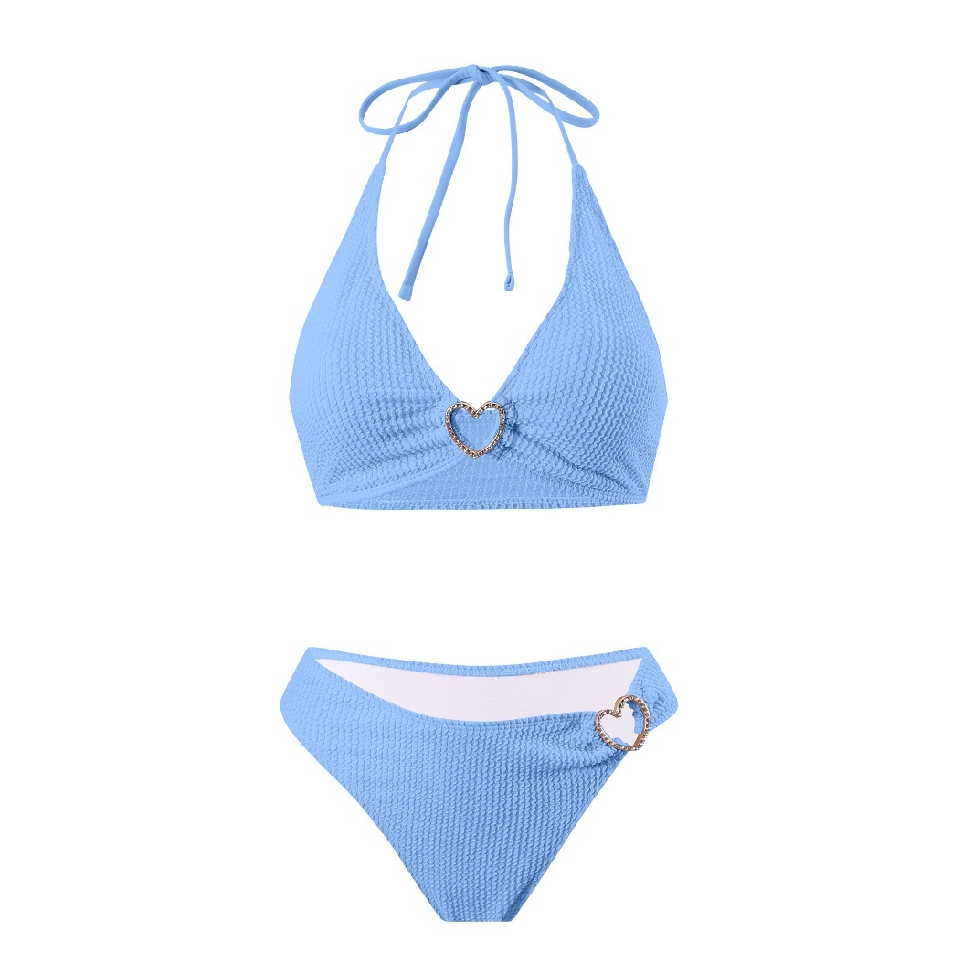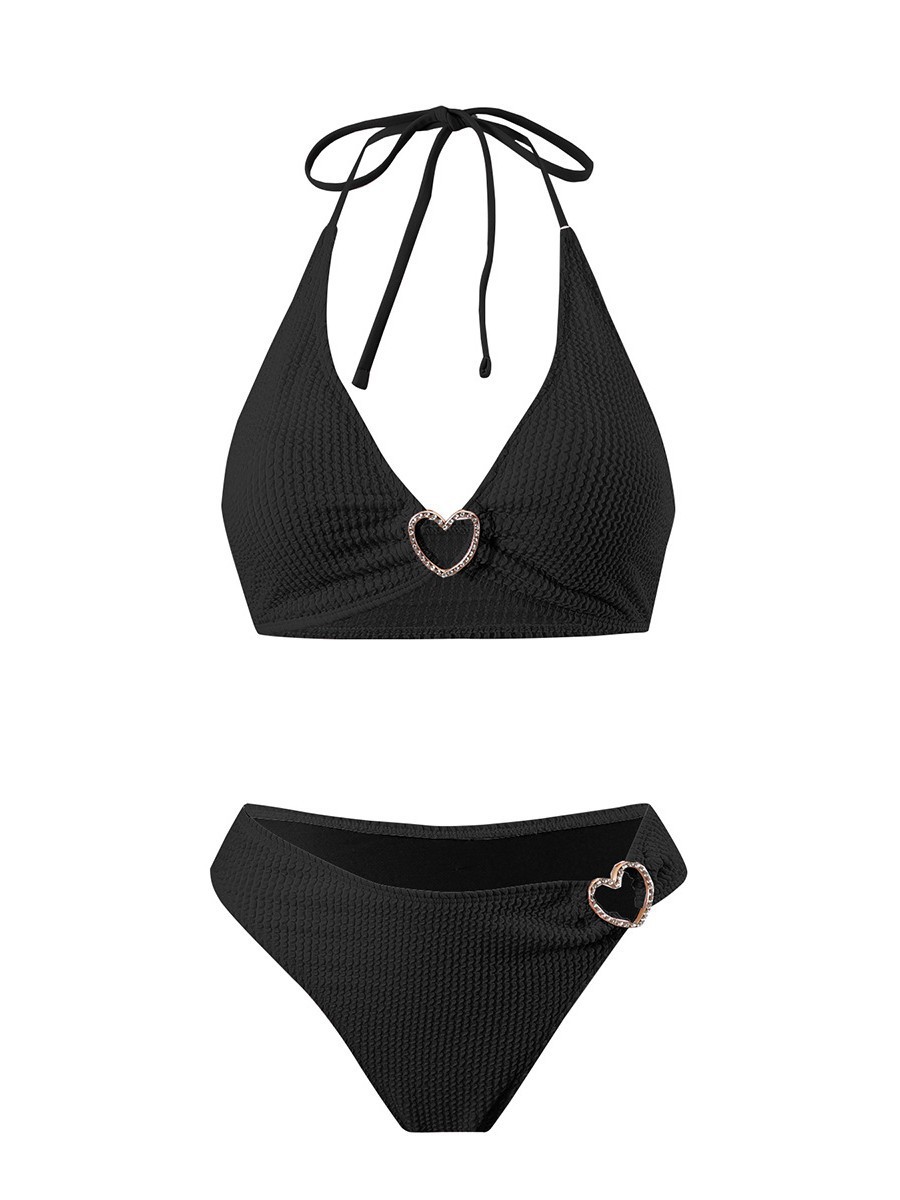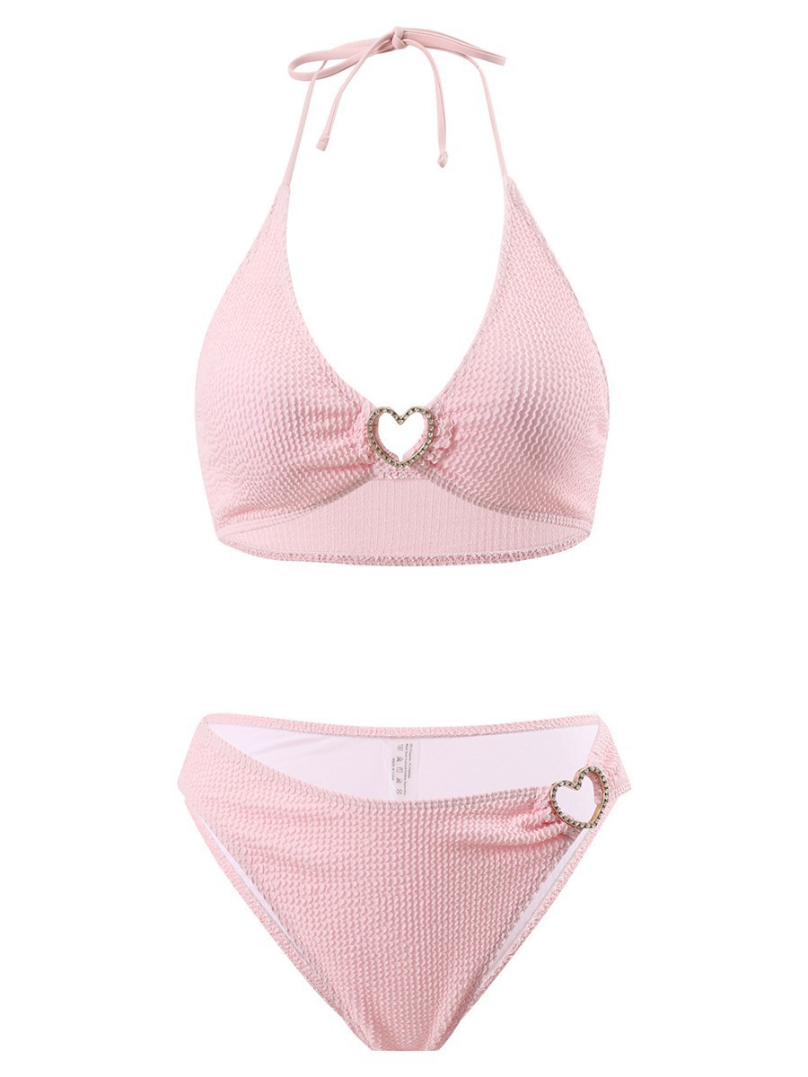 솔리드 컬러 여성 온천 목욕 매달려 목 스트랩 스플릿 수영복 하트 모양의 할로우 아웃 타이트 섹시한 투피스 비키니