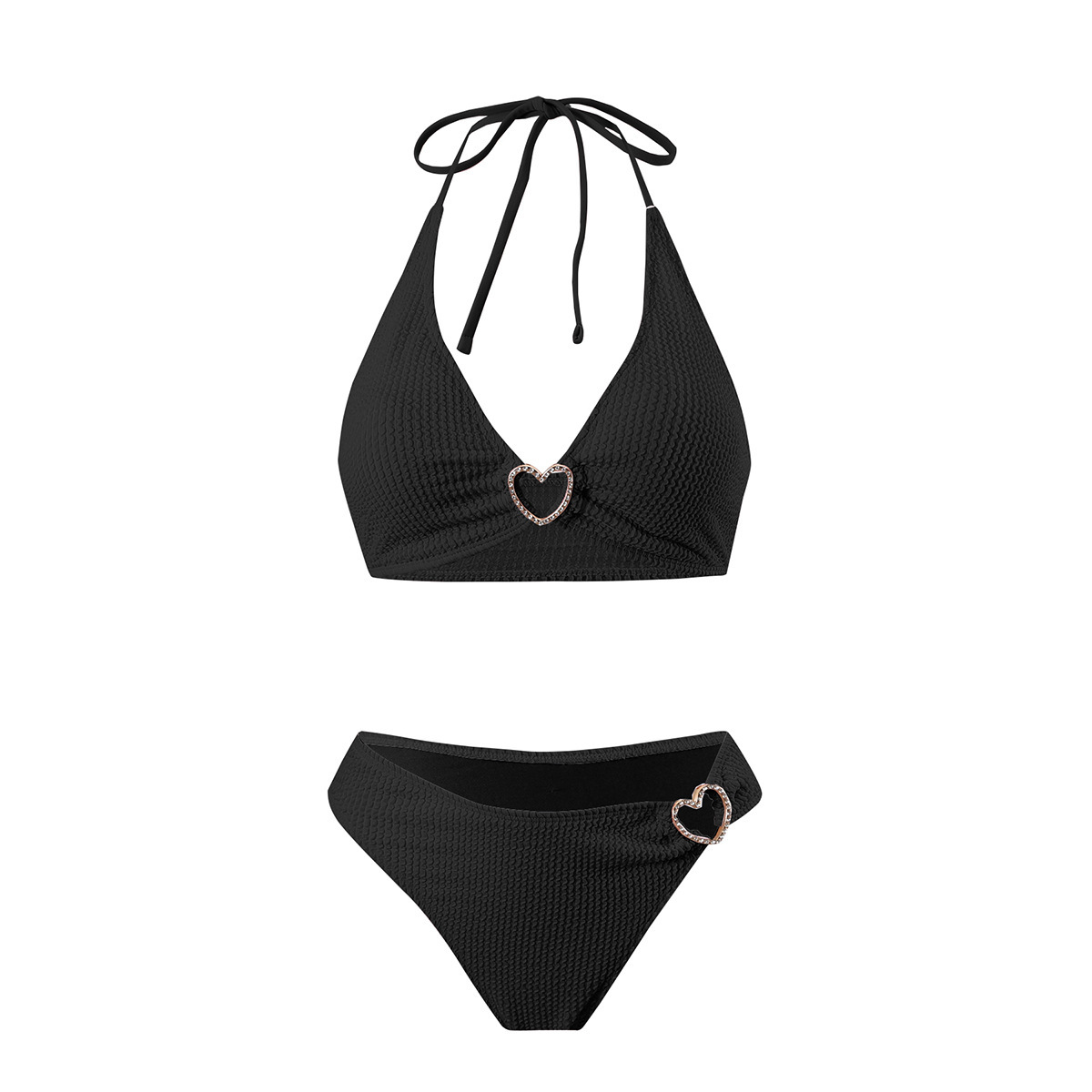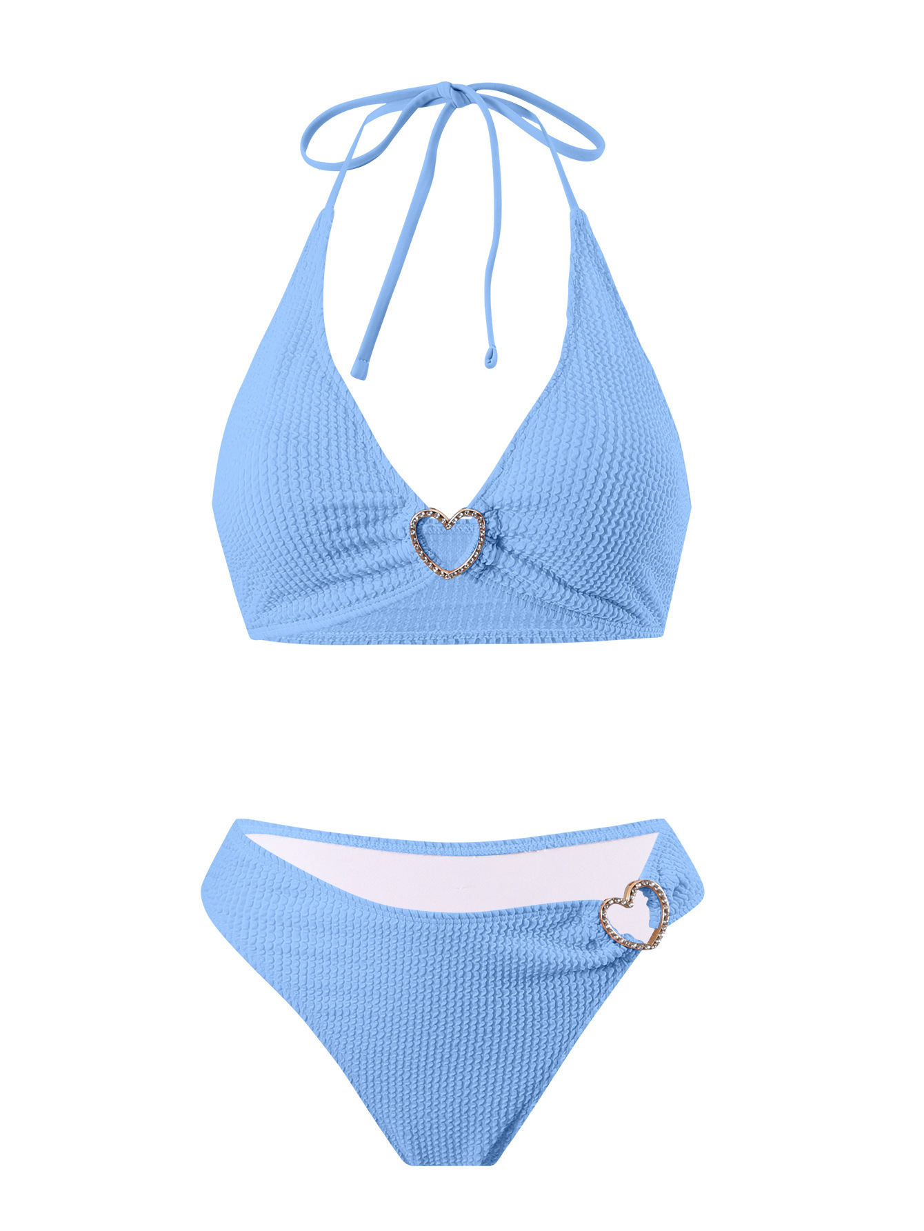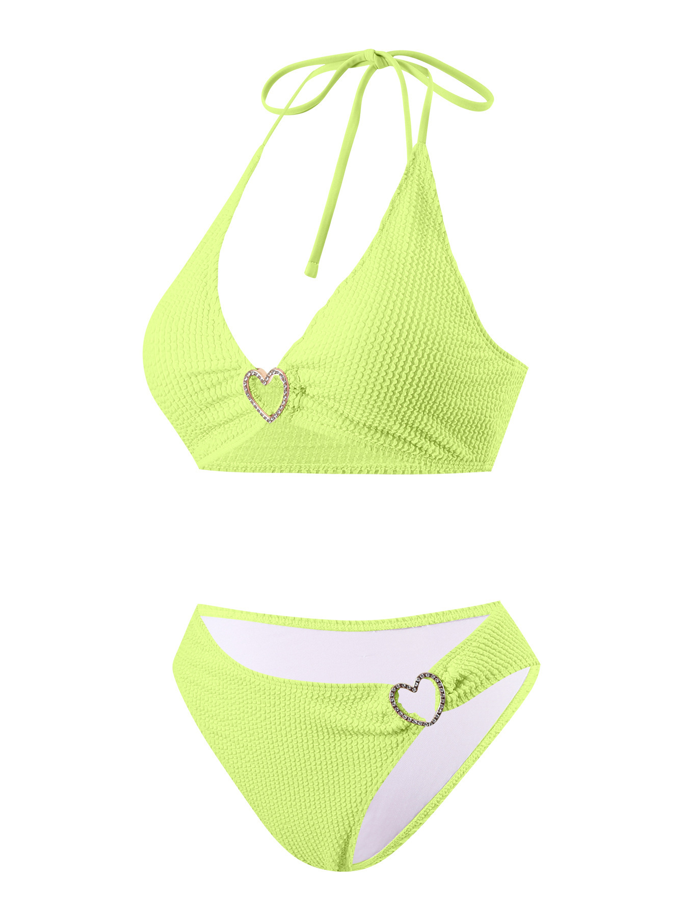 솔리드 컬러 여성 온천 목욕 매달려 목 스트랩 스플릿 수영복 하트 모양의 할로우 아웃 타이트 섹시한 투피스 비키니