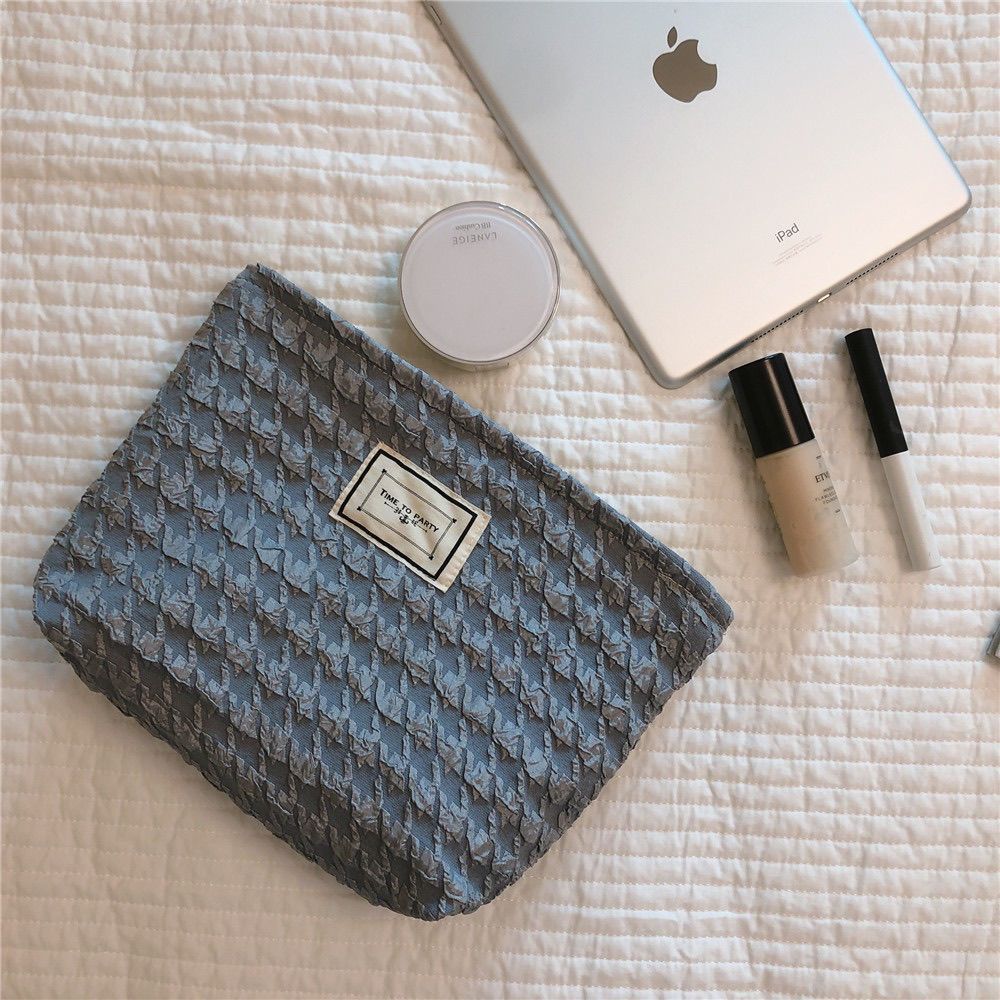 Houndstooth 솔리드 컬러 화장품 가방 저장 가방 흑백 우아한 간단한 클러치 가방 학생 대용량 틈새 디자인 감각