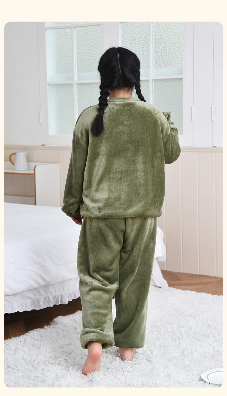 뚱뚱한 여자 플란넬 잠옷 세트 여자 겨울 옷 큰 아이 가을 겨울 산호 양털 홈 옷