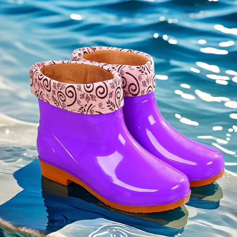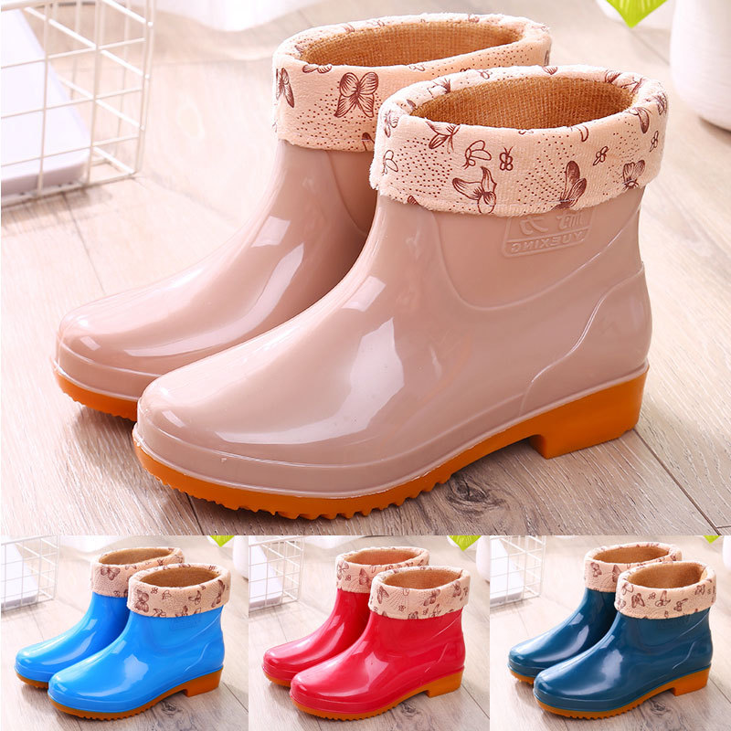 짧은 장화 여성용 가정용 미끄럼 방지 방수 신발 낮은 장화 여성 성인 기모 낮은 고무 신발 따뜻한 고무 신발