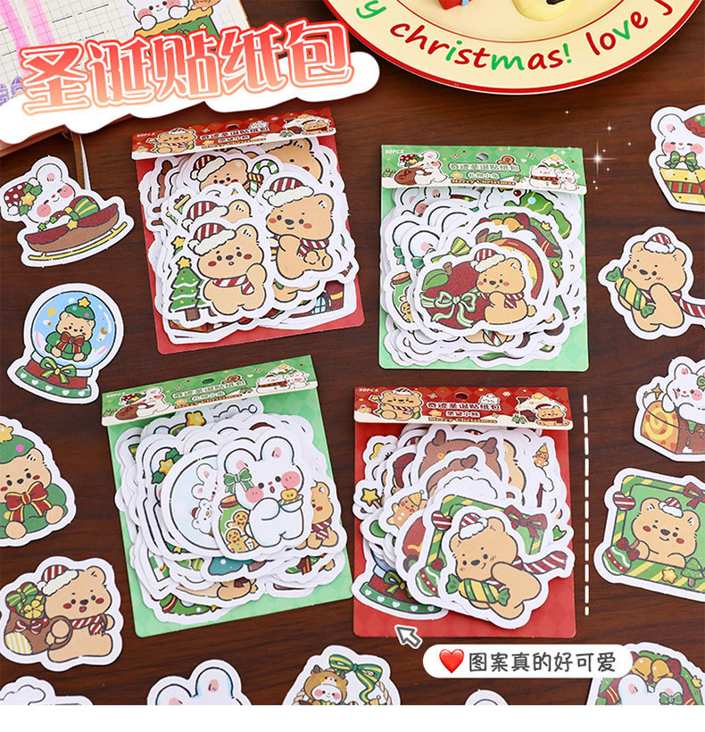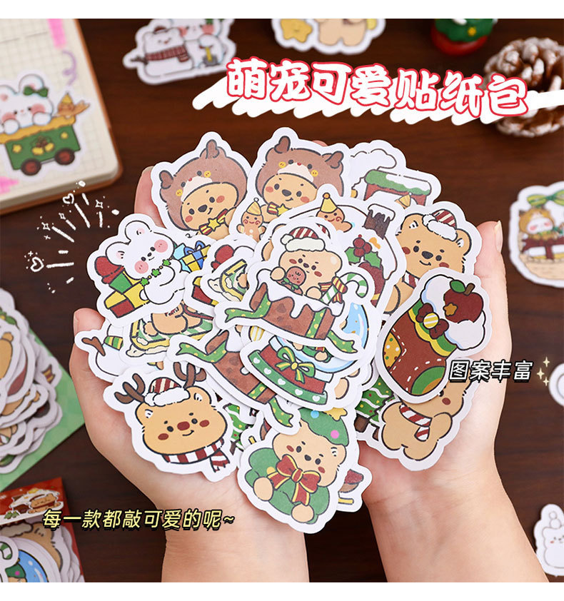 귀여운 크리스마스 스티커 가방 어린이 DIY 페이스트 크리스마스 장식 작은 스티커 만화 스티커 손 계정 스티커스토어 가기