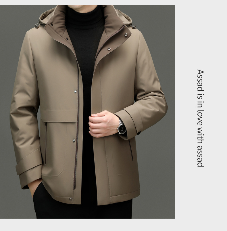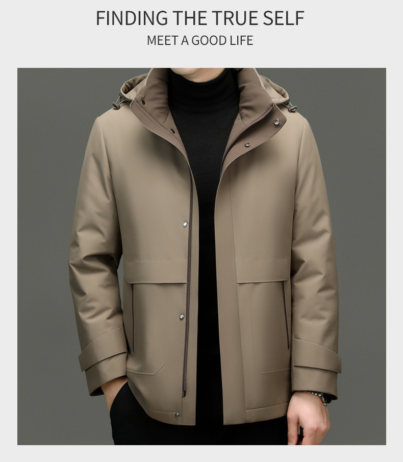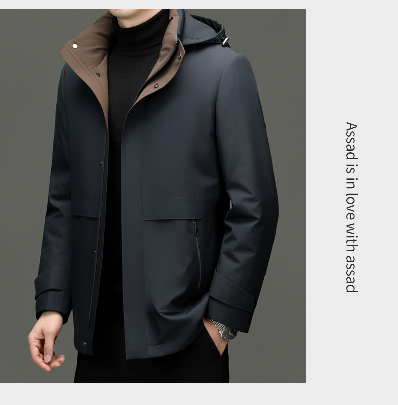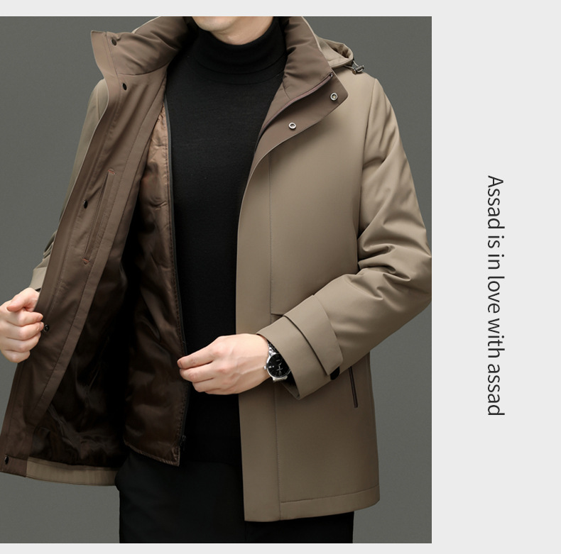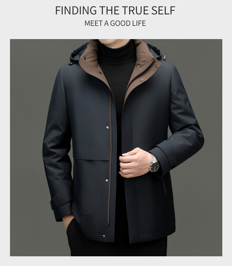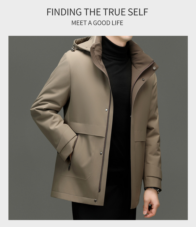 카운터 하이 엔드 니아 오 영 및 중년 아빠 남성복 두꺼운 파커 겨울 중간 길이 후드 따뜻한 재킷