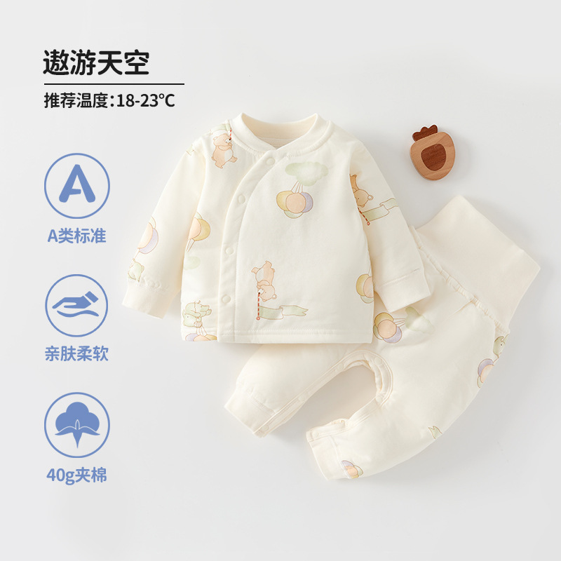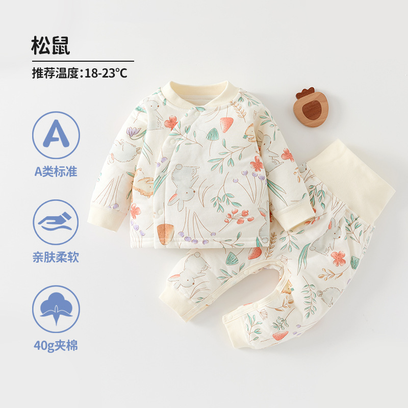 아기 속옷 세트 가을과 겨울 어린이 40g 면 높은 허리 배 보호 잠옷 아기 홈 의류 세트스토어 가기