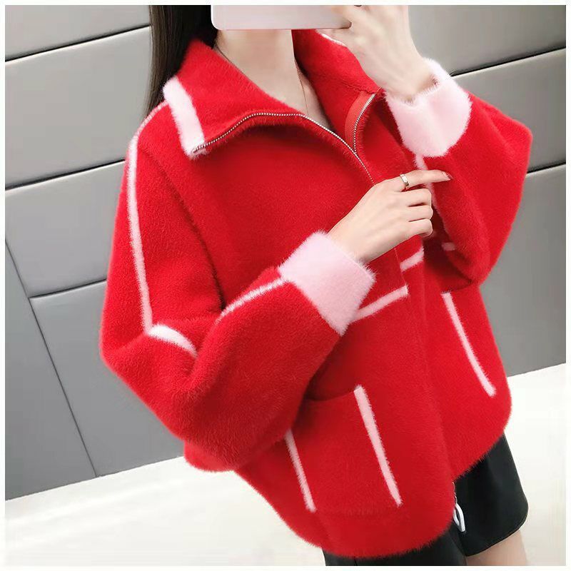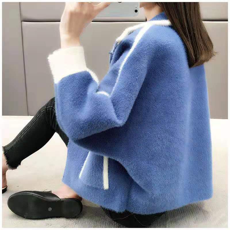 모조 밍크 짧은 코트 여성의 가을과 겨울 한국 2024 새로운 패션 따뜻한 매우 요정 재킷 카디건스토어 가기