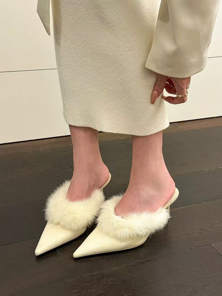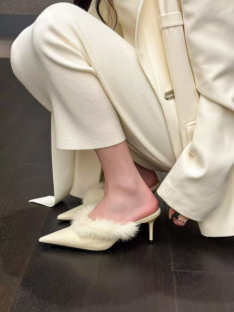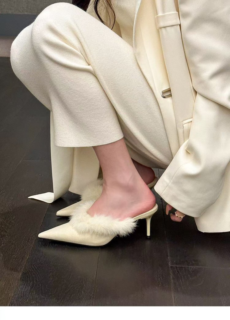 샤넬 스타일 마오 마오 하이힐 샌들 및 슬리퍼 여성의 2024 새로운 포인팅 스틸레토 힐 바오 터우 뮬러 리어 빈 패션 하이힐