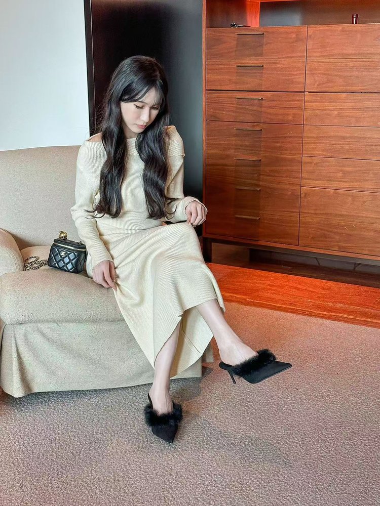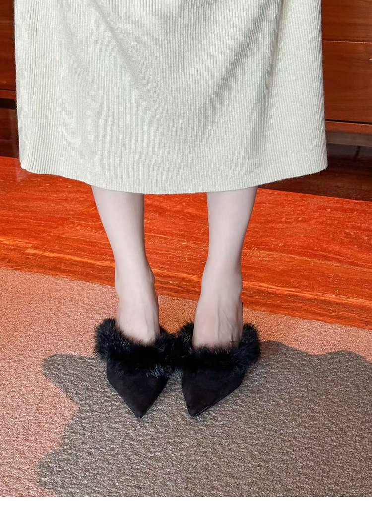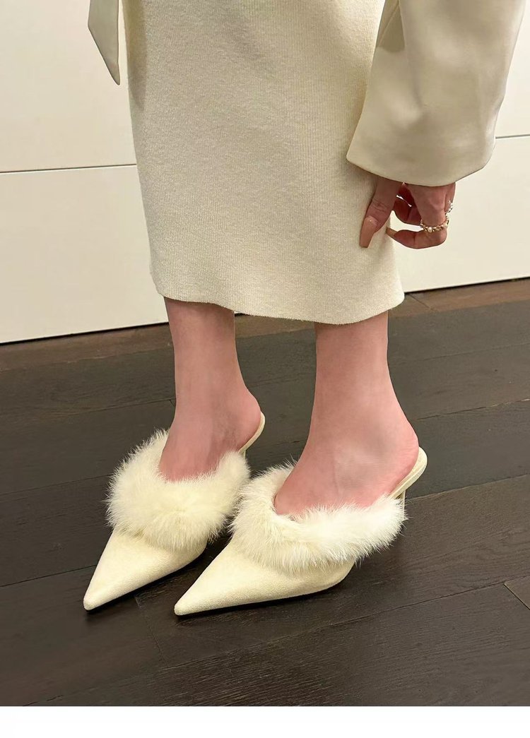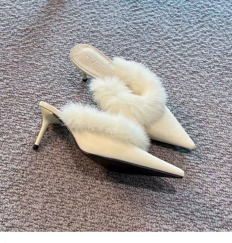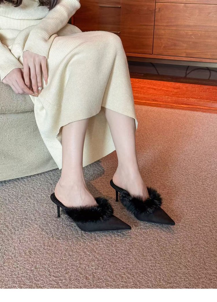 샤넬 스타일 마오 마오 하이힐 샌들 및 슬리퍼 여성의 2024 새로운 포인팅 스틸레토 힐 바오 터우 뮬러 리어 빈 패션 하이힐스토어 가기