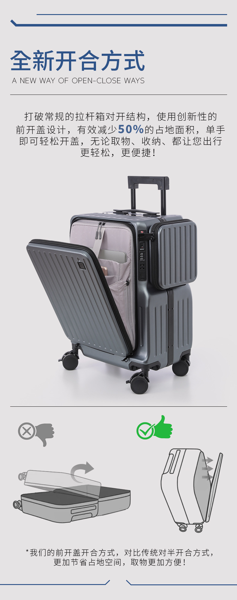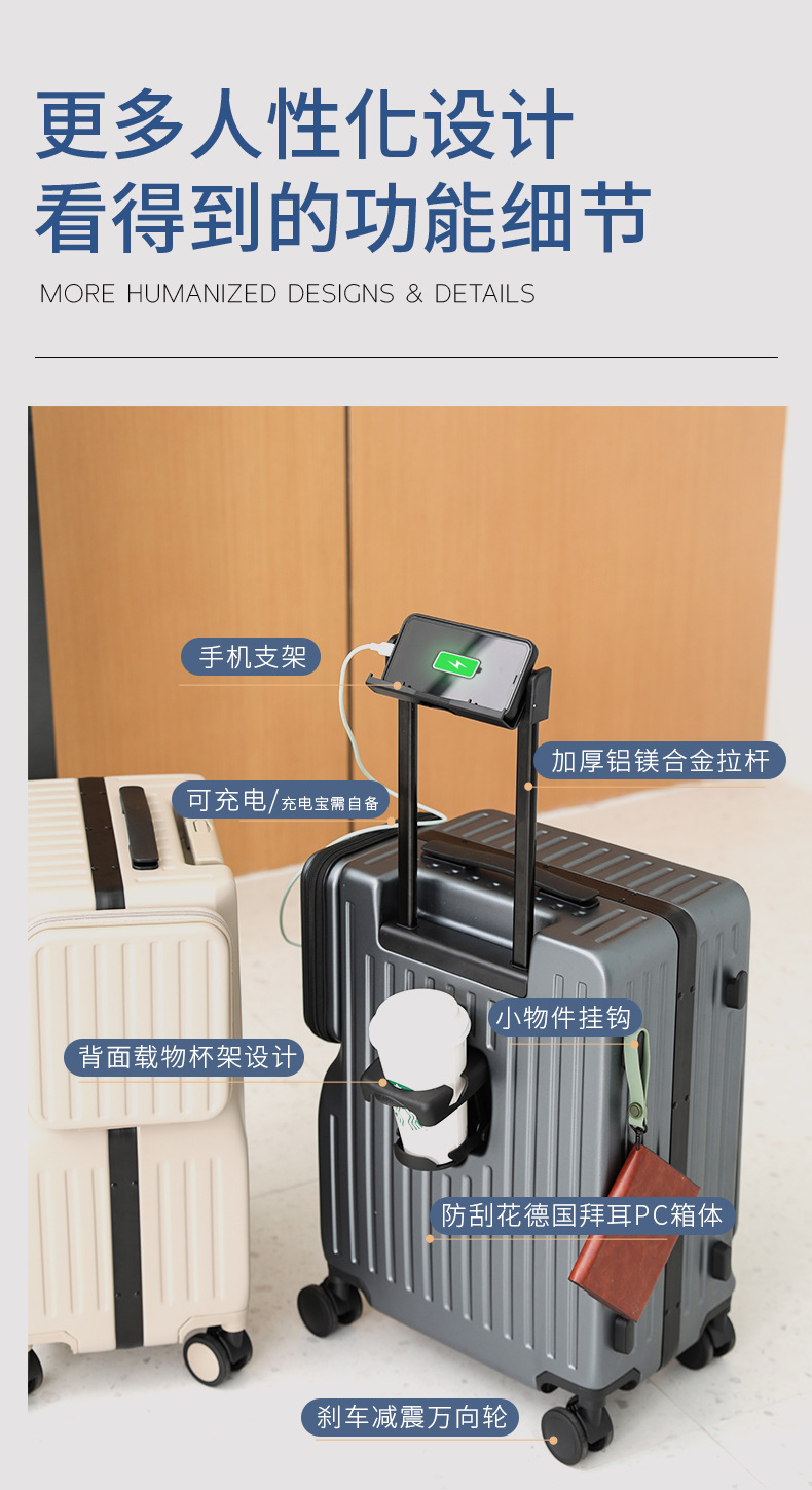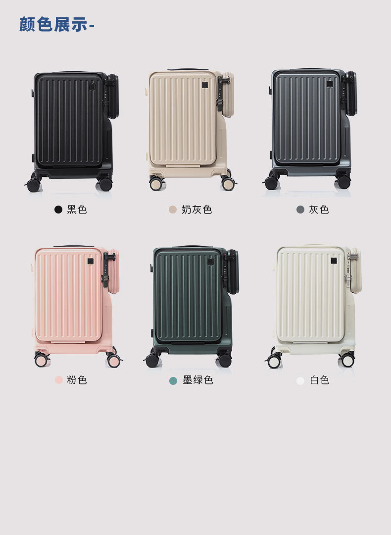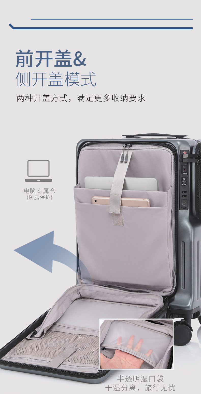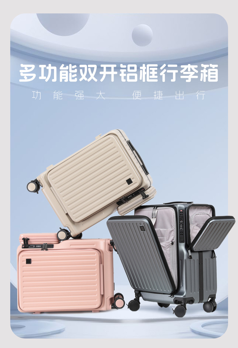 새로운 국경 전선 개방 수하물 지퍼 박스 다기능 트롤리 케이스 20 인치 이중 개방 수하물 케이스스토어 가기