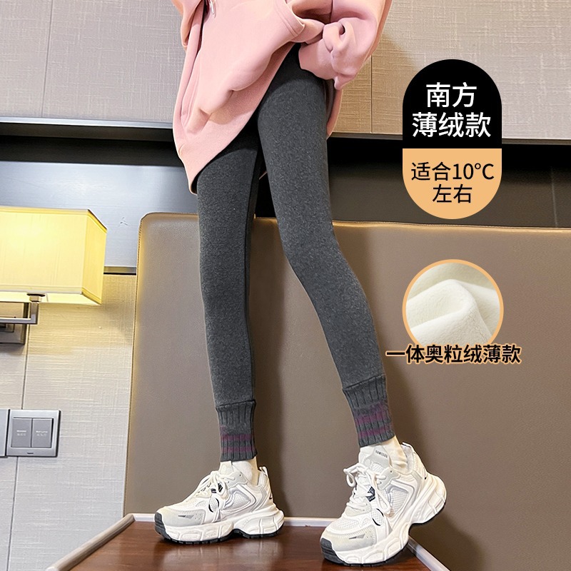 소녀 레깅스 기모 두꺼운 가을과 겨울 한국 스타일 외부 어린이 원피스 벨벳 따뜻한 바지 봄 및 가을 중 큰 어린이 바지 착용