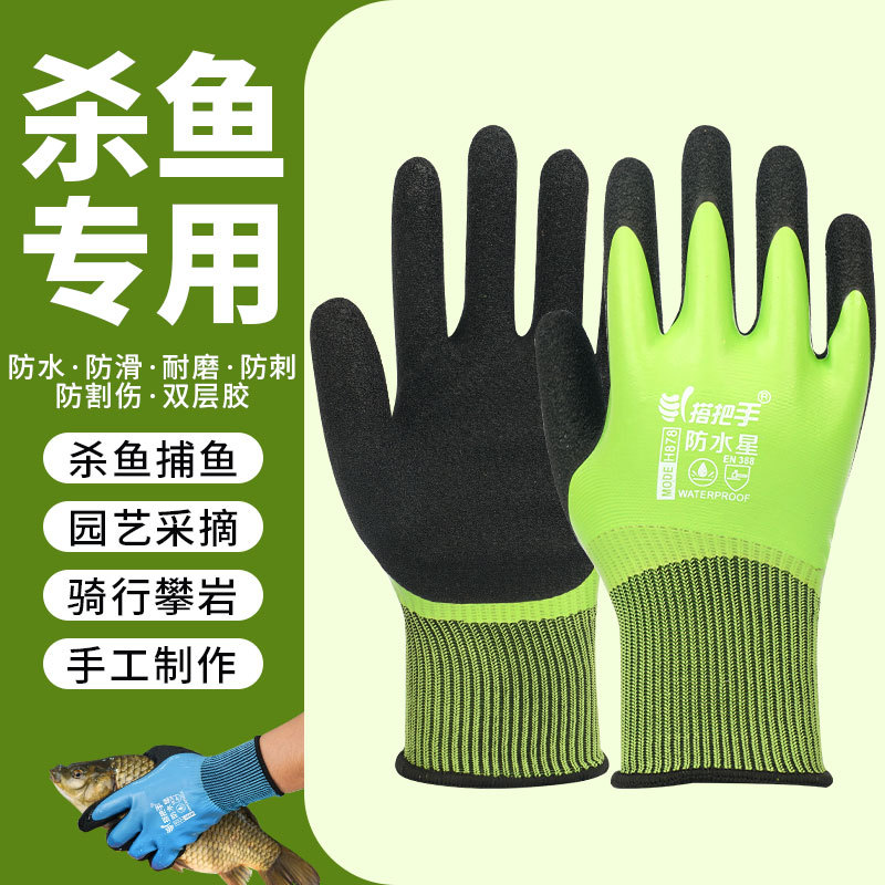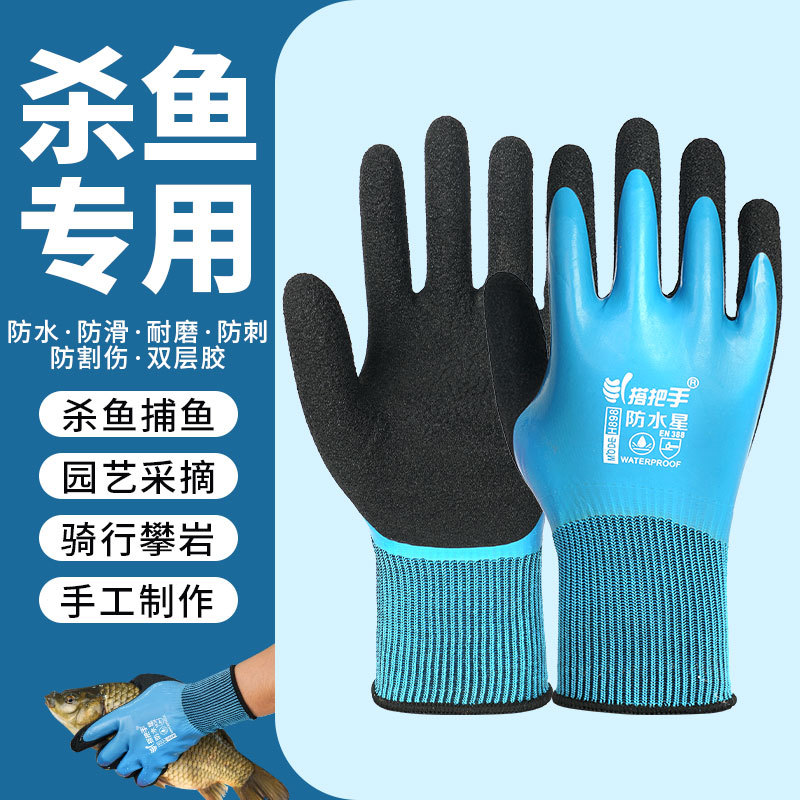 수생 장갑은 물고기 미끄럼 방지 넥타이 방수 오일 방지 이중층 담그는 장갑 게 해산물 바다 장갑을 잡습니다.스토어 가기