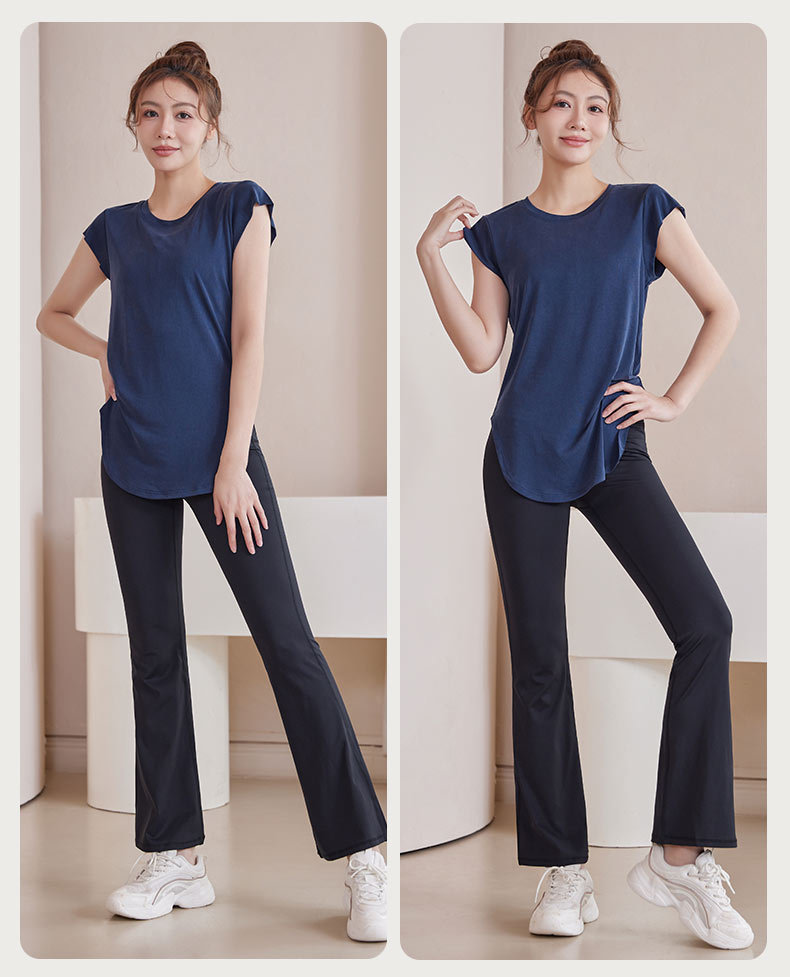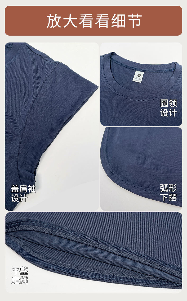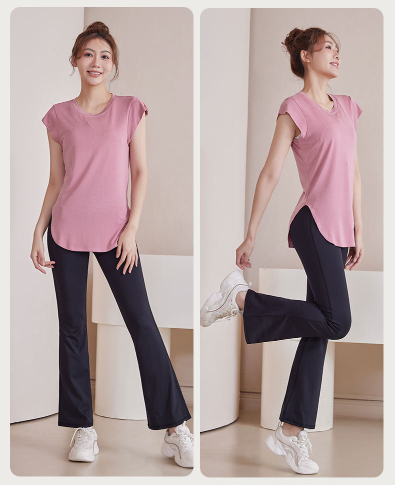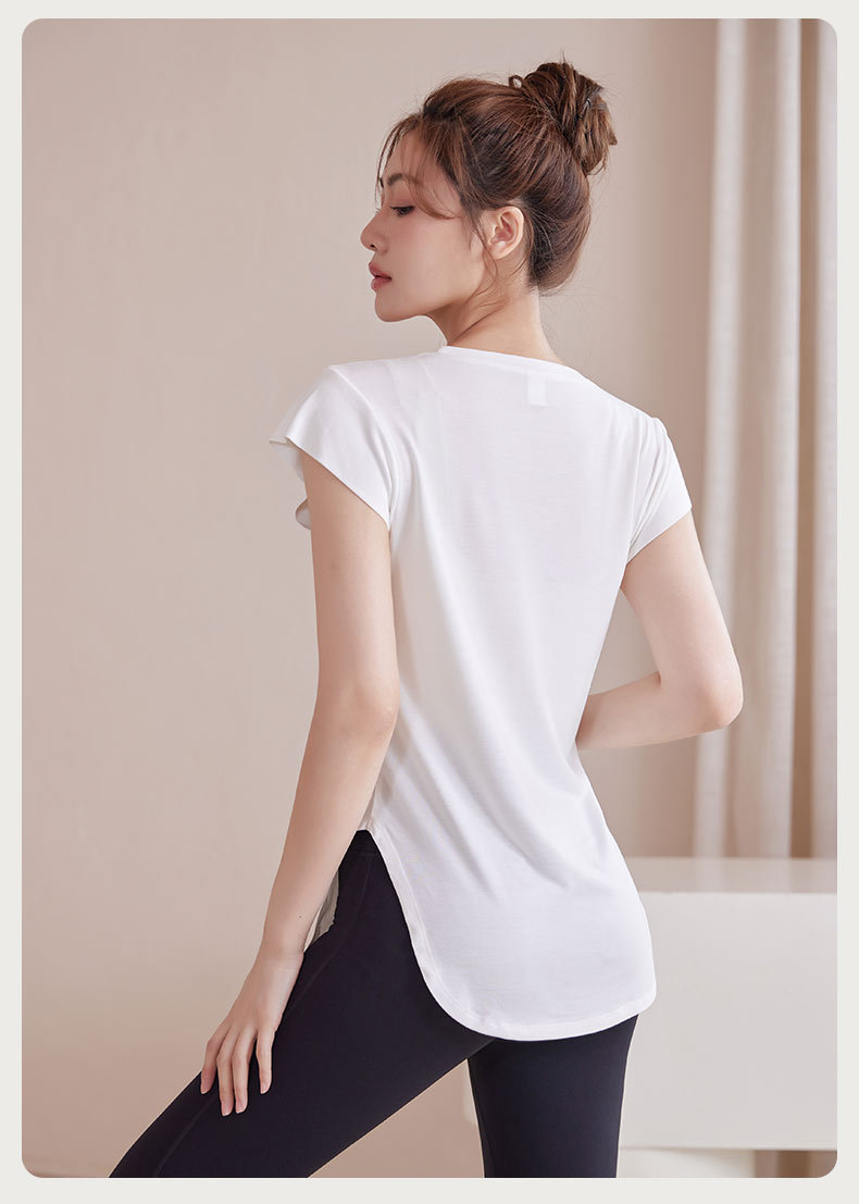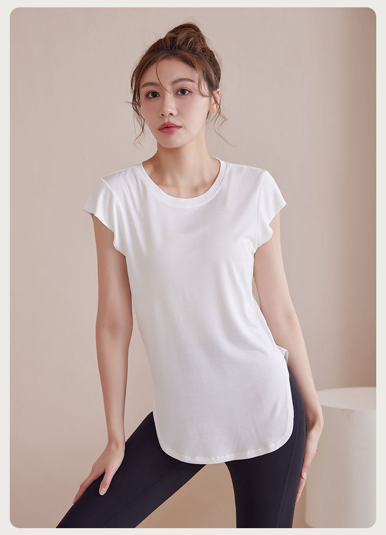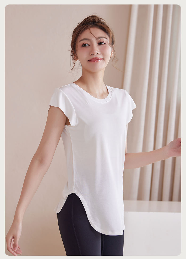 모달 조끼 여성 슬림 핏 요가 세트 탑 슬리밍 아크 헴 티셔츠 스포츠 통기성 피트니스 반팔 여름