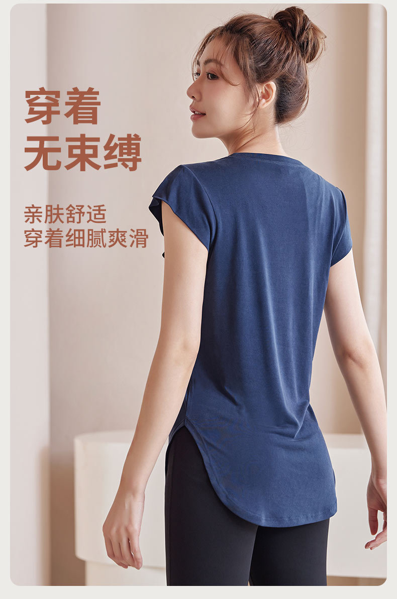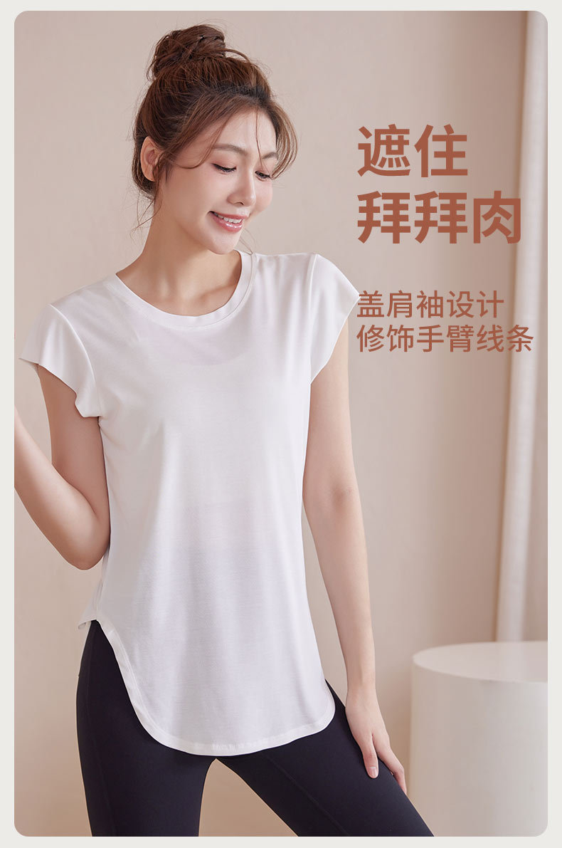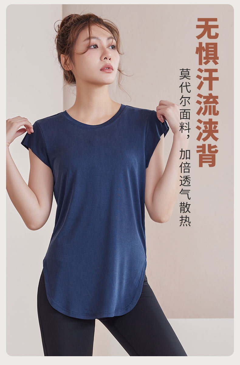 모달 조끼 여성 슬림 핏 요가 세트 탑 슬리밍 아크 헴 티셔츠 스포츠 통기성 피트니스 반팔 여름스토어 가기
