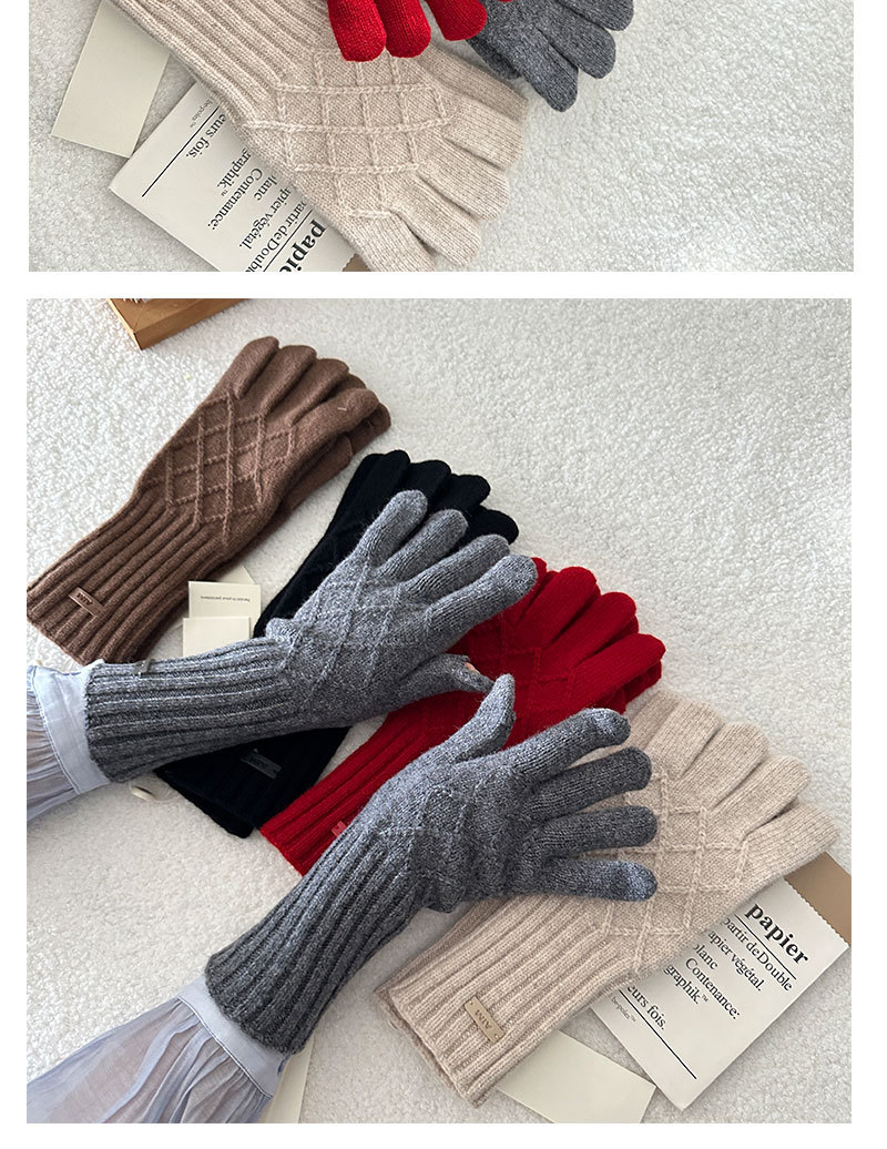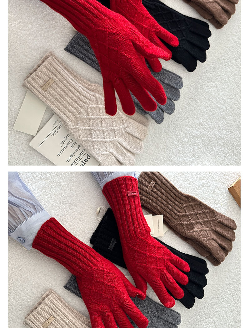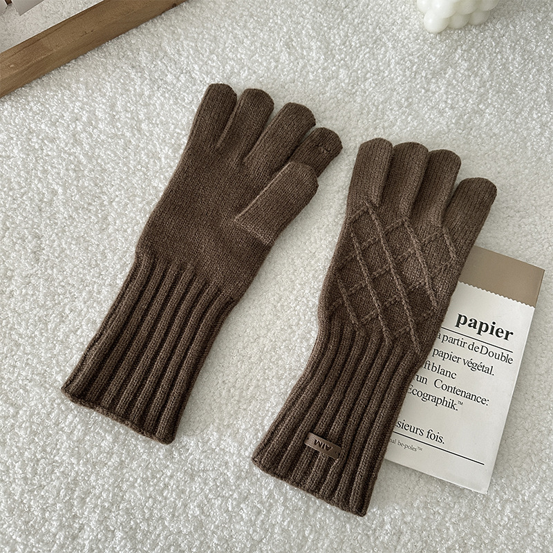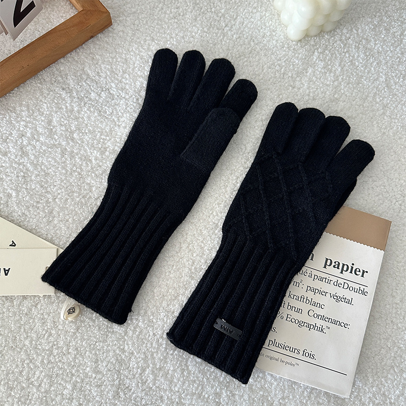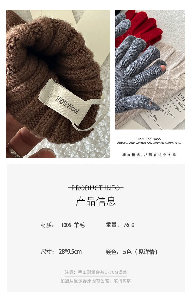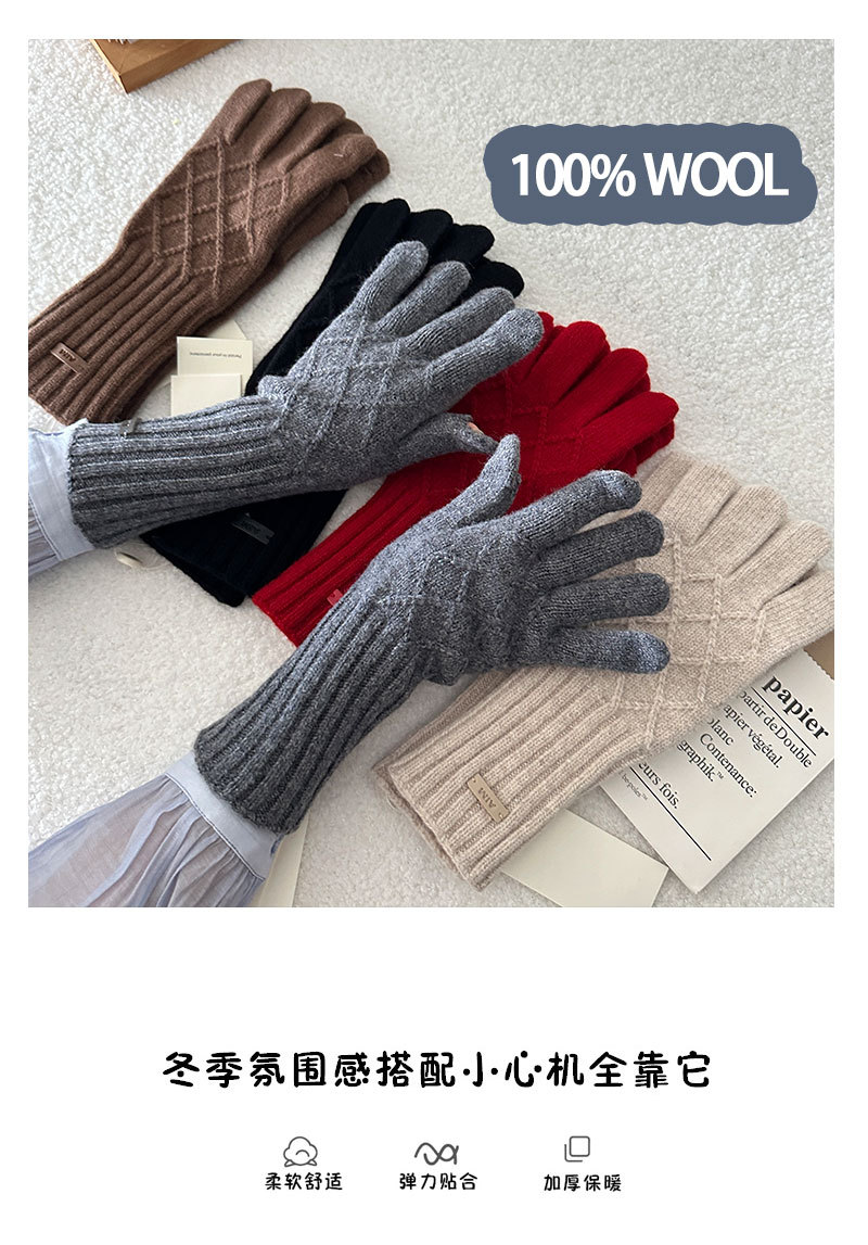 일본 가을과 겨울 새로운 모든 울 솔리드 컬러 니트 장갑 레트로 자카드 다이아몬드 격자 무늬 터치 스크린 따뜻한 장갑