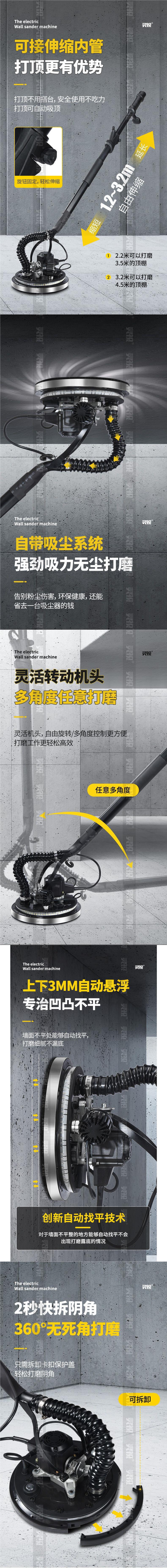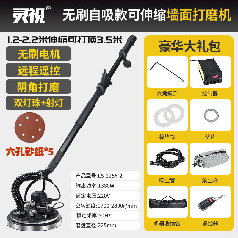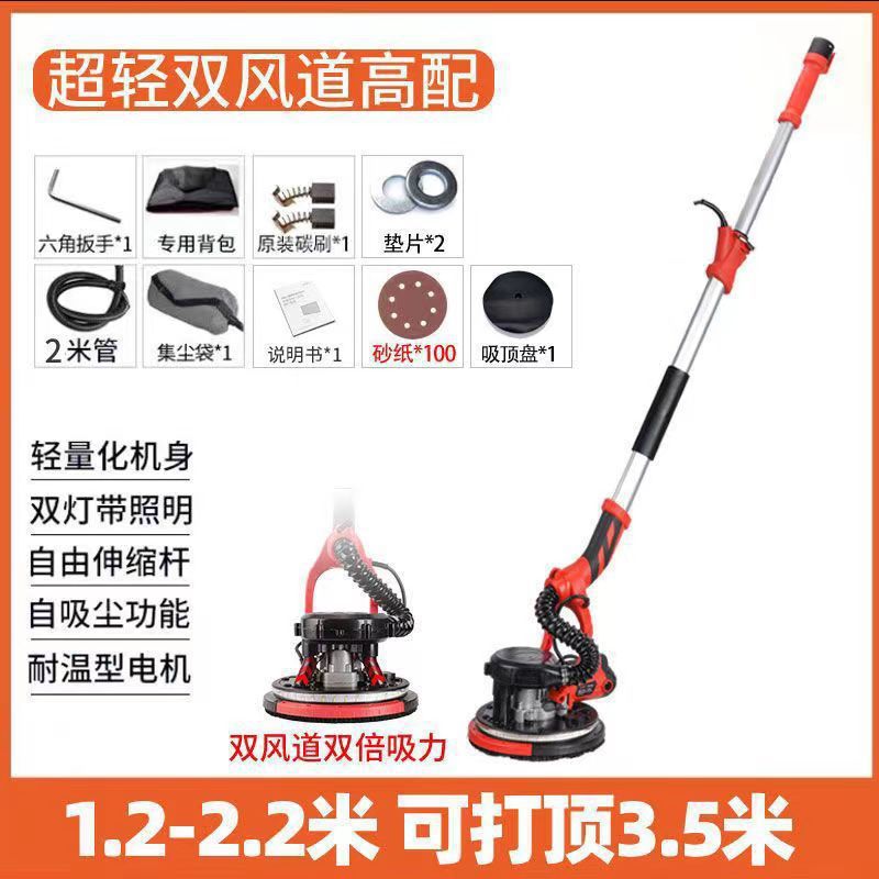 새로운 브러시리스 수정 된 이중 램프 초경량 흡입 상단 벽 연삭 기계 퍼티 먼지가없는 자체 진공 청소기 긴 막대 모래 피부 기계