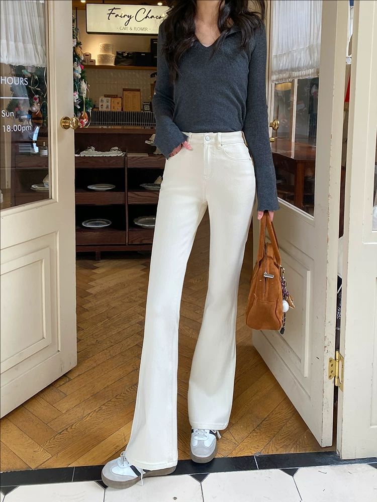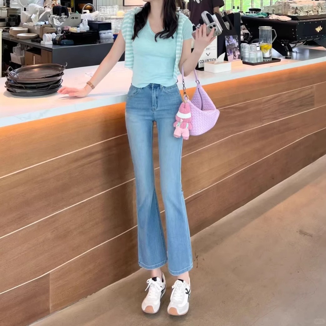 핏이 정말 놀랍습니다! 신상 4방향 스트레치 청바지, 다리를 길어 보이게 하고 날씬하게 만들어주는 여성용 마이크로 플레어 청바지, 작은 체형 여성용 509