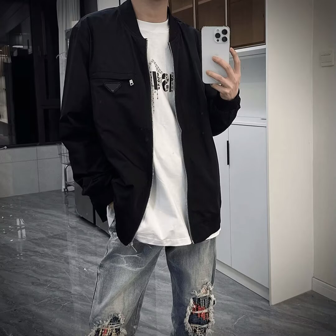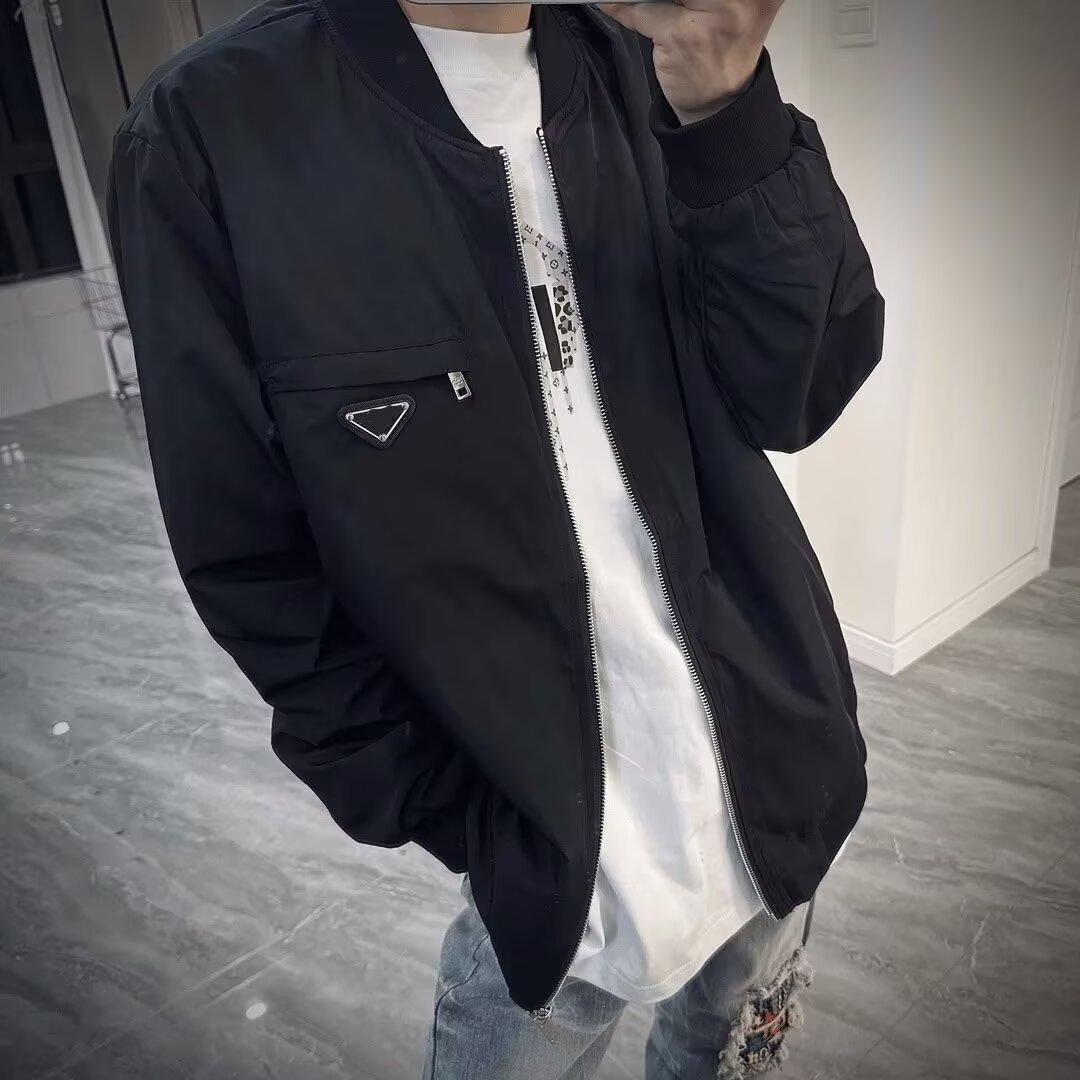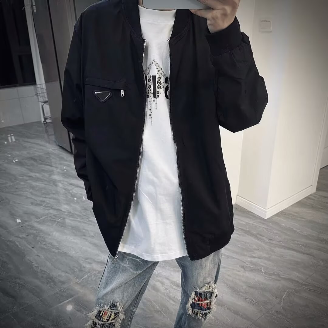 2024 새로운 한국 스타일 재킷 남자 편지 칼라 느슨한 유행 캐주얼 스포츠 비행가 블랙 재킷 탑