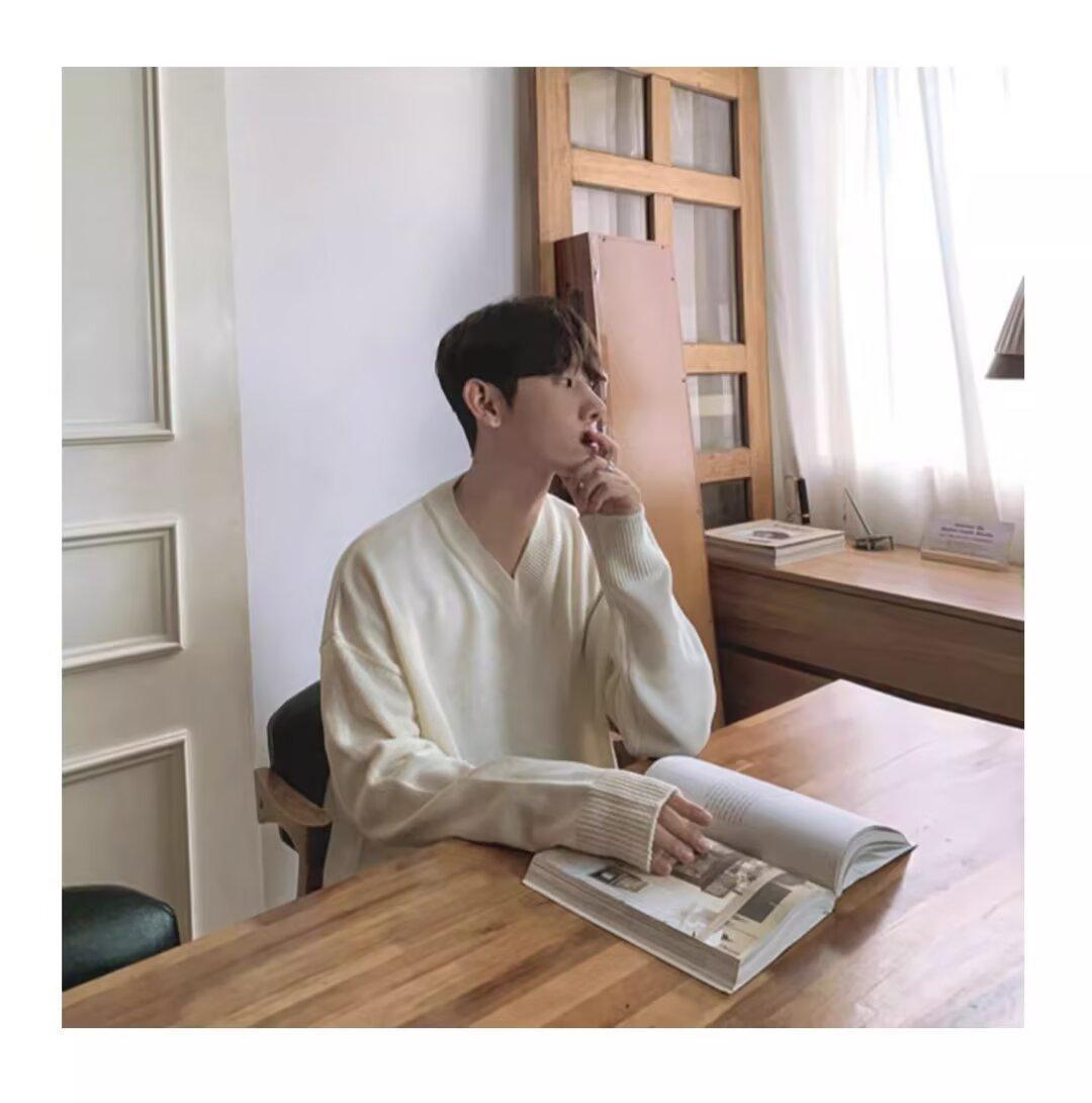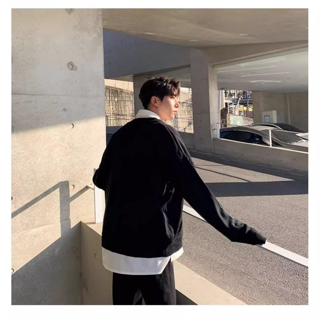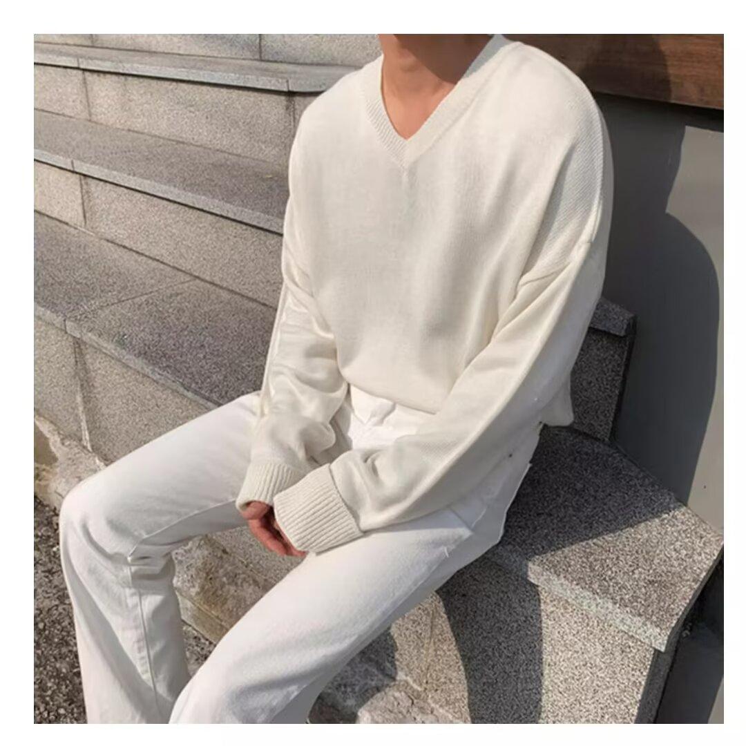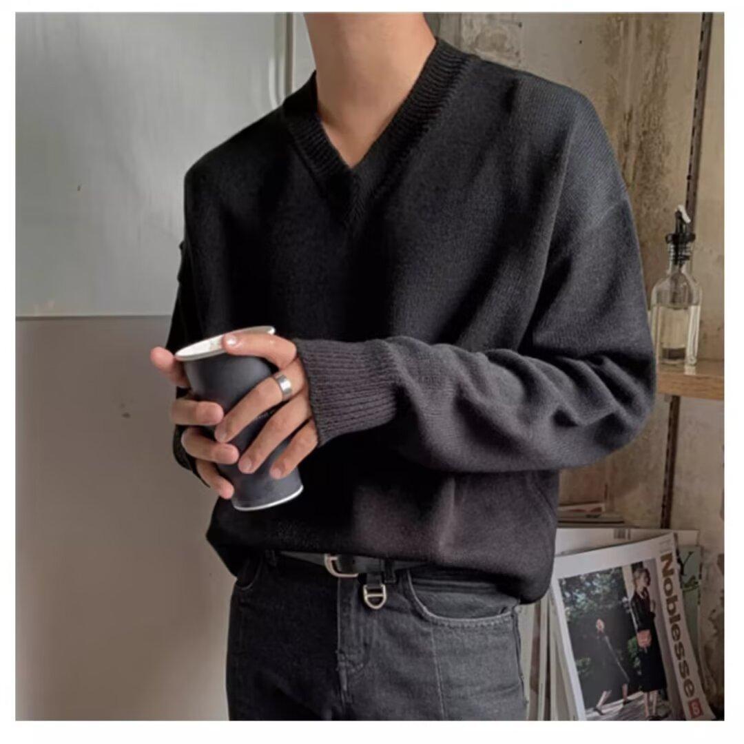 가을과 겨울 한국 스타일 V 넥 스웨터 남자의 새로운 느슨한 니트 스웨터 홍콩 스타일 캐주얼 긴 소매베이스 스웨터 트렌디 스웨터스토어 가기