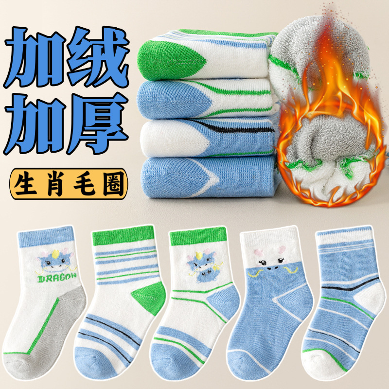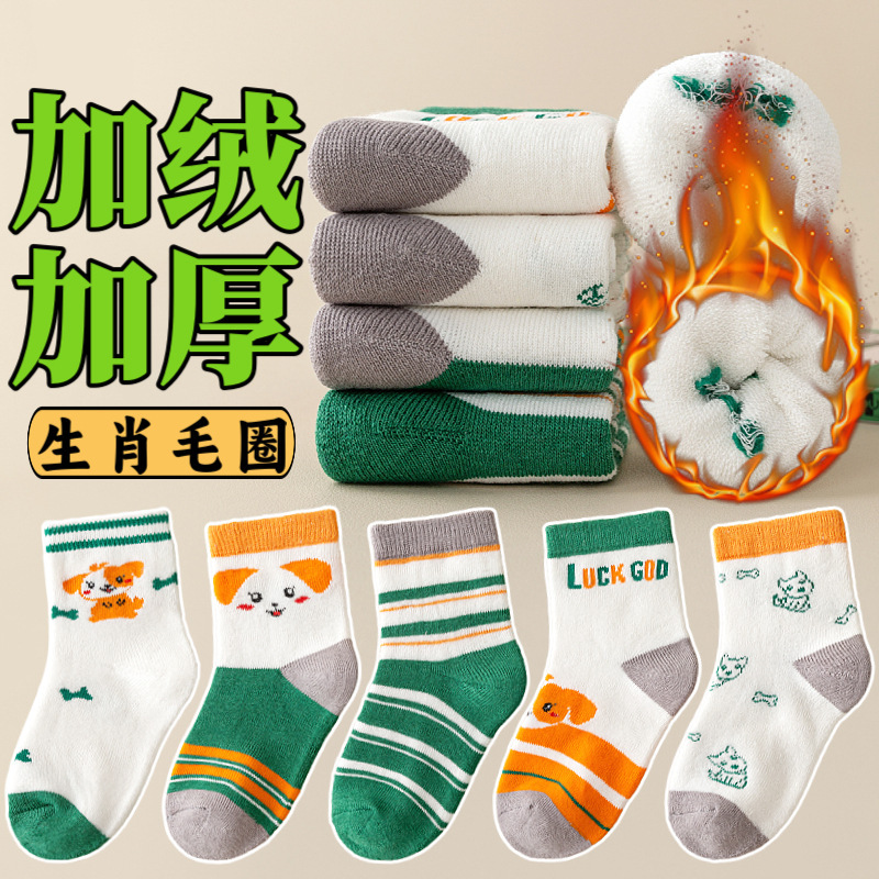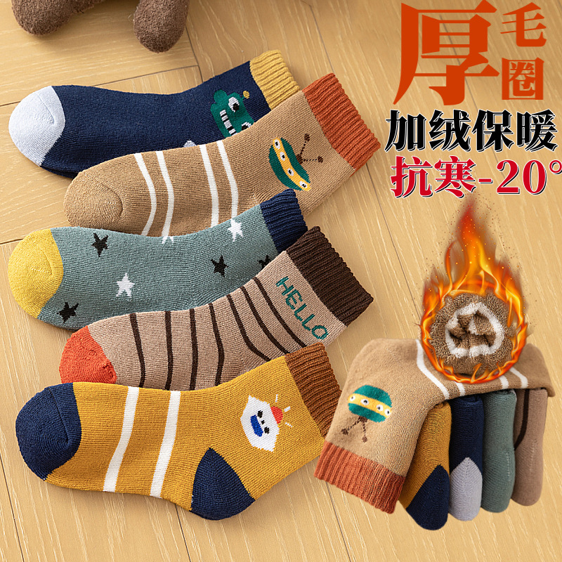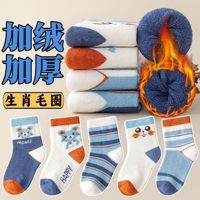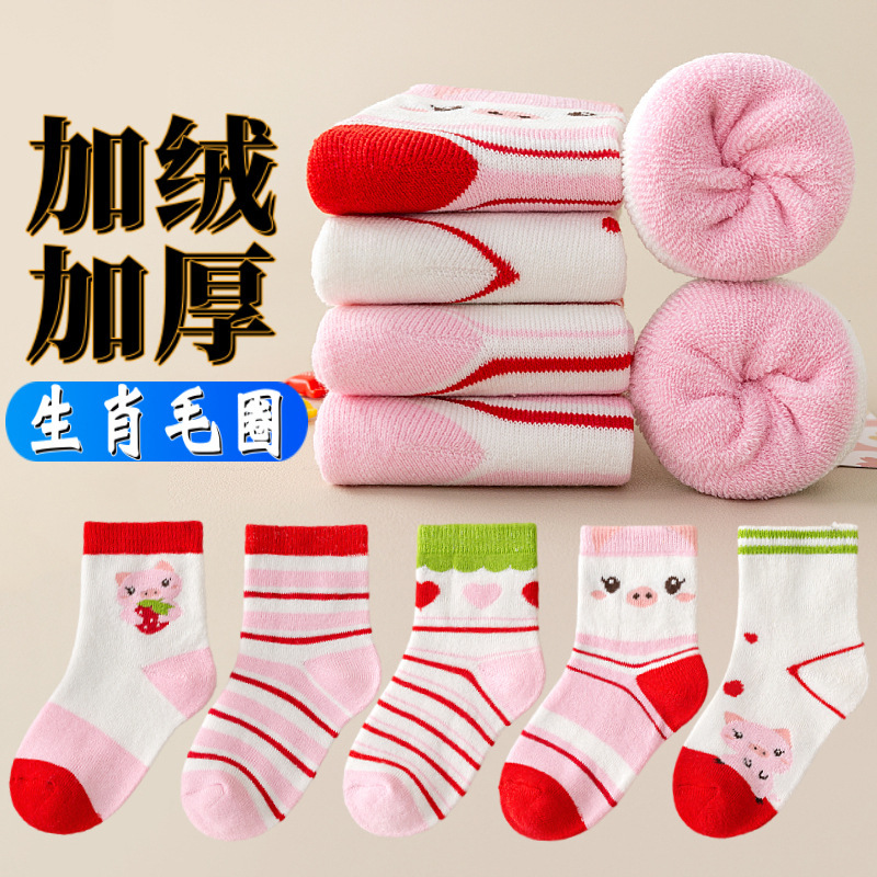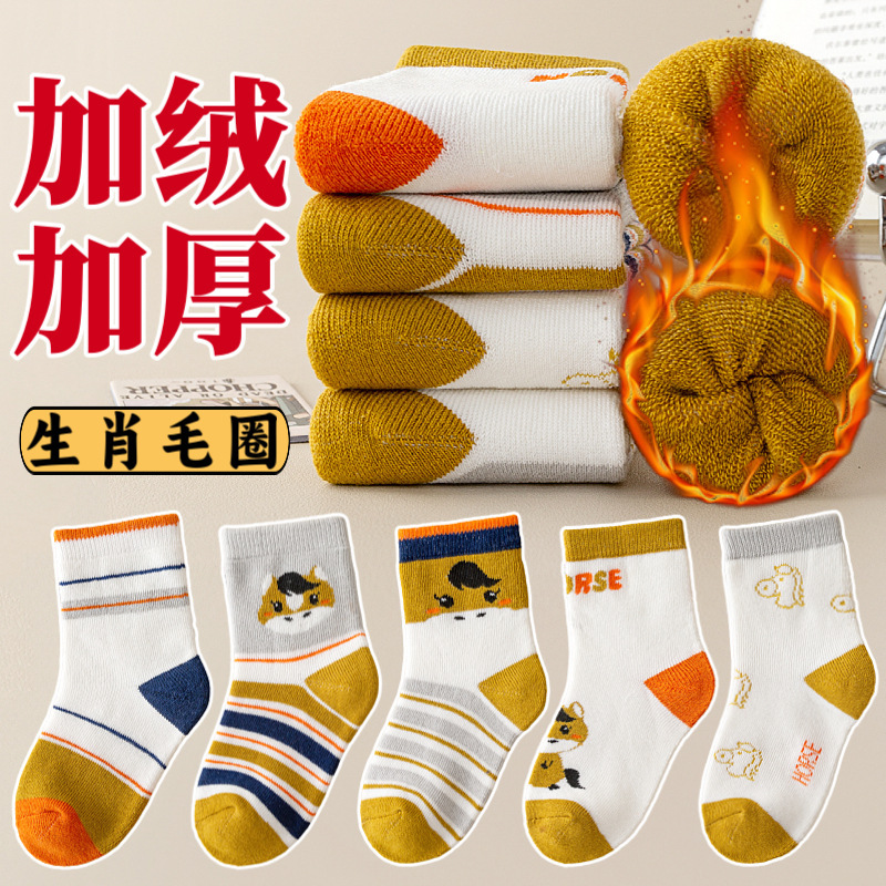 주지 양말 가을과 겨울 어린이 테리 양말 기모 아기 바닥 양말 남녀 양말 패딩 따뜻한 아기 양말