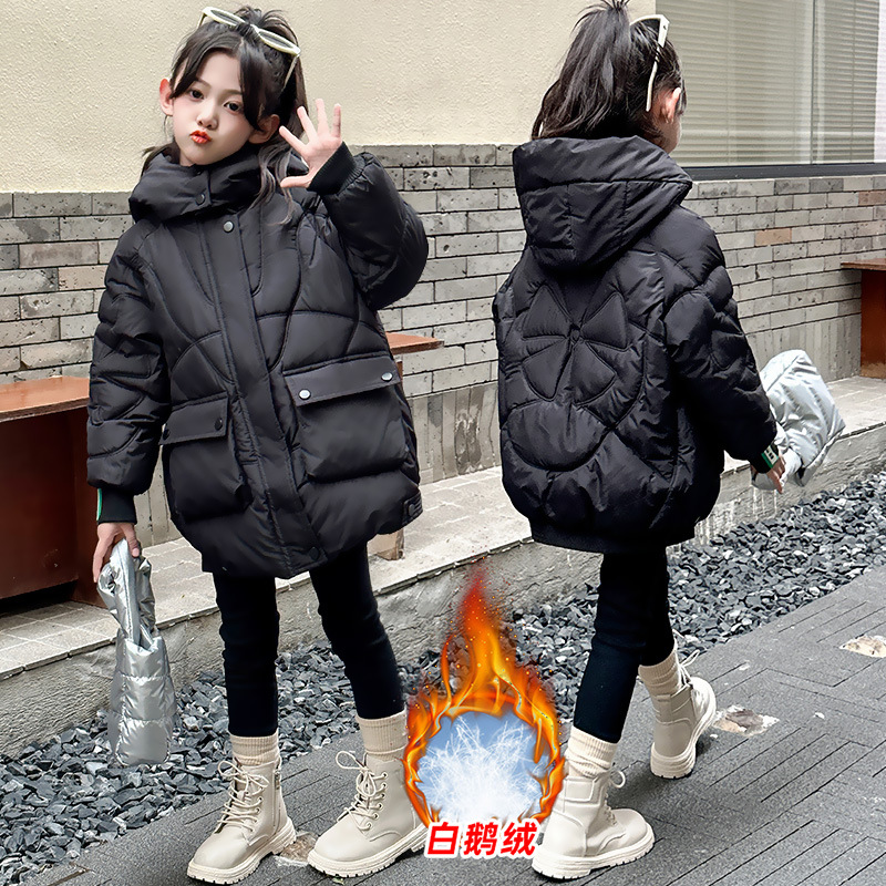 어린이 화이트 구스 다운 소녀의 겨울 2024 새로운 다운 재킷 큰 어린이 의류 인터넷 축하 중년 가을과 겨울 거위 코트스토어 가기