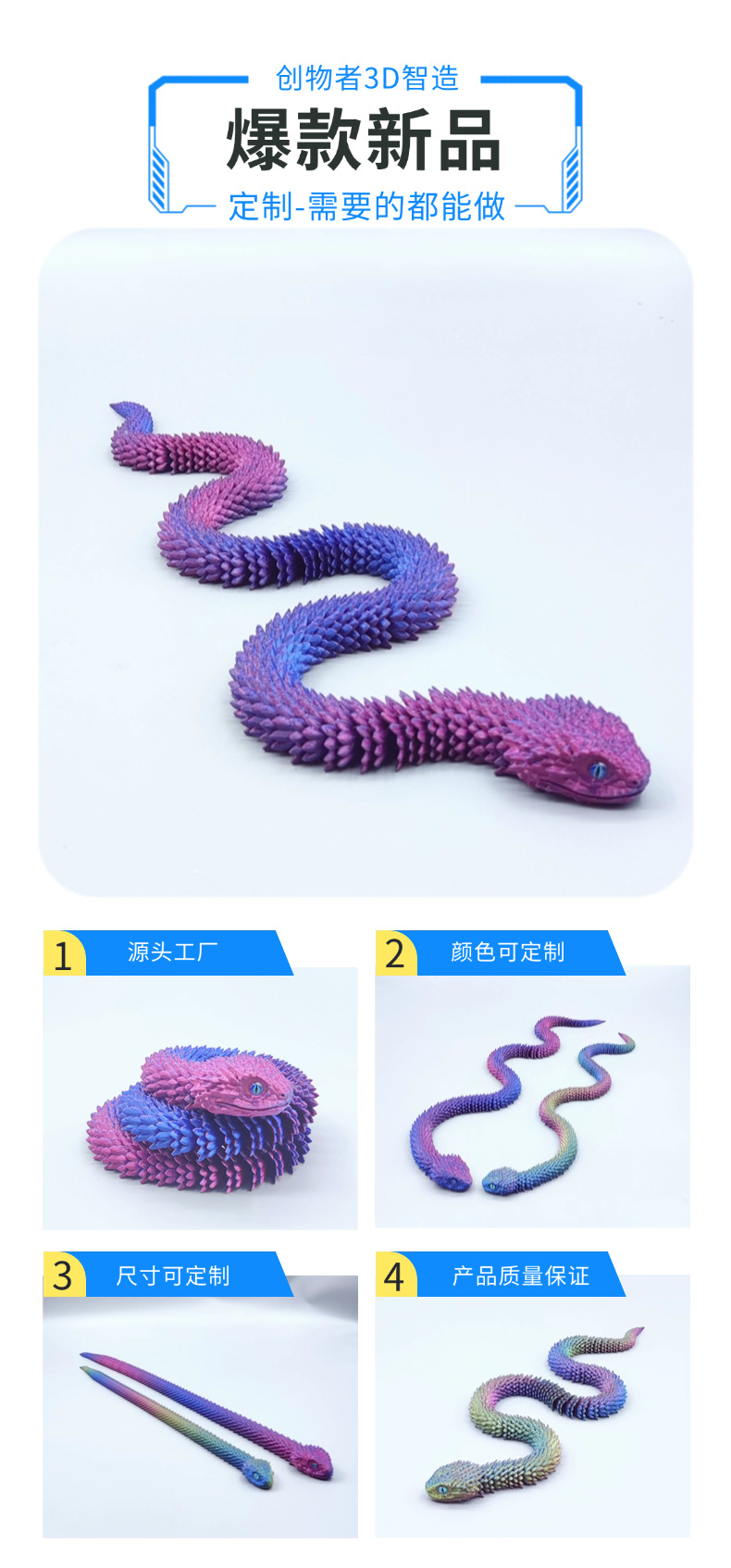 국경 3D 인쇄 바이퍼 장식품 공예 그물 붉은 창조적 인 선물 시뮬레이션 뱀 모델 손으로 만든 장난감 도매스토어 가기