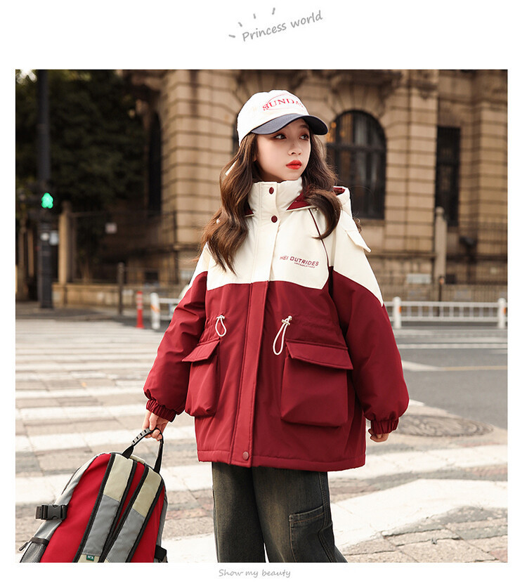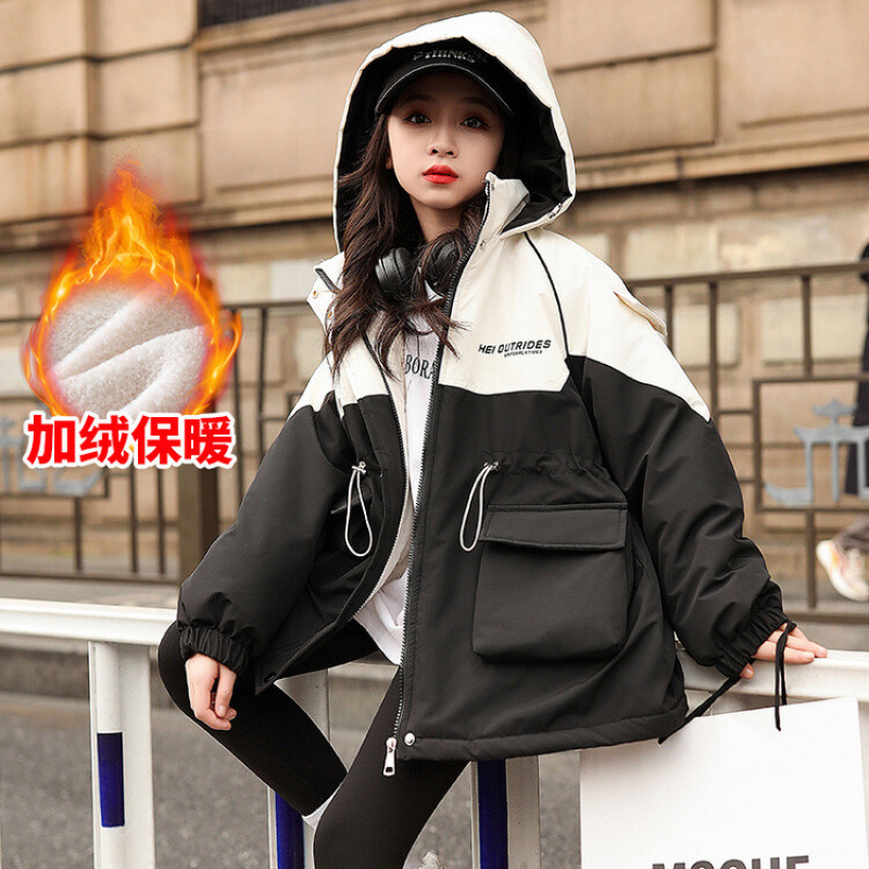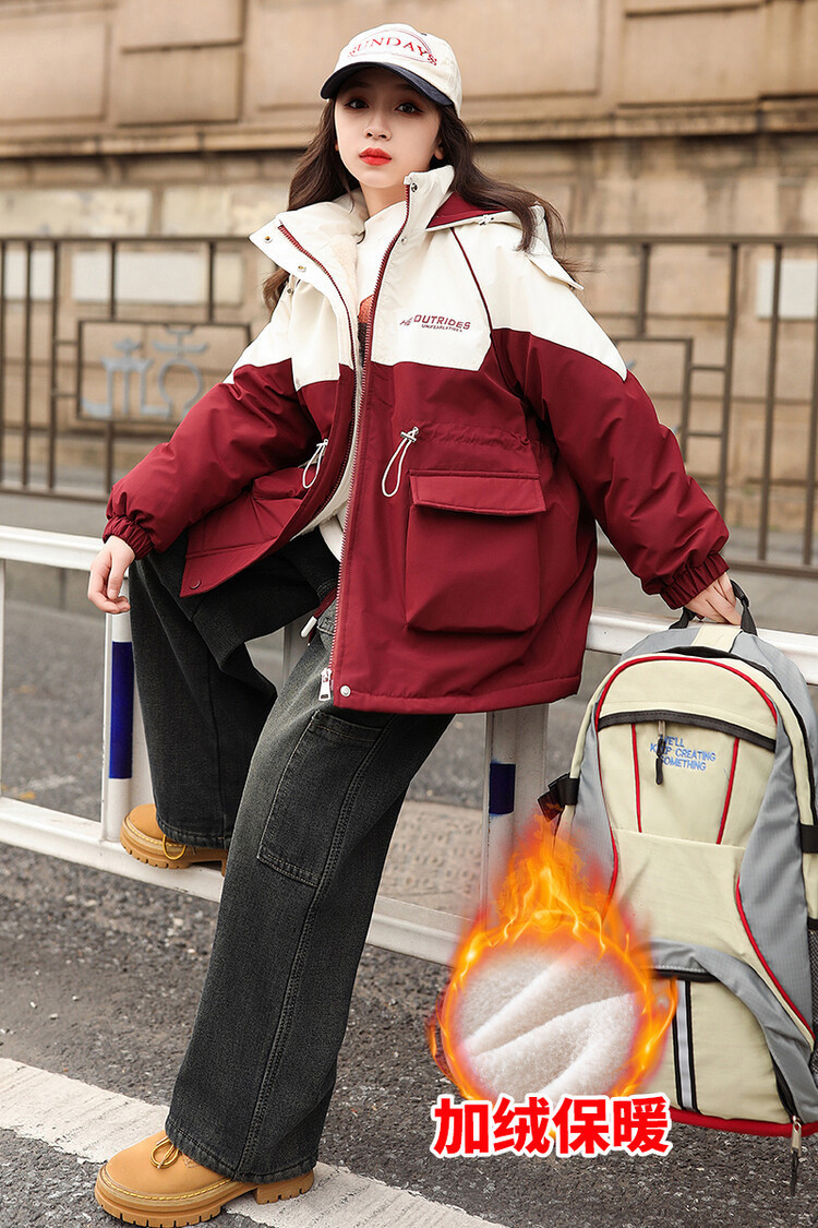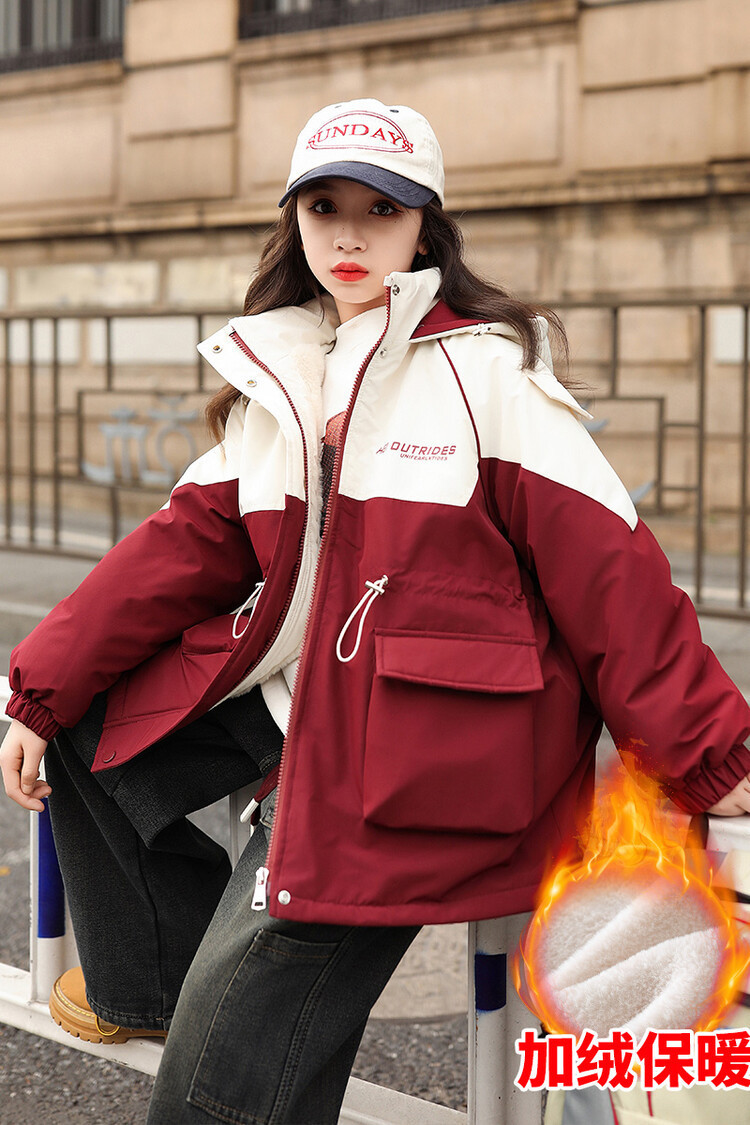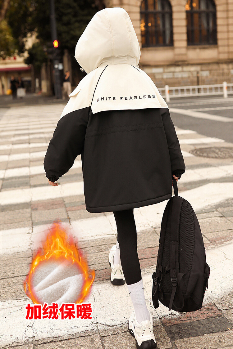 한국식 후드형 중장년 여중생 · 여아용 기모 러스크옷 5 ∼ 15 세