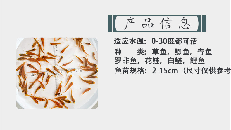 • 3~5cm의 사육용 아기 물고기 200마리에 10% 손실 방지 보너스가 제공됩니다.