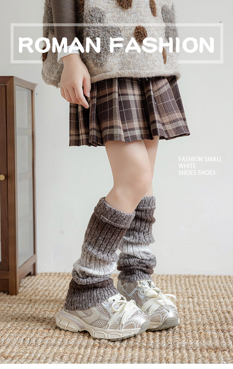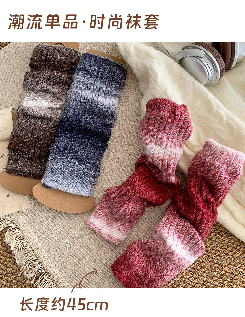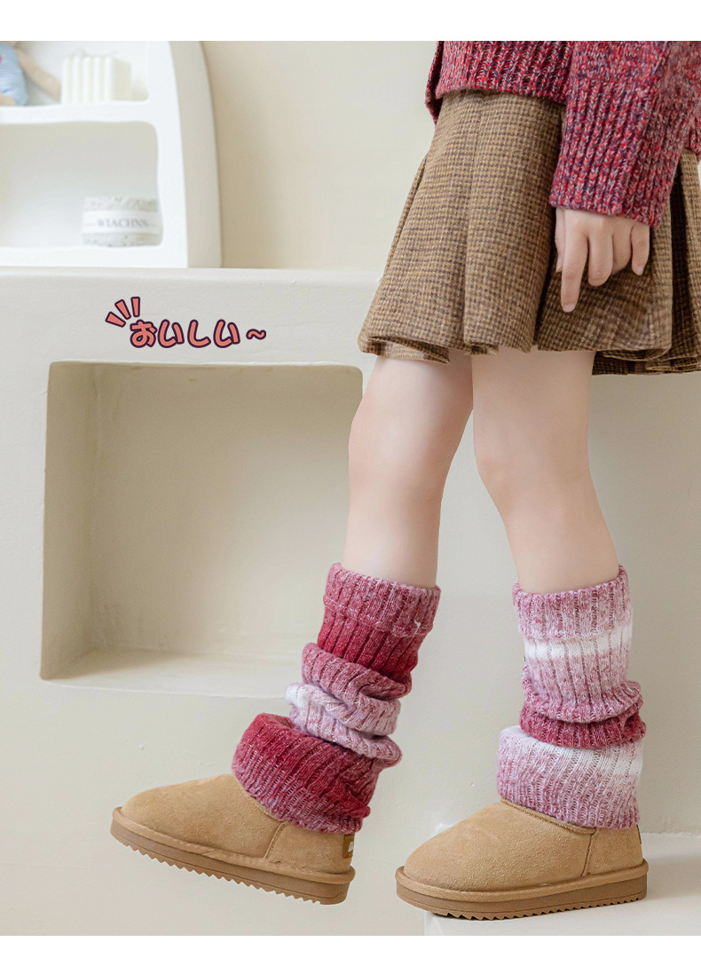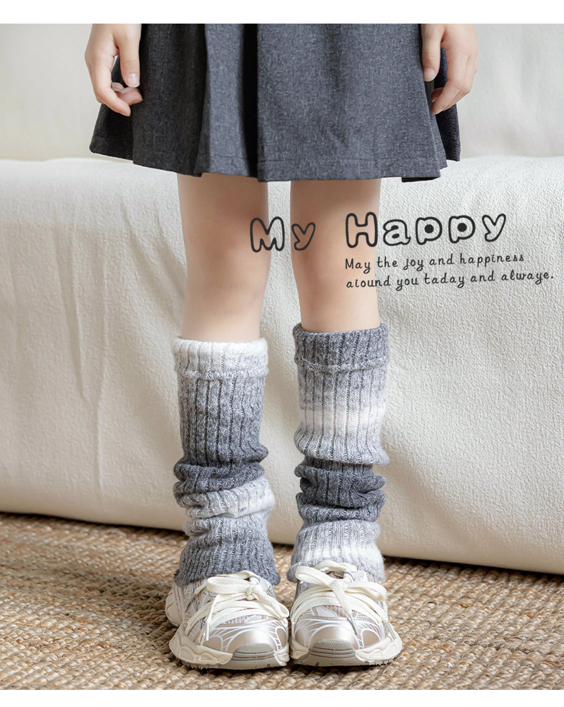 소녀 양말 가을과 겨울 그라디언트 두꺼운 긴 다리 커버 수직 스트립 따뜻한 소녀 서양식 대비 색상 더미