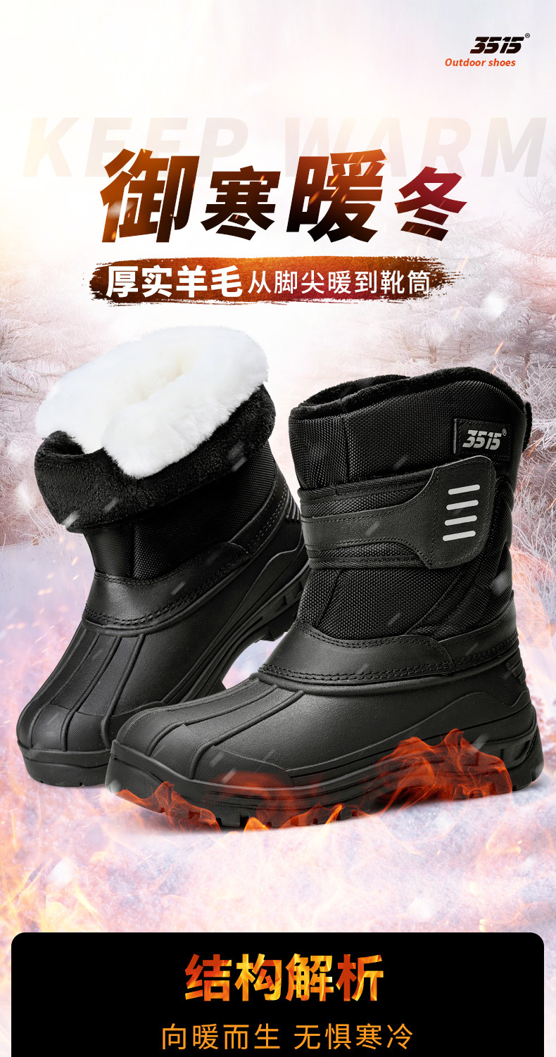 Jihua 3515 강한 사람들의 겨울 따뜻한 두꺼운 기모 양모 부츠 미끄럼 방지 동북-30 도 방탄 부츠스토어 가기