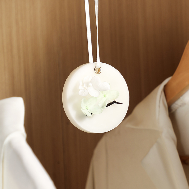 Gardenia 라운드 아로마 테라피 왁스 조각 옷장 향수 펜던트 아로마 테라피 조각 공기 신선한 아로마 테라피 동반 선물