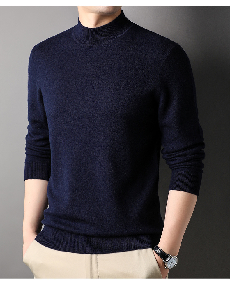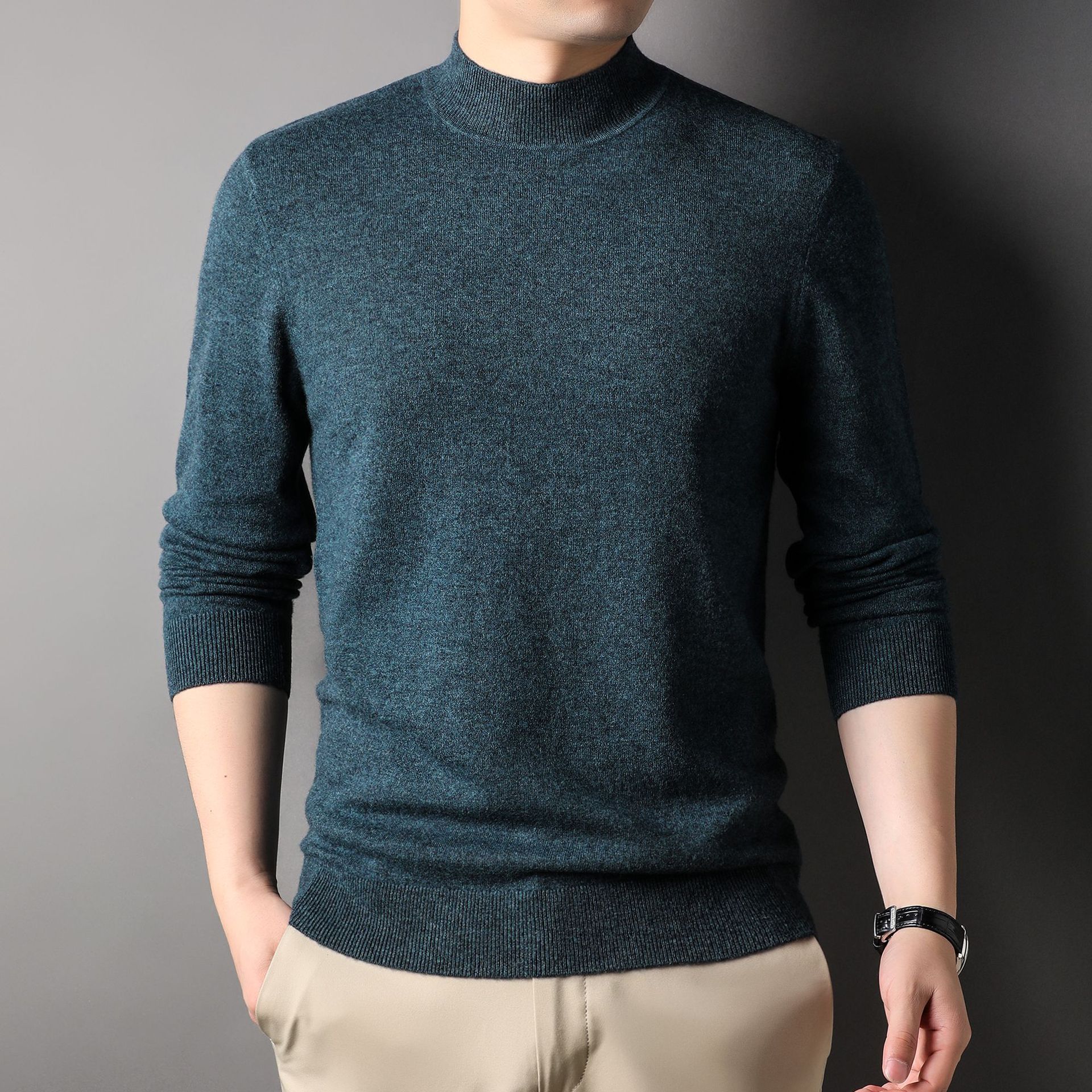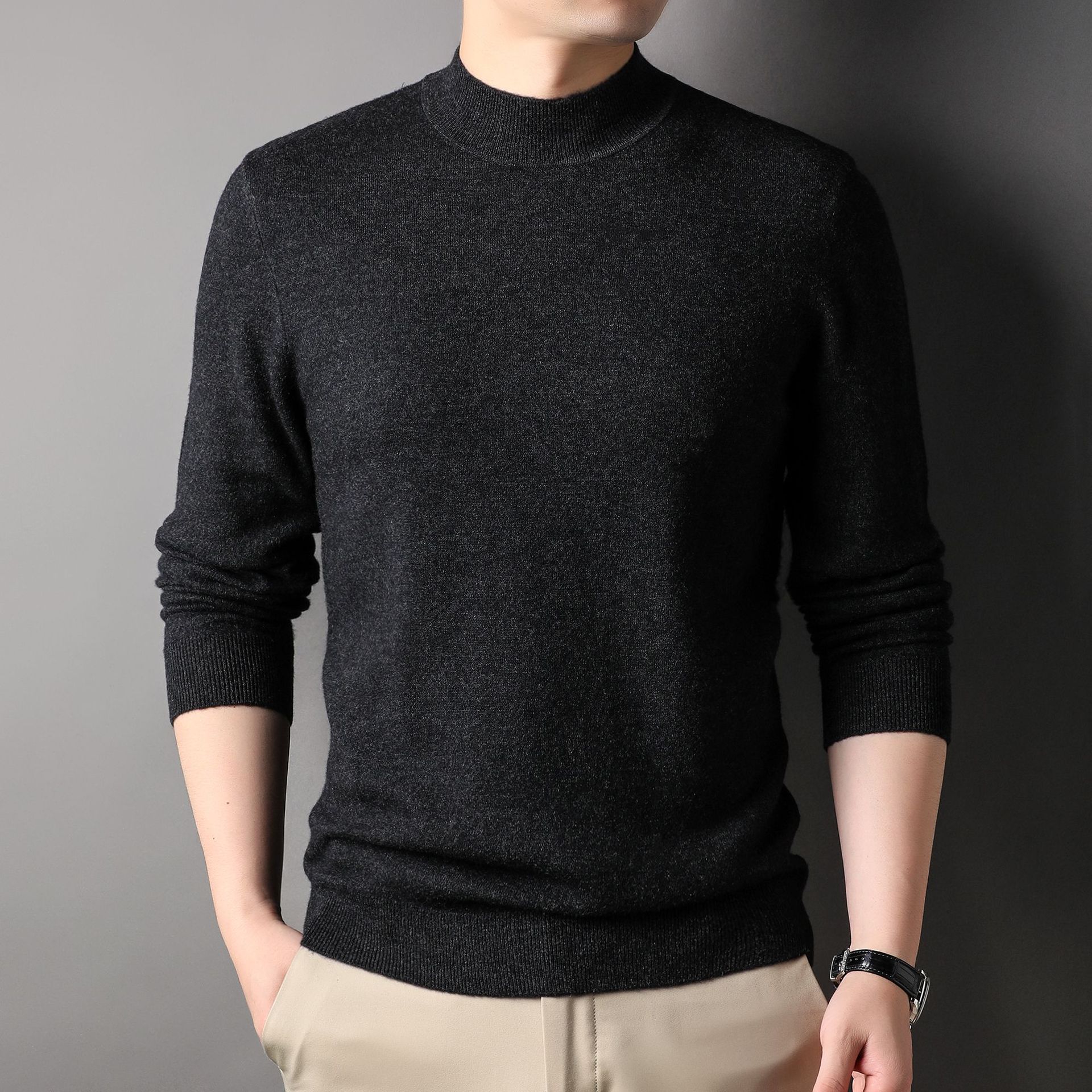 남성용 순수 양모 바닥 셔츠 가을과 겨울 새로운 단색 세미 하이 칼라 모든 양모 스웨터 남성 최고 도매스토어 가기