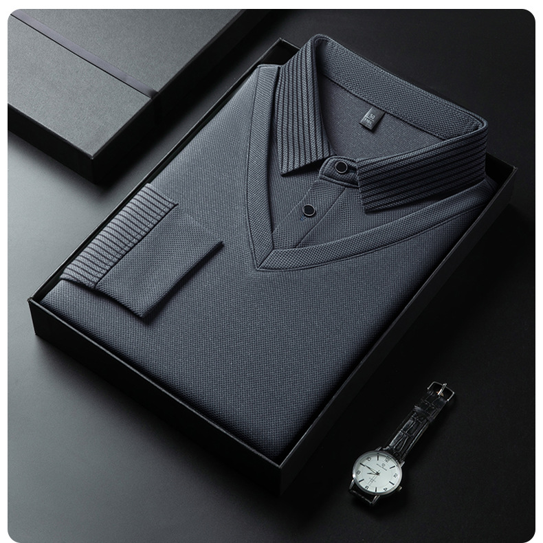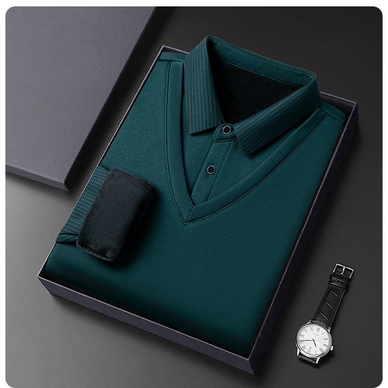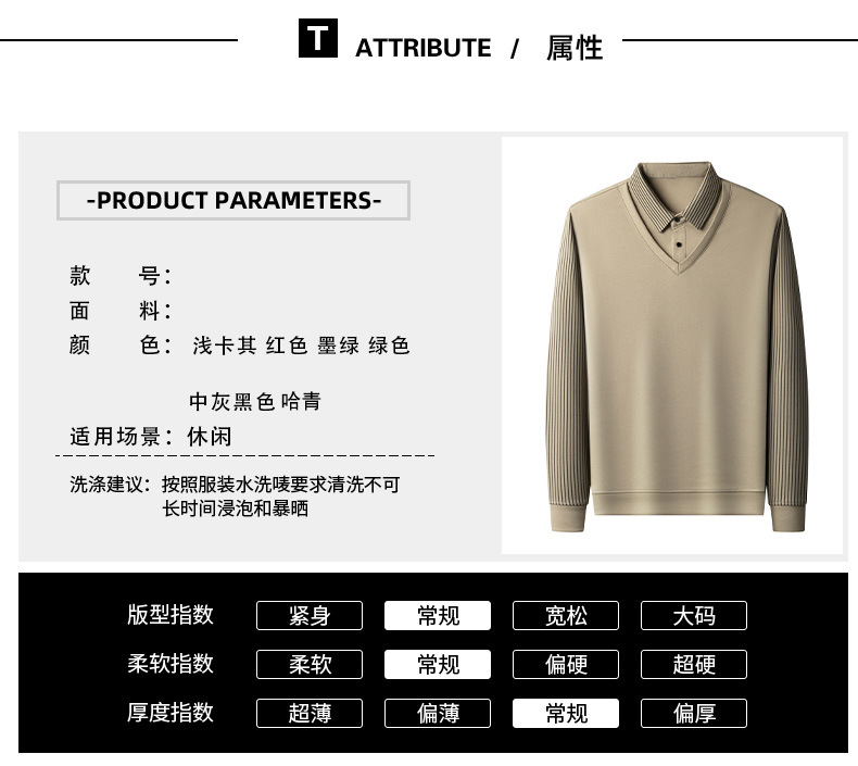 남자 가짜 투피스 긴팔 티셔츠 남자 2024 봄과 가을 새로운 중년 아빠 셔츠 칼라 캐주얼 베이스 셔츠 남자스토어 가기