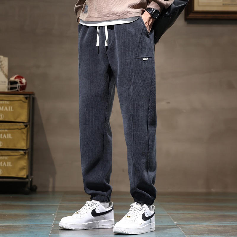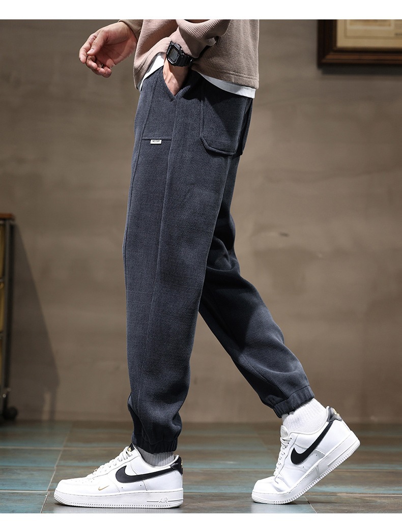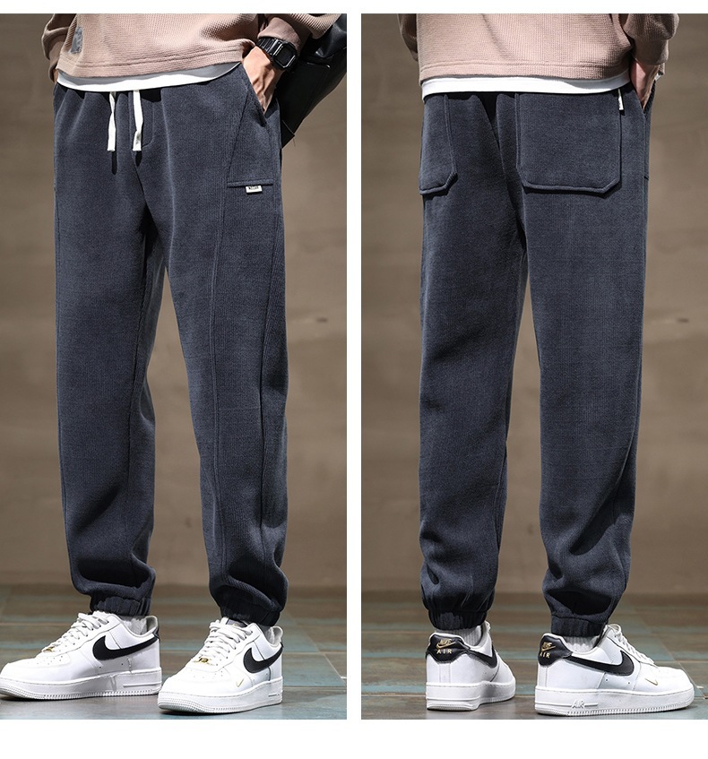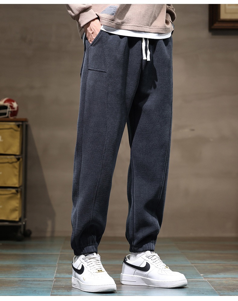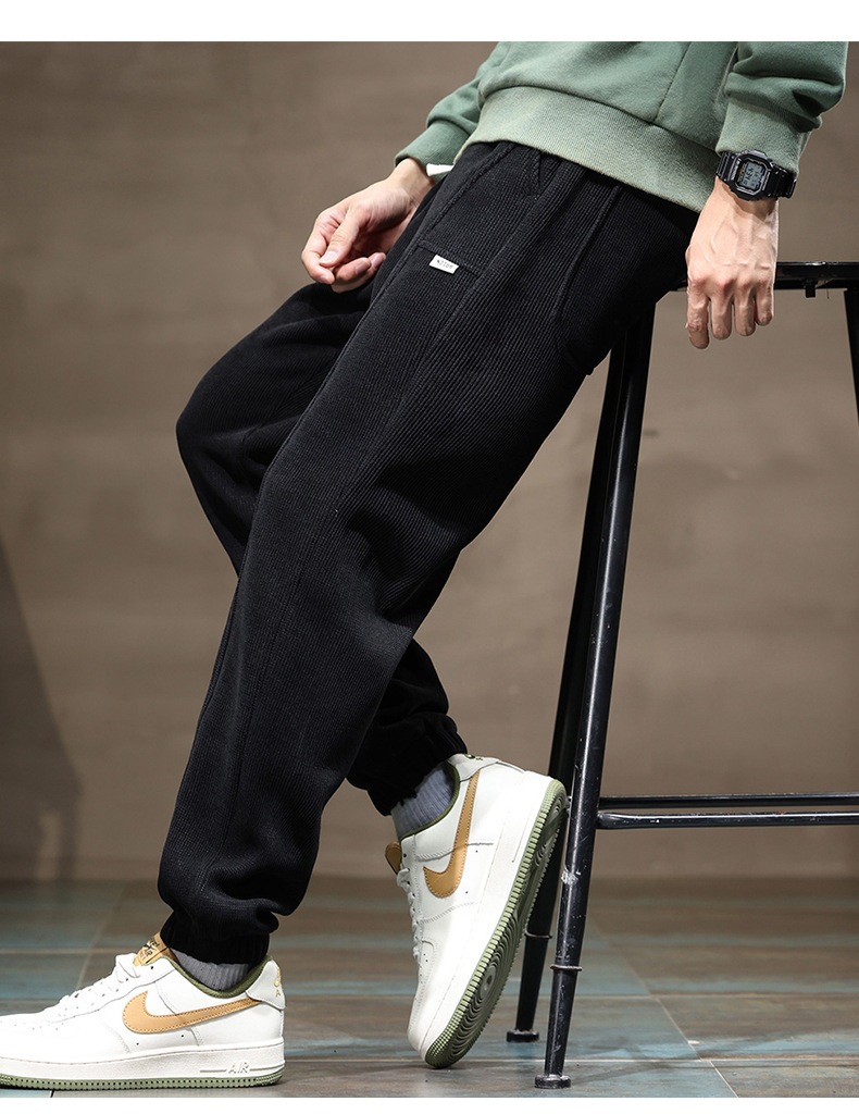 코듀로이 스웨트 팬츠 남자 2024 봄과 가을 새로운 느슨한 스포츠 할렌 바지 남성용 유행 캐주얼 긴 바지