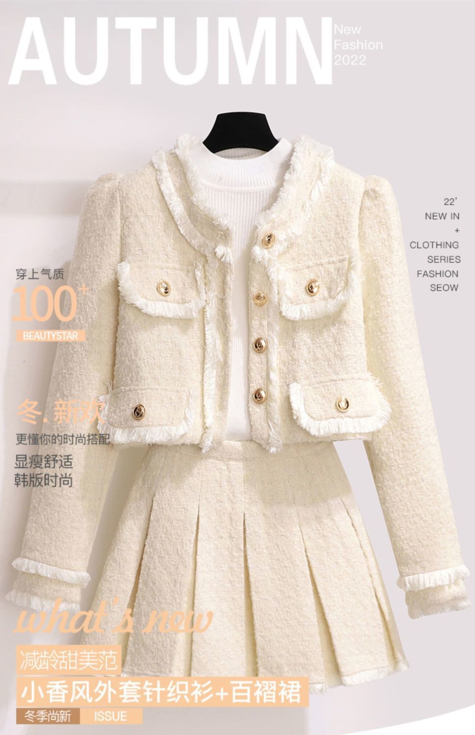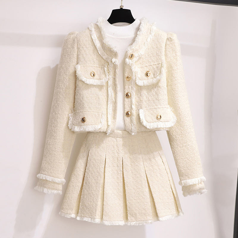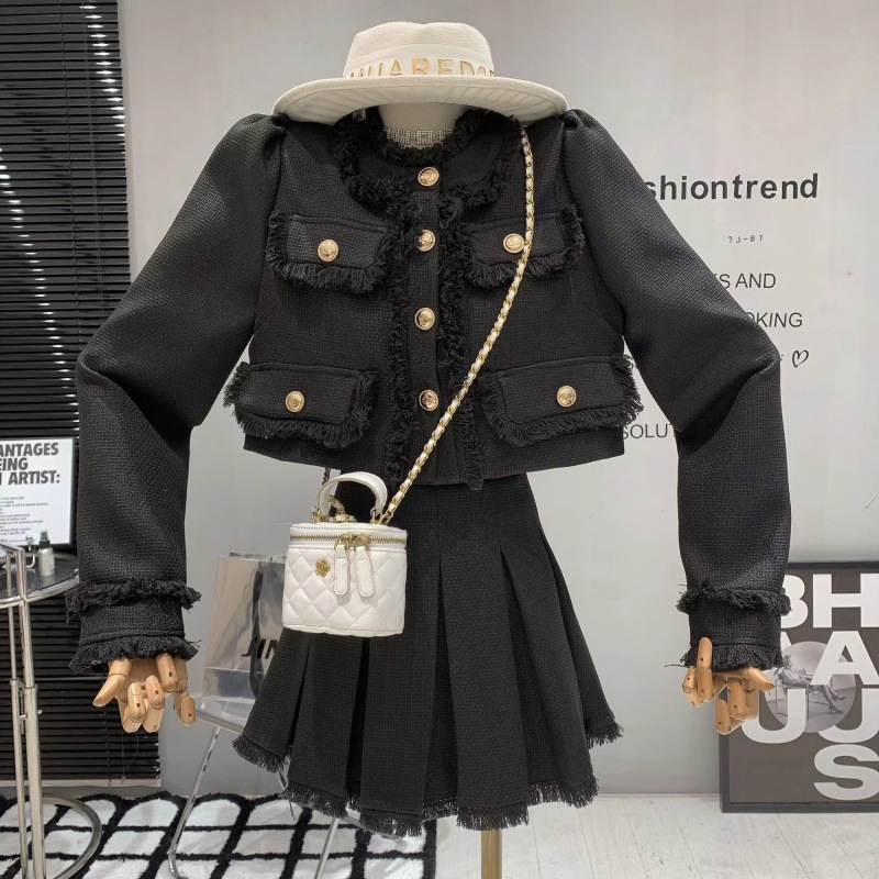 작은 샤넬 스타일 원피스 여성의 가을과 겨울 2024 새로운 핫 스타일 우아한 작은 스타일 작은 원피스 투피스 세트스토어 가기