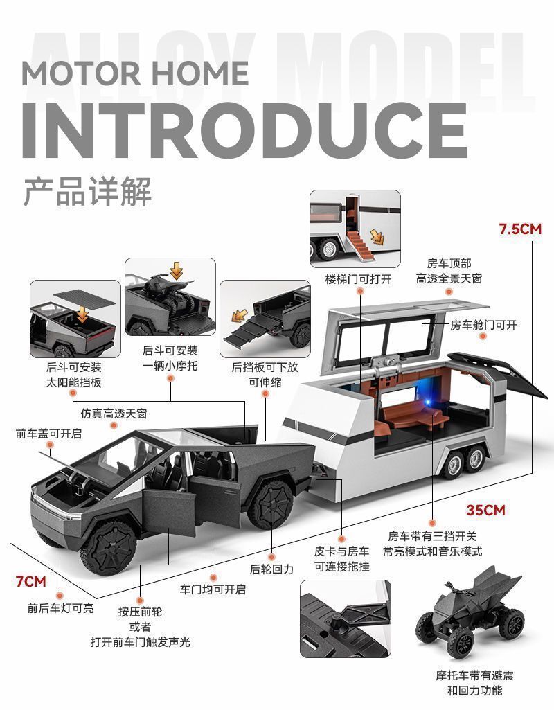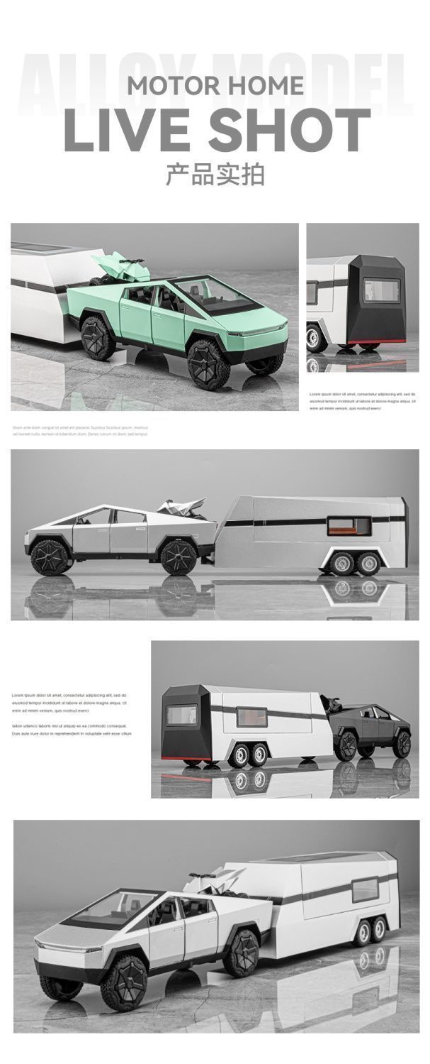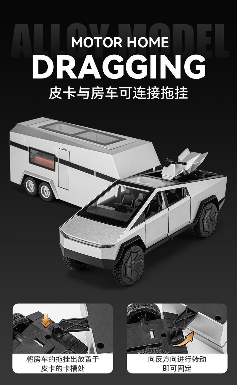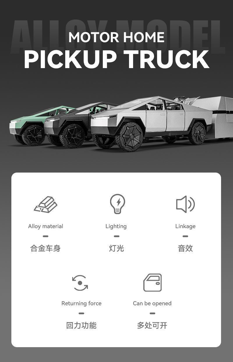 크로스보더 사이버 픽업트럭 RV 시뮬레이션 컬렉션 어린이용 합금 자동차 모형 소년 장난감 자동차 장식품 새 선물