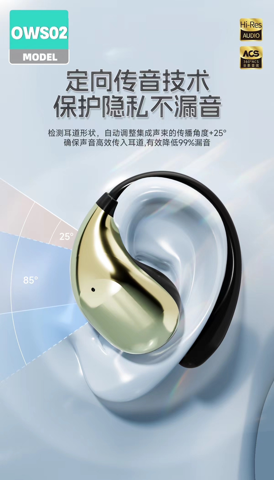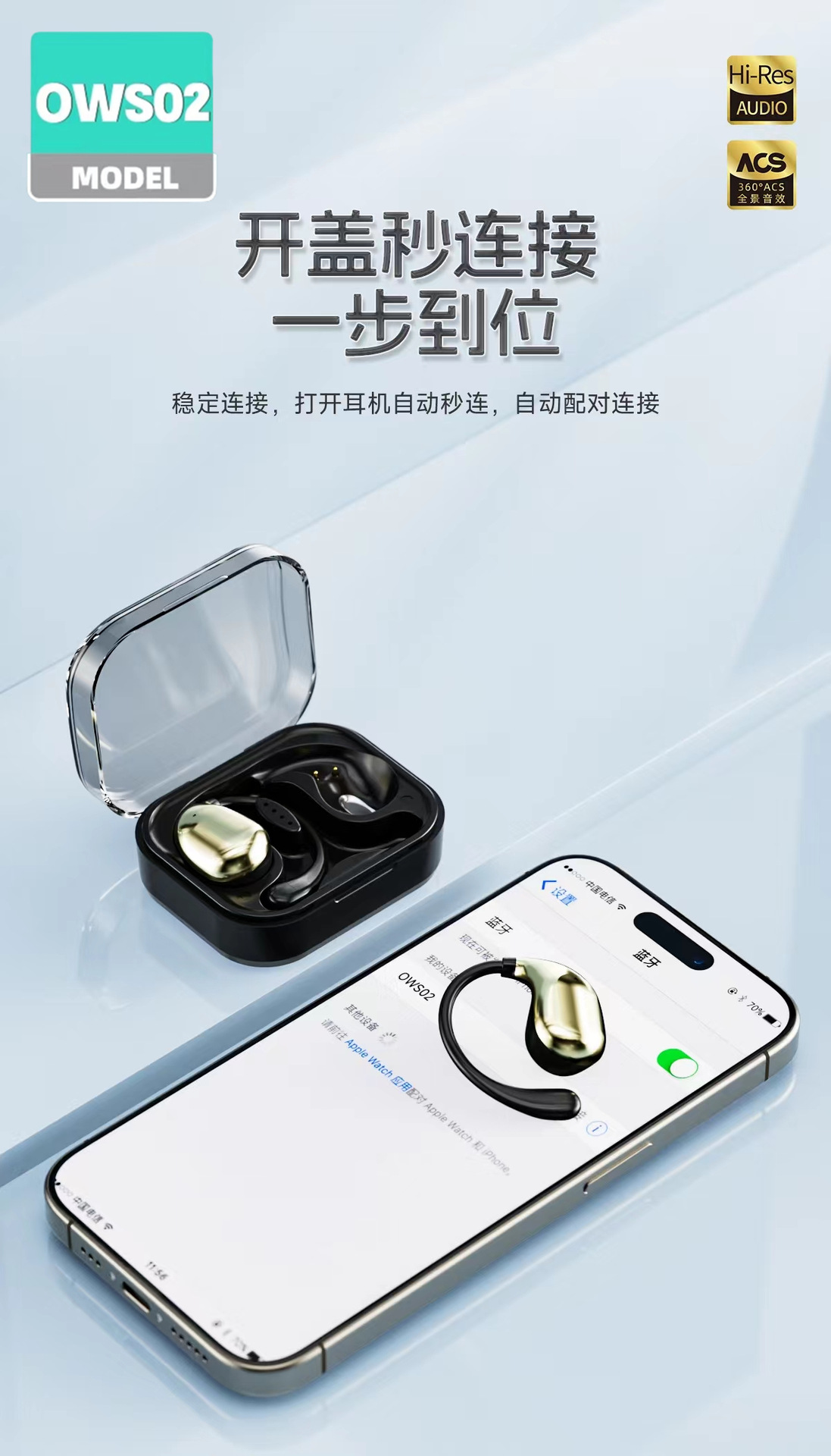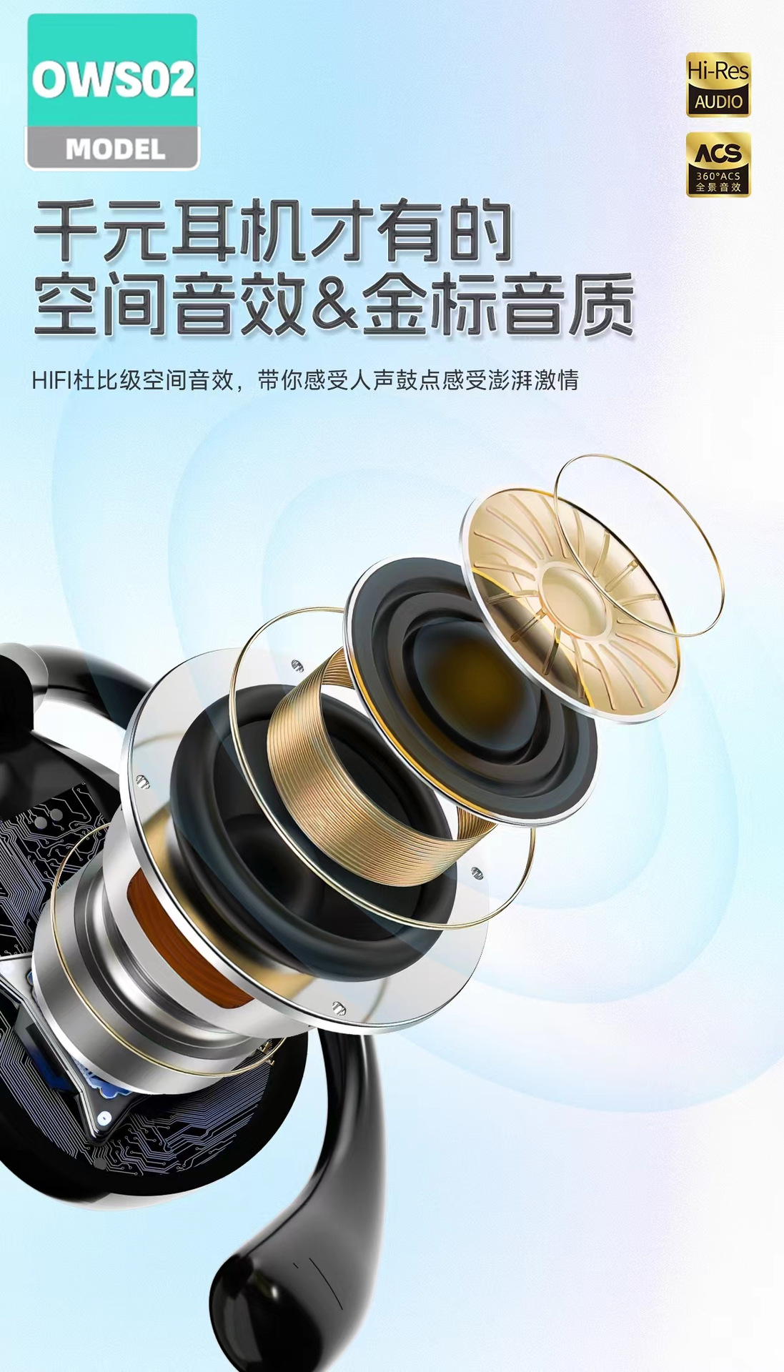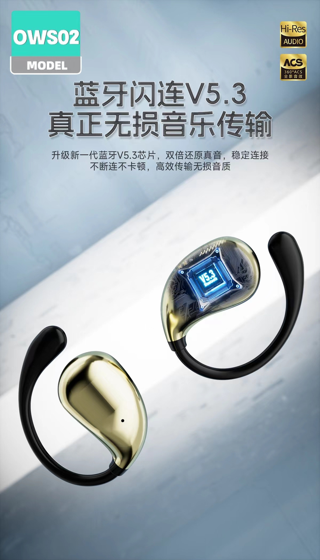 OWS02 귀 매달린 무선 블루투스 헤드셋 귀 오픈 실행 긴 내구성 블루투스 도매스토어 가기