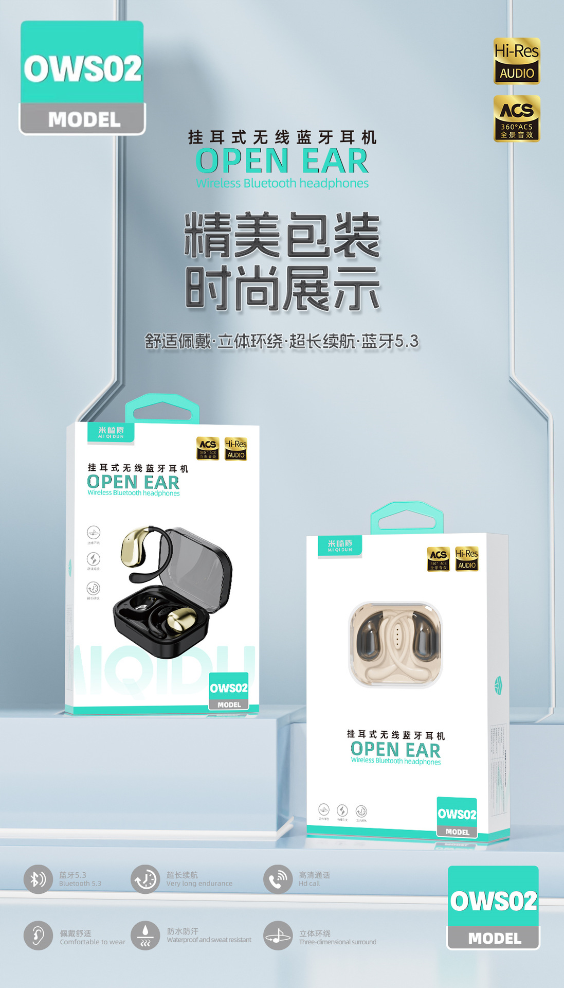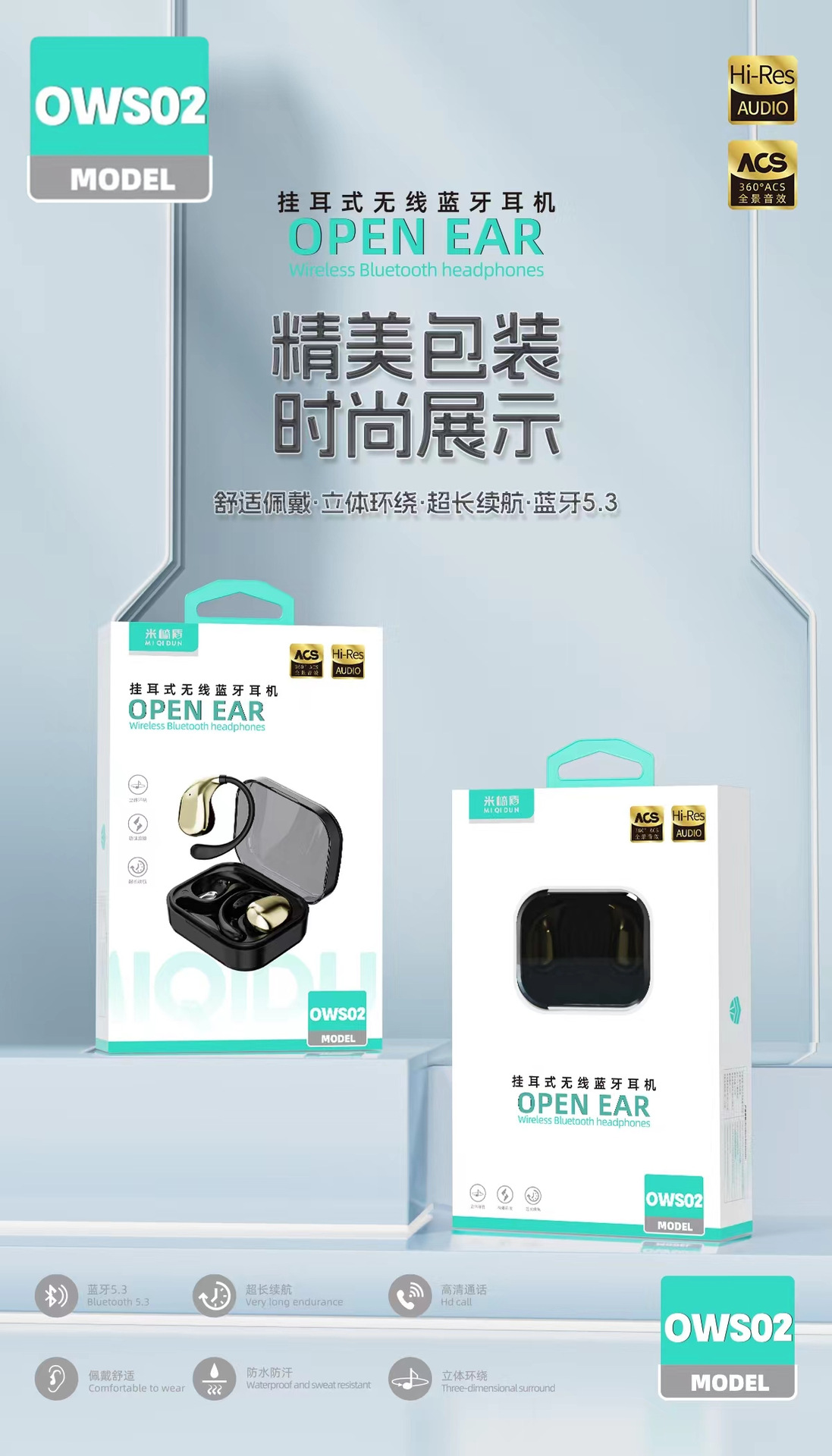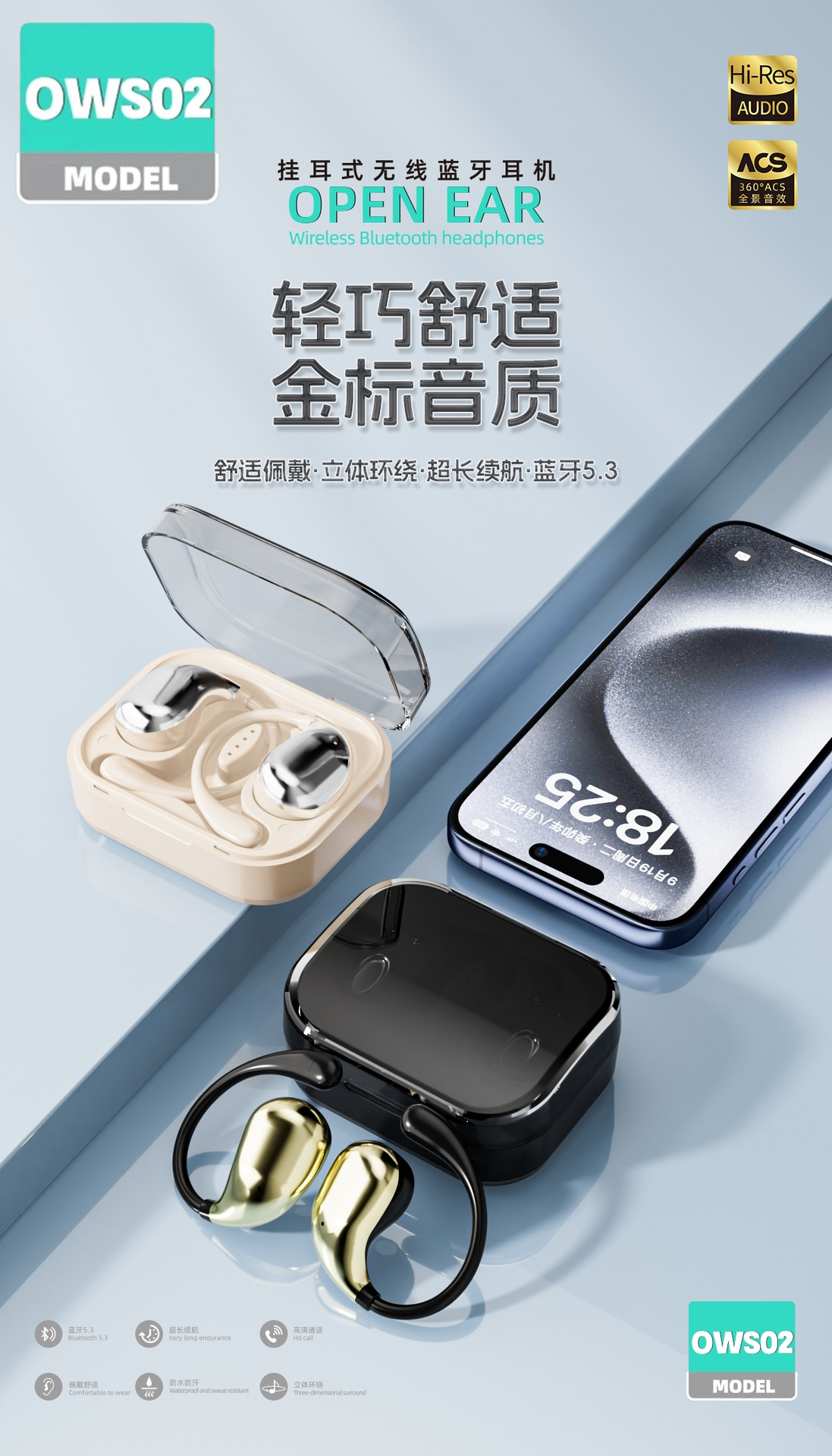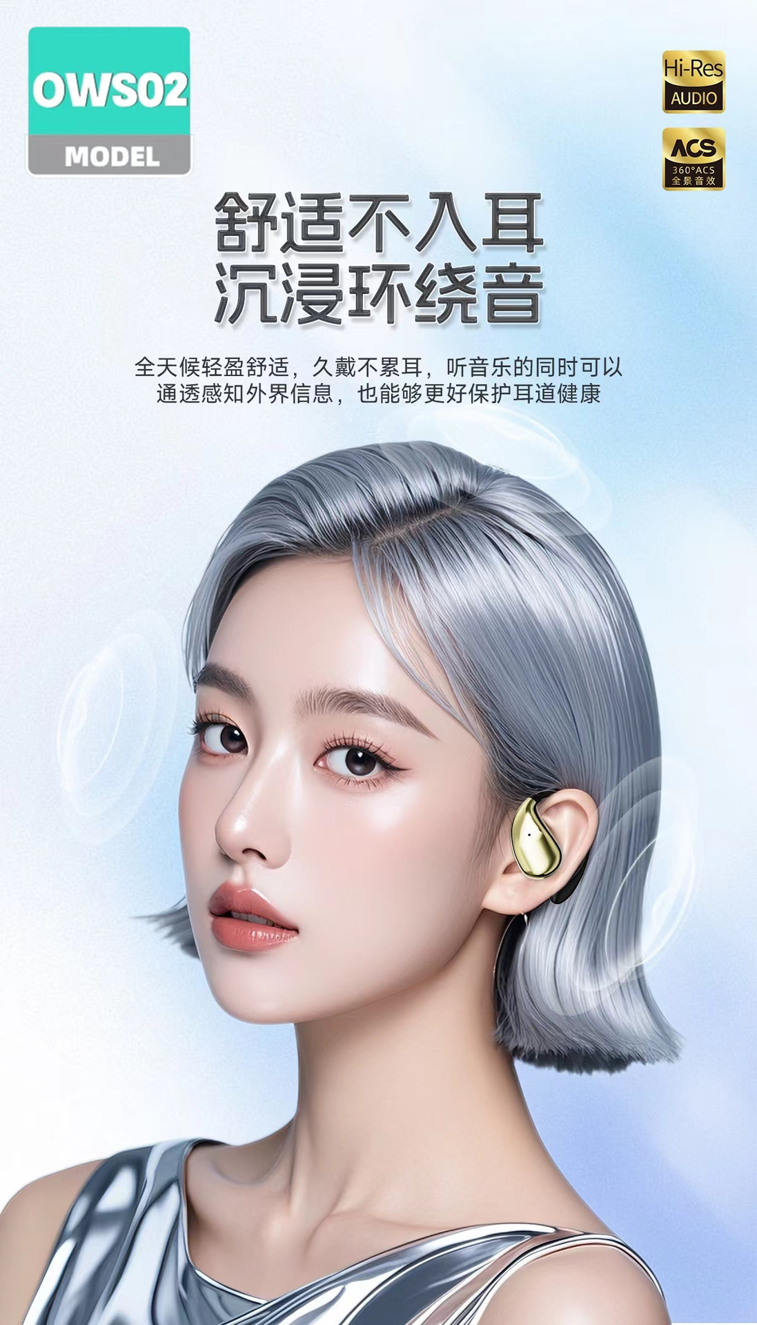 OWS02 귀 매달린 무선 블루투스 헤드셋 귀 오픈 실행 긴 내구성 블루투스 도매스토어 가기