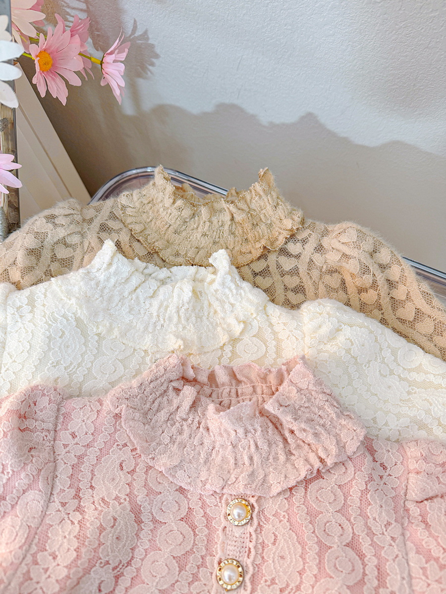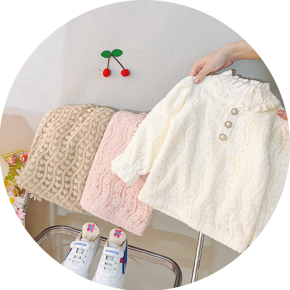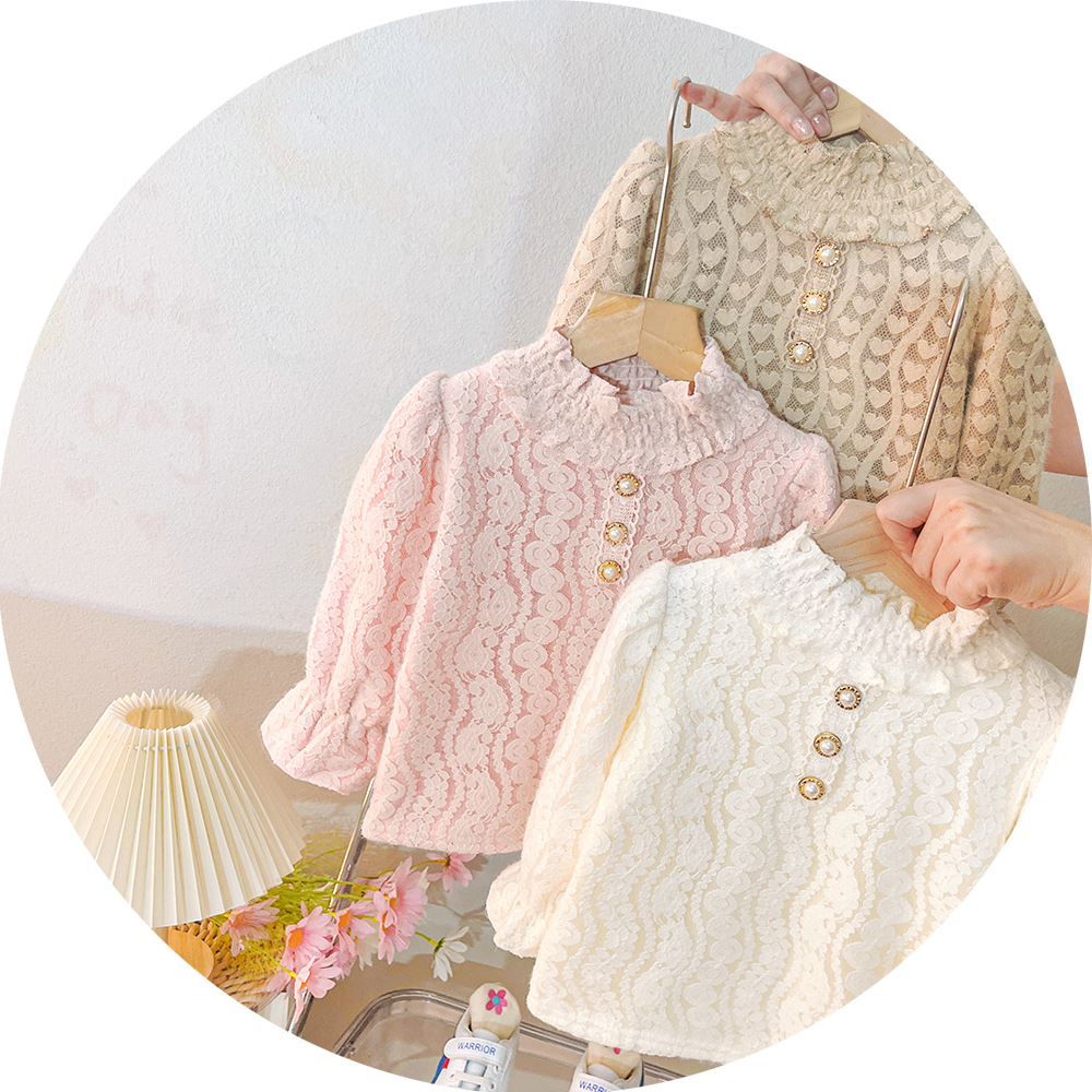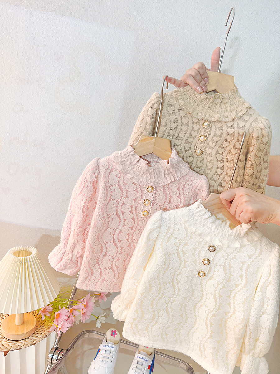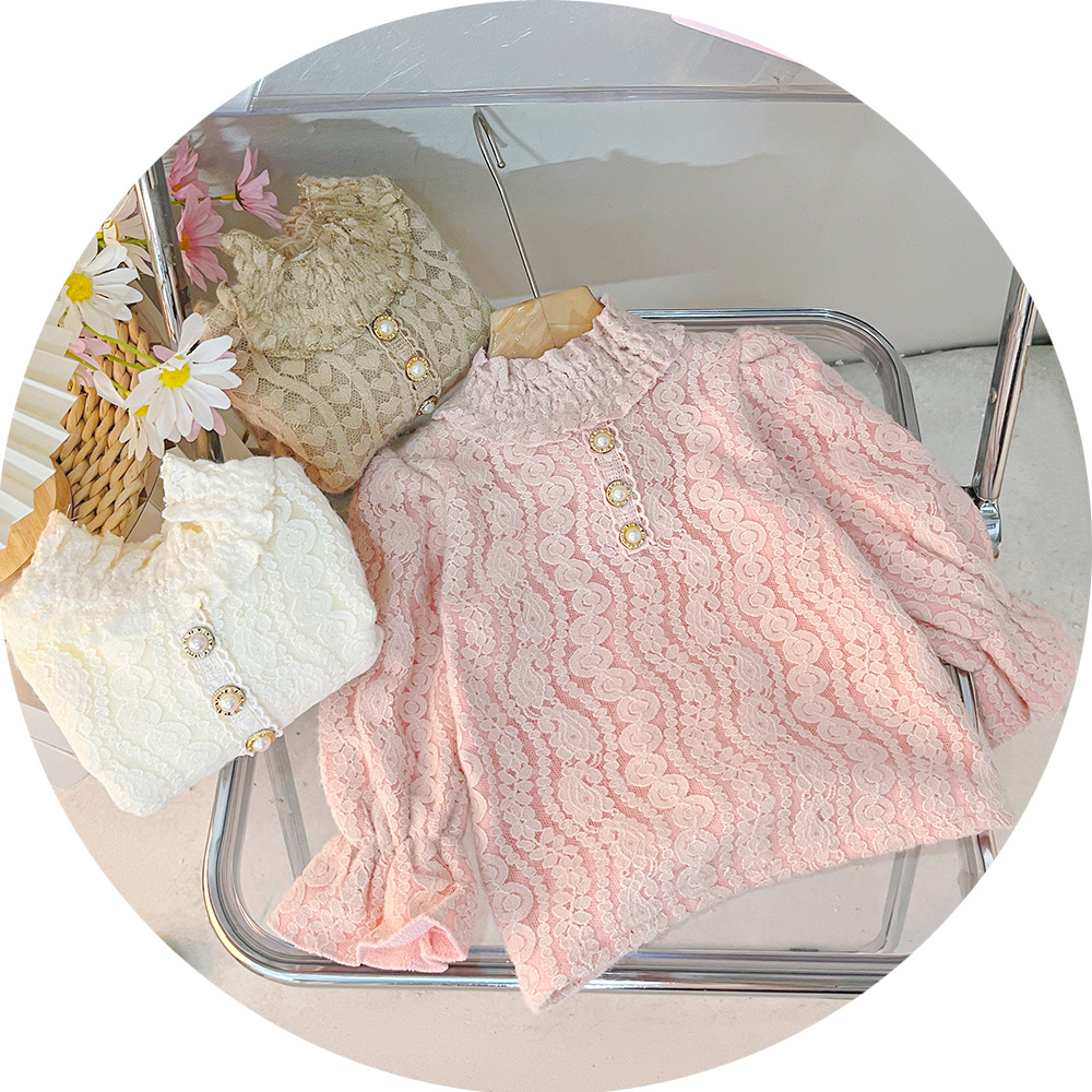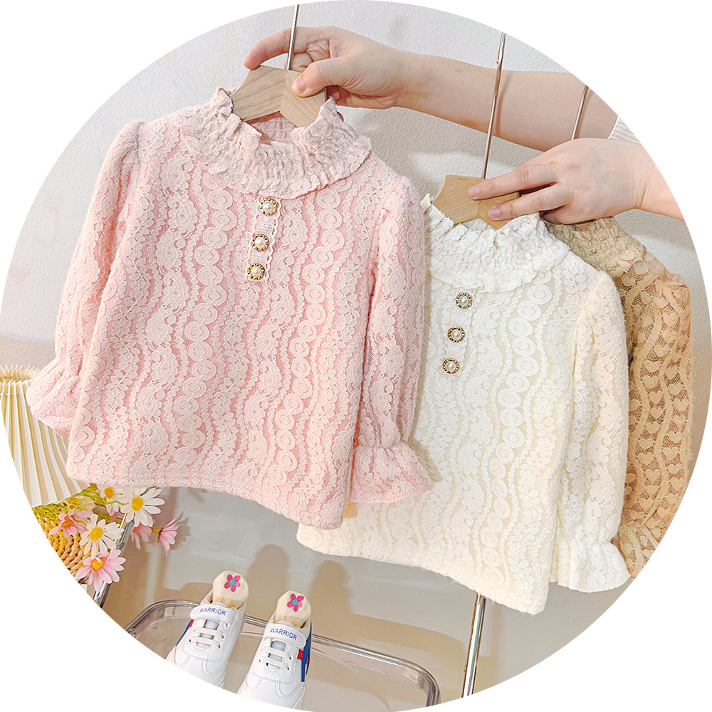 여자 레이스베이스 셔츠 가을과 겨울 긴팔 티셔츠 새로운 어린이 서양식 패션 소녀의 공주 스타일 탑