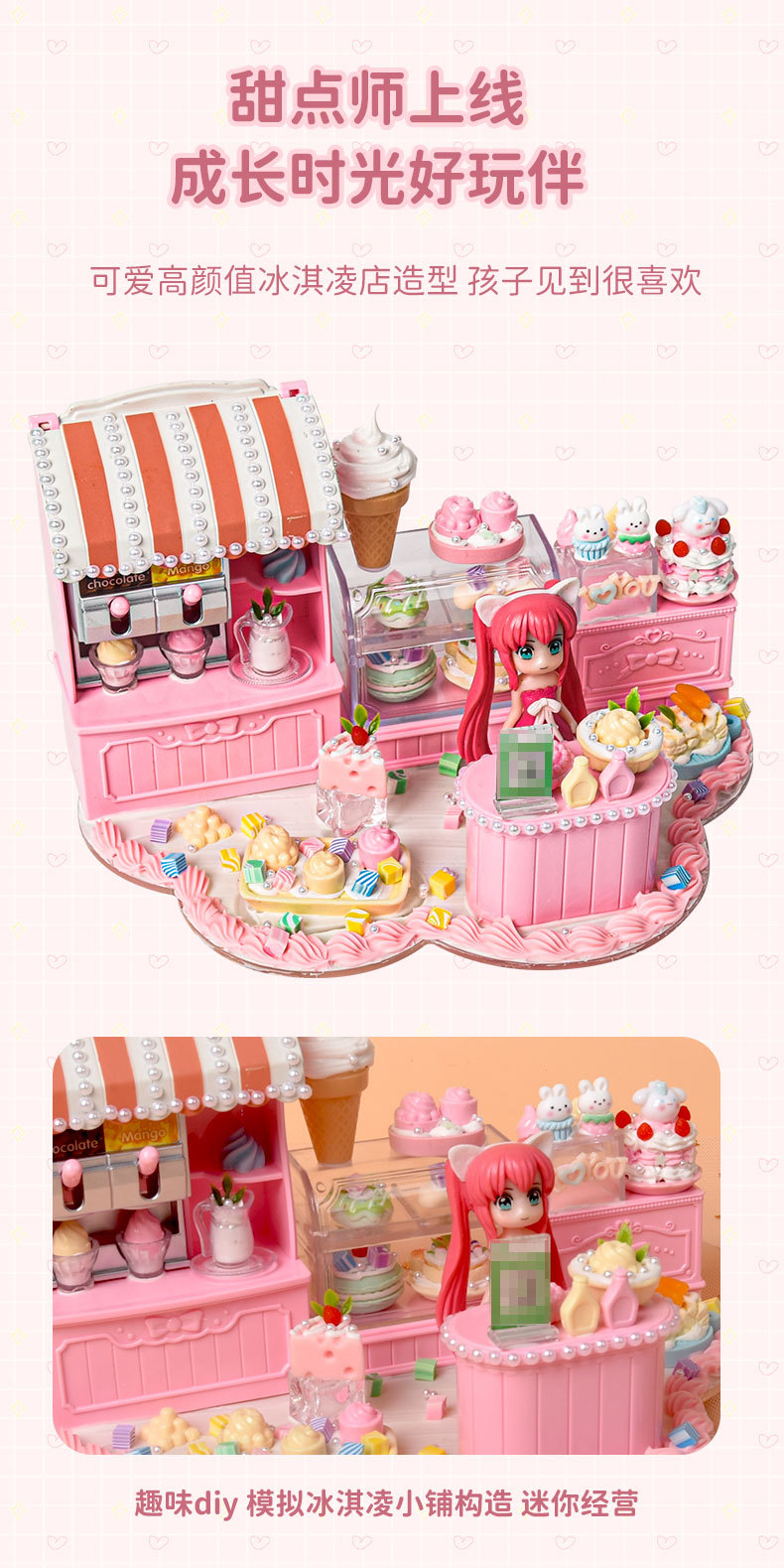어린이 놀이 집 시뮬레이션 아이스크림 가게 미니 푸드 플레이 여자 DIY 수제 집 조립 교육 장난감스토어 가기