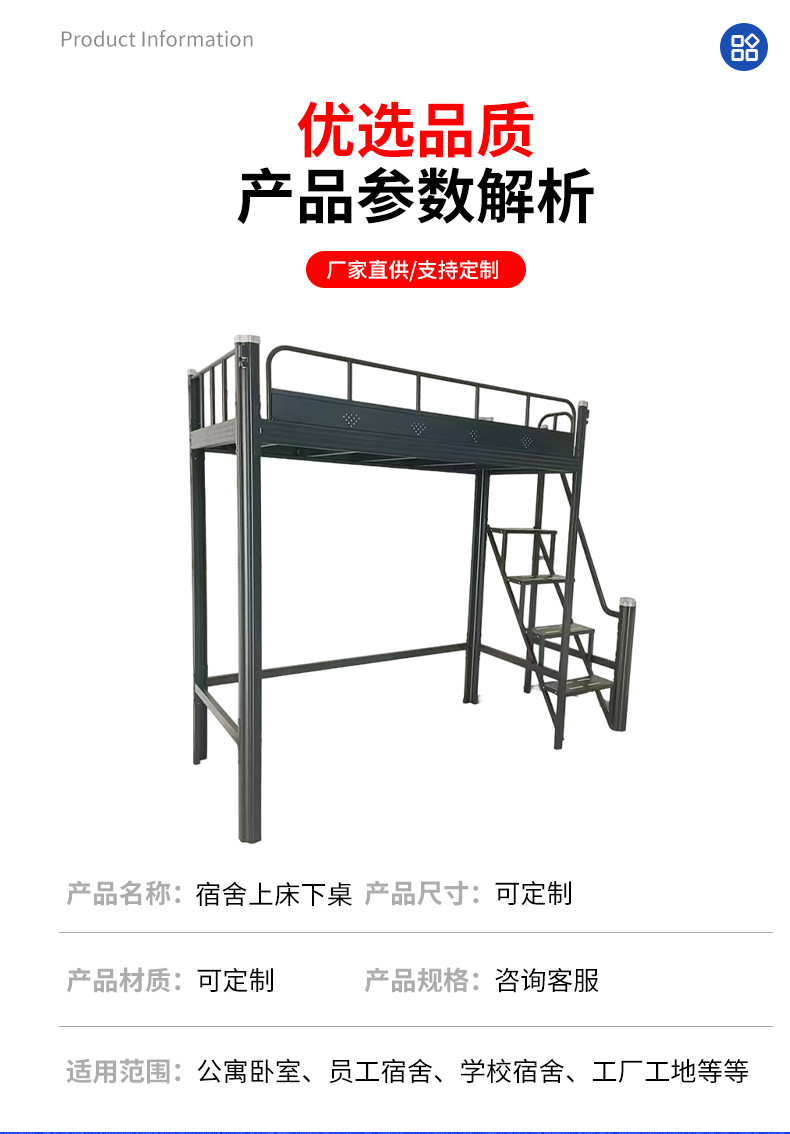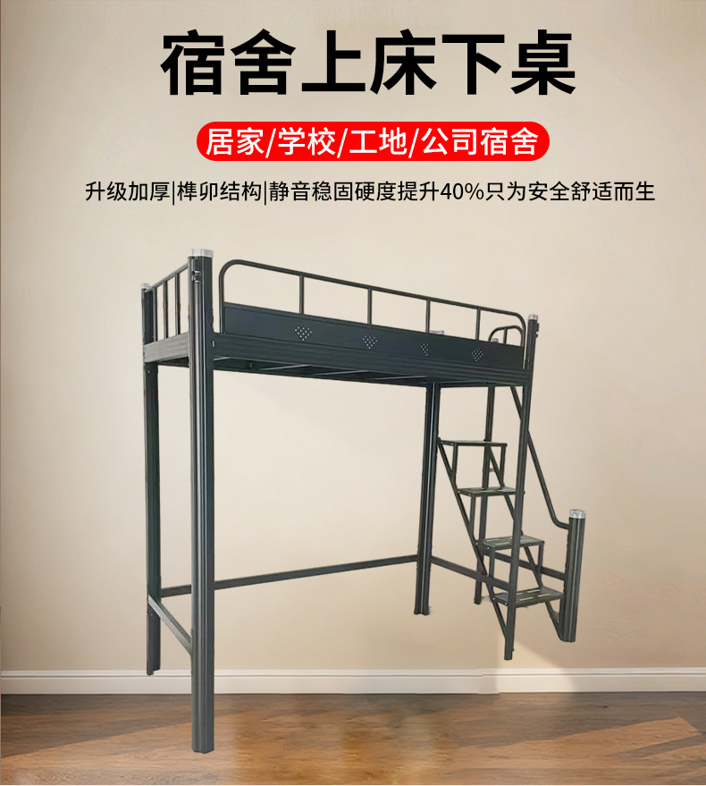침대 위에 책상, 기숙사 아파트 침대, 침실용 바닥 사다리 조합 이층침대, 철제 싱글침대, 대량 구매 시 가격 우대