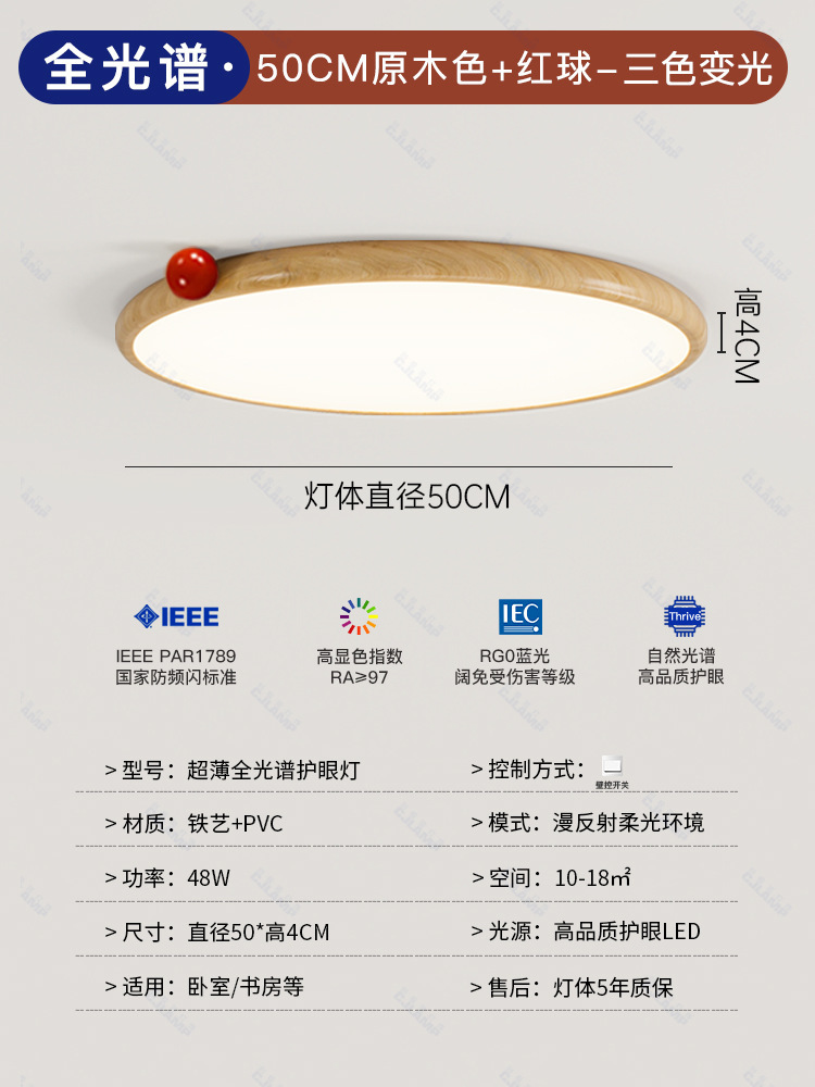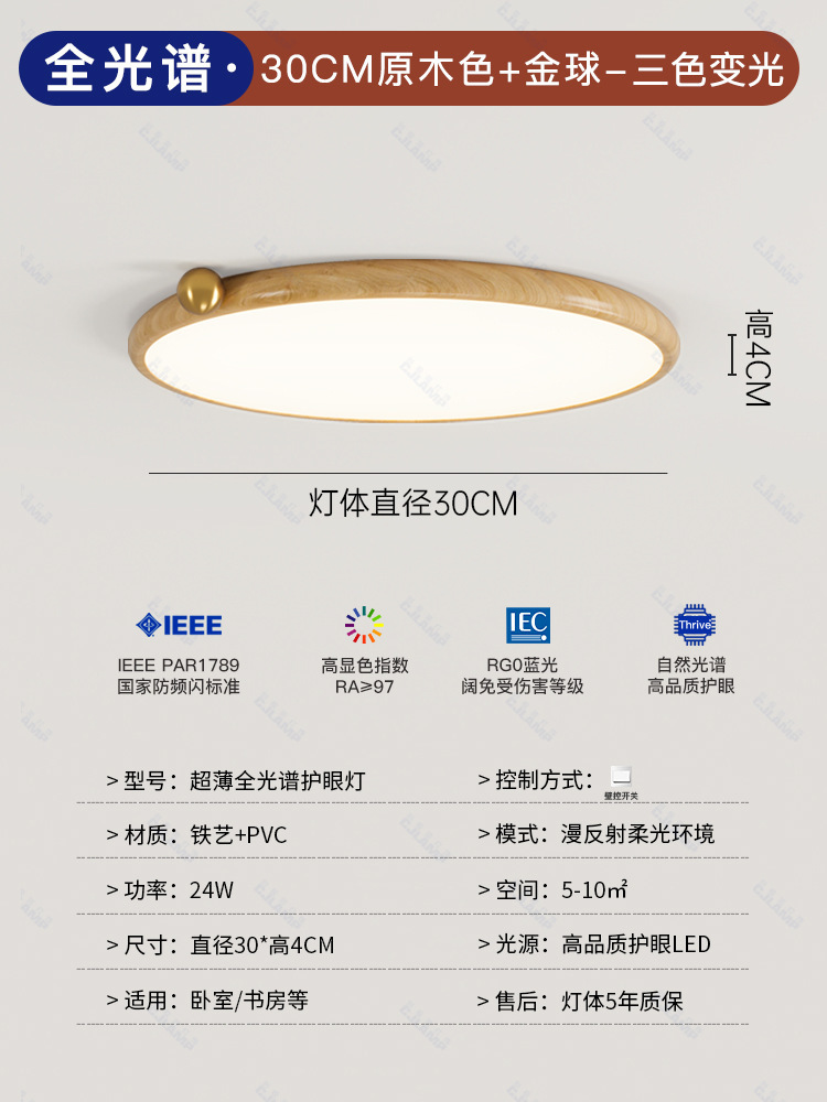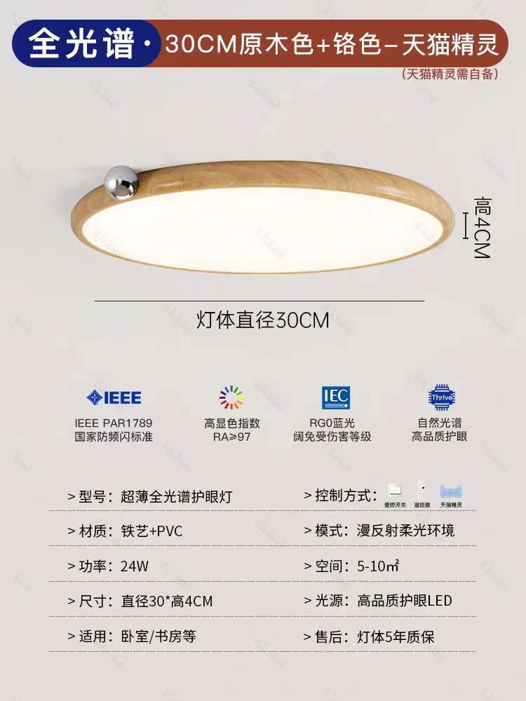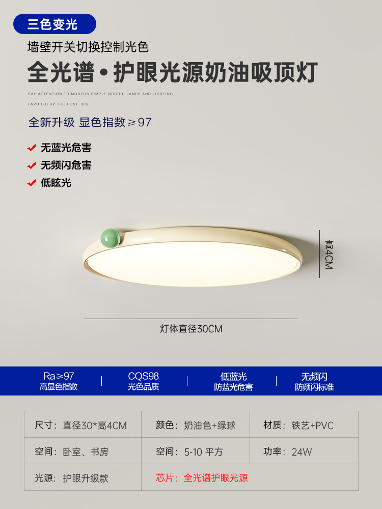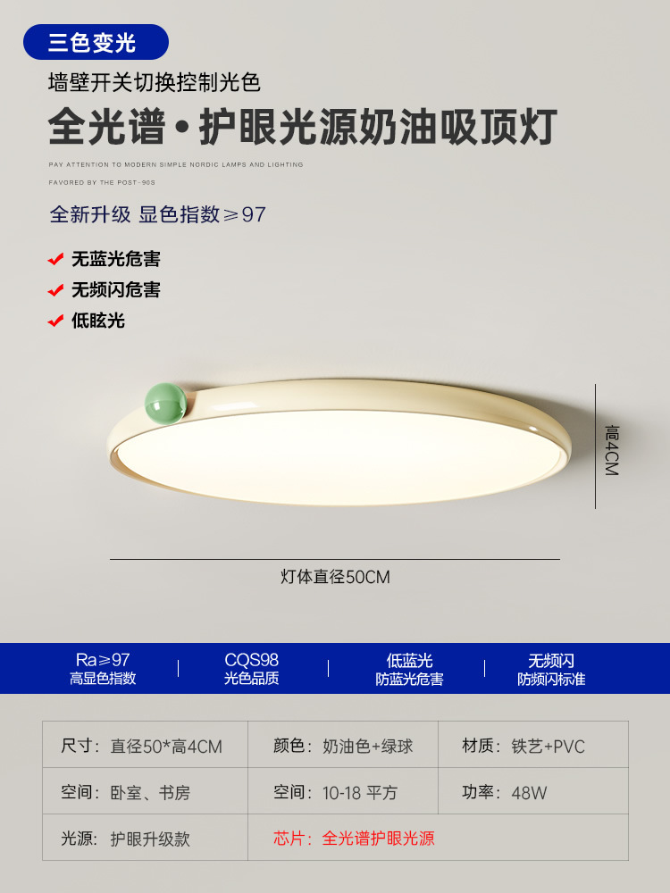 침실 램프 크림 바람 초박형 작은 우유 콩 눈 보호 천장 램프 전체 스펙트럼 간단한 침묵 스타일 마스터 침실 램프스토어 가기