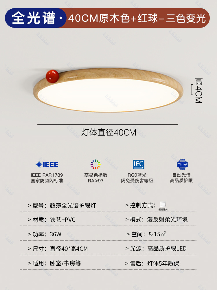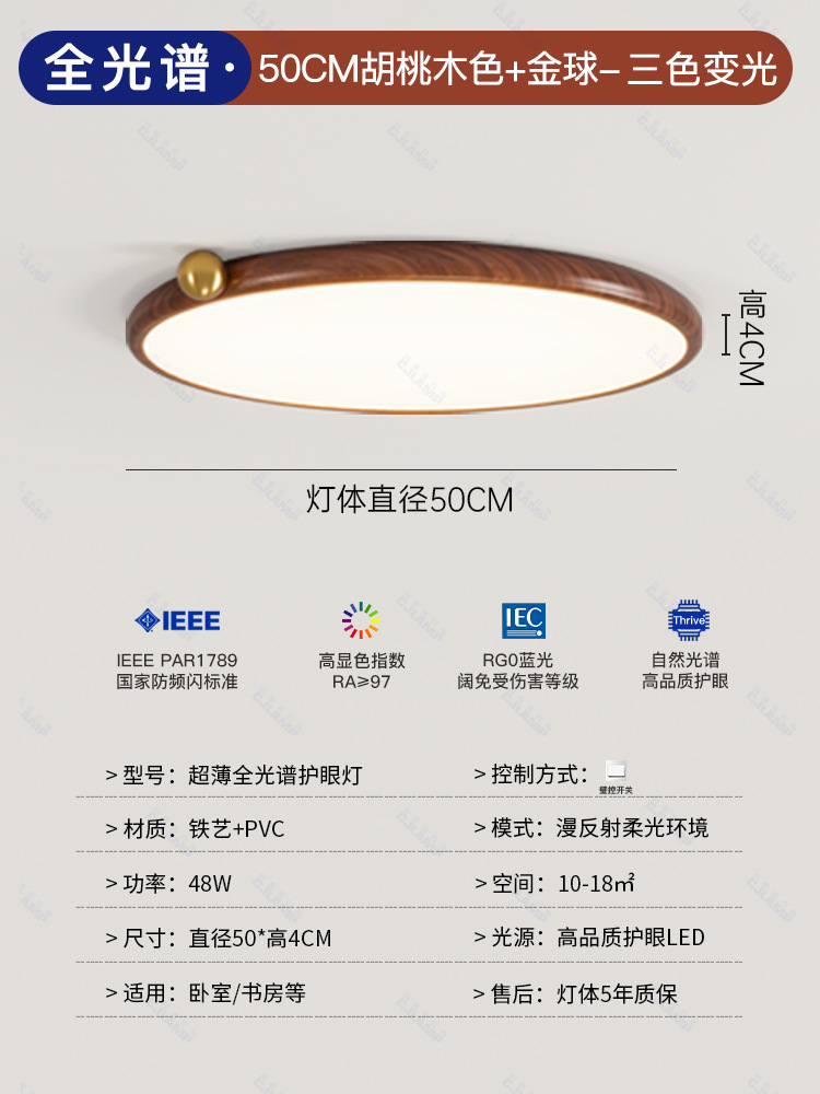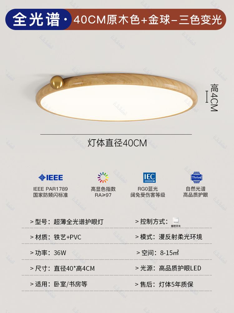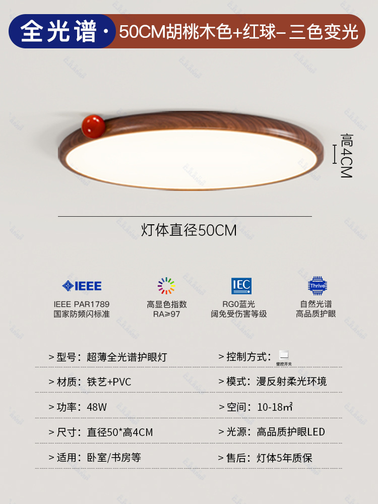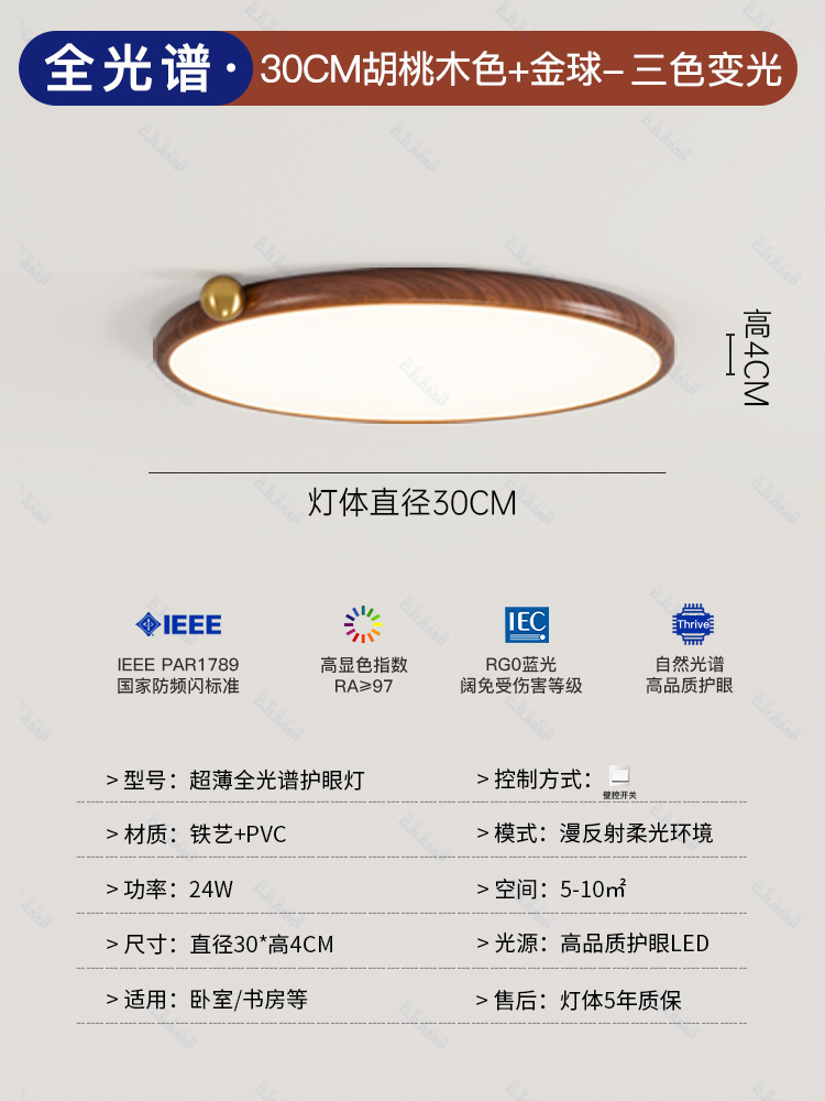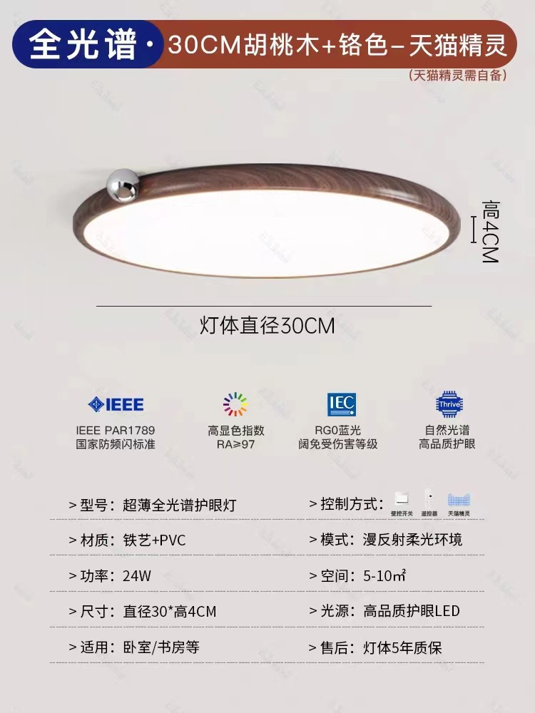 침실 램프 크림 바람 초박형 작은 우유 콩 눈 보호 천장 램프 전체 스펙트럼 간단한 침묵 스타일 마스터 침실 램프스토어 가기